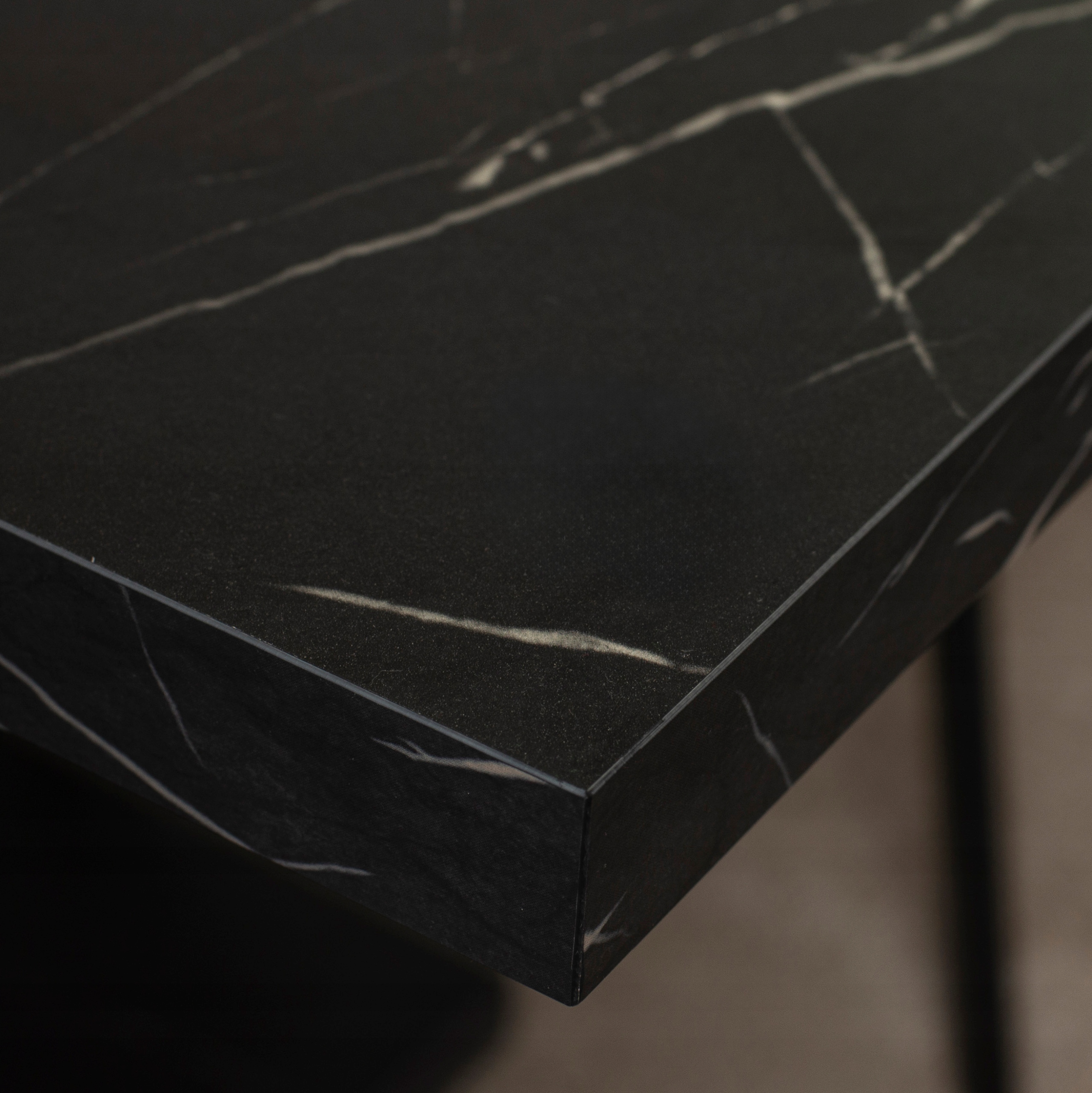 Elegancki i trwały. Blat wykonany jest z wysokiej jakości płyty wiórowej w kolorze czarnym z estetycznym wzorem do złudzenia imitującym marmur.