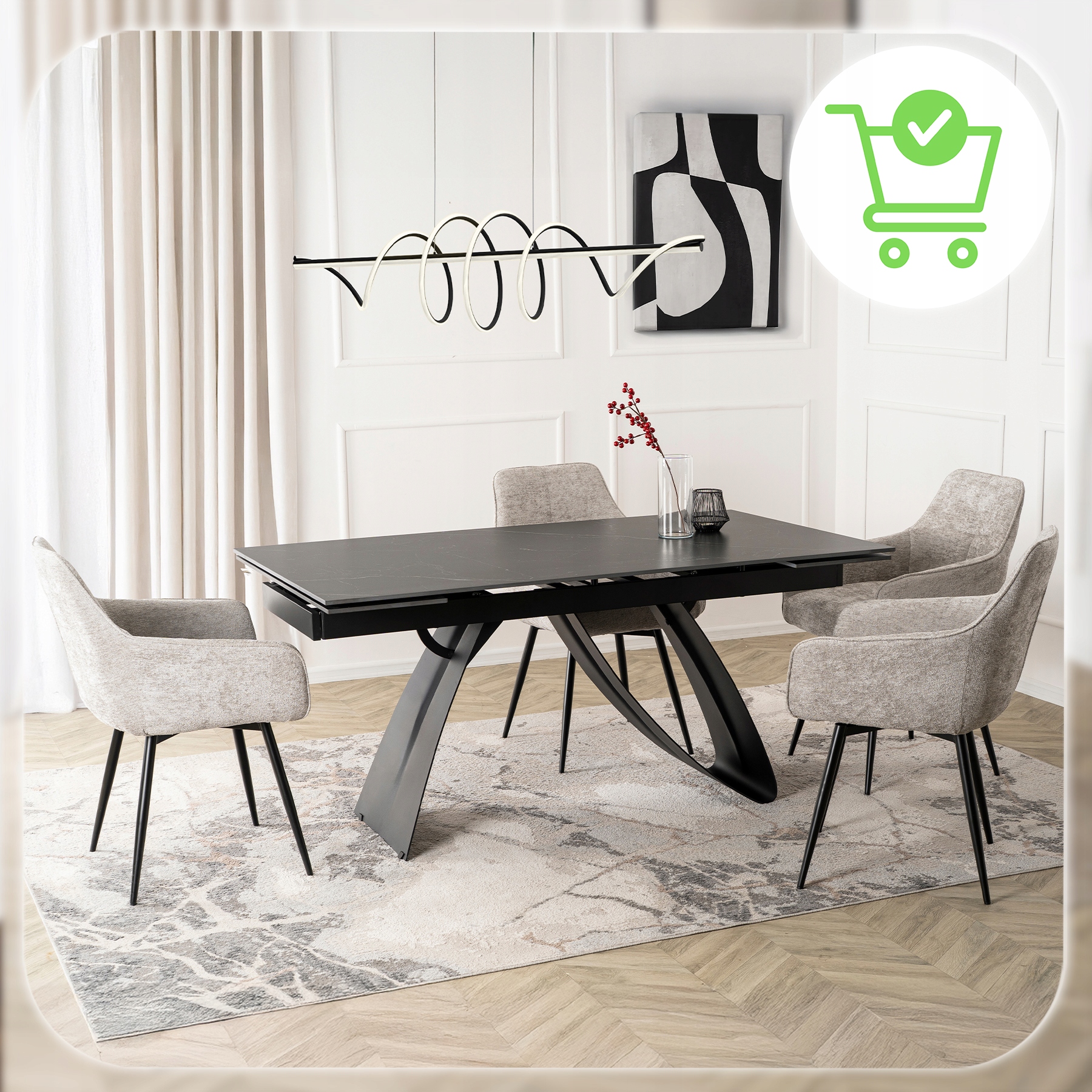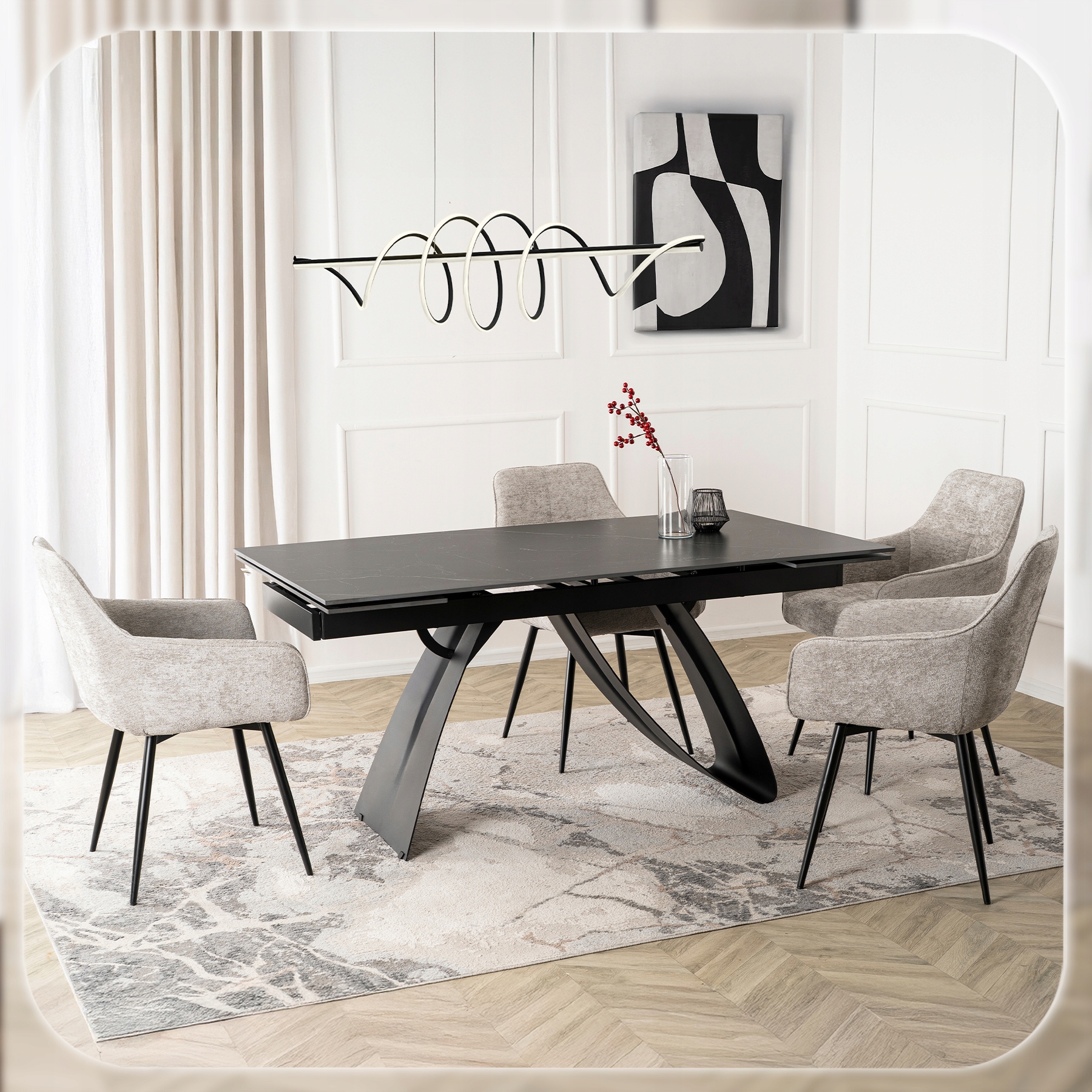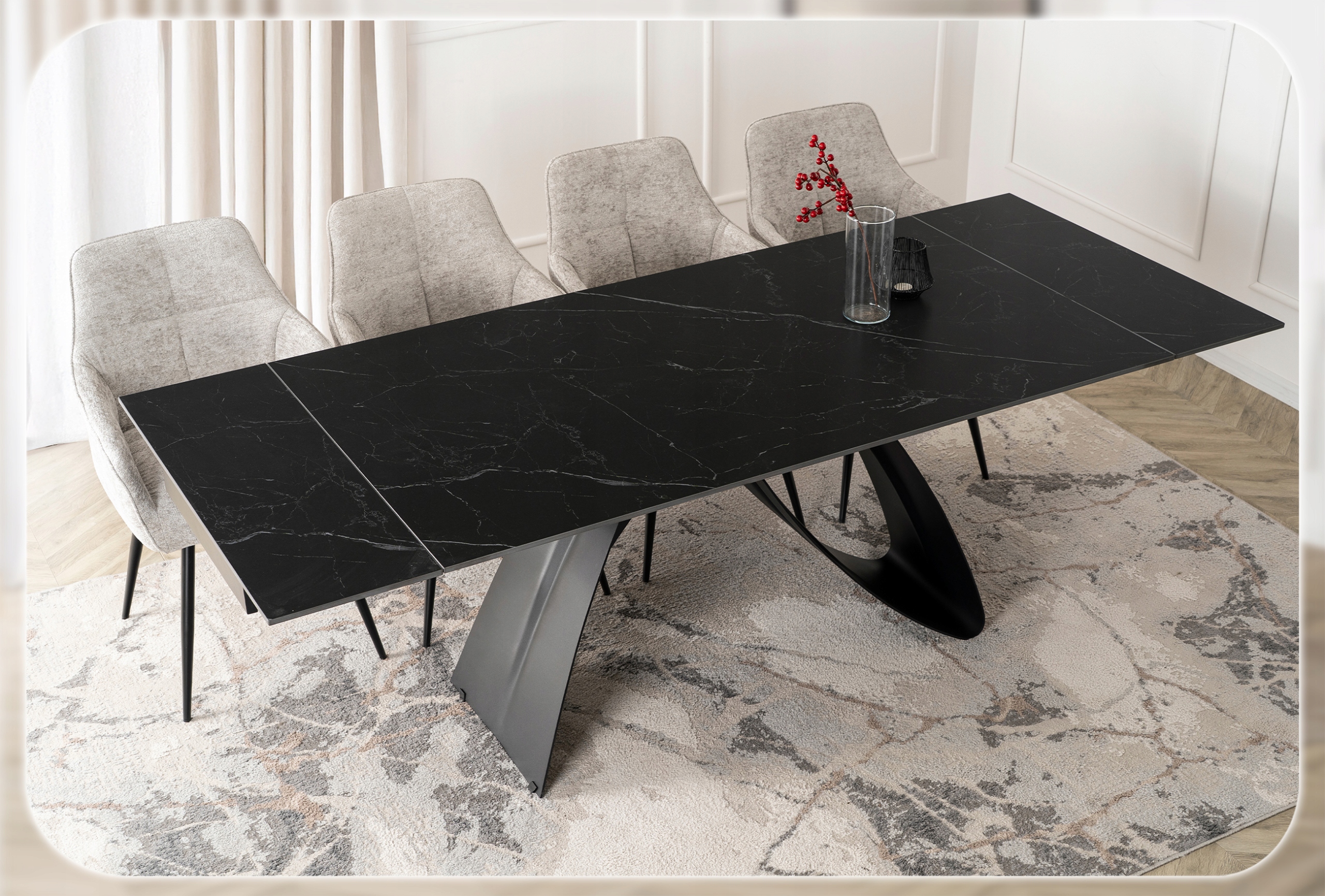 Ten stół to kwintesencja luksusu zaklęta w ceramice klasy premium, połączenie wyrafinowanego stylu i perfekcyjnego wykonania, które przyciąga wzrok i wzbudza zachwyt.