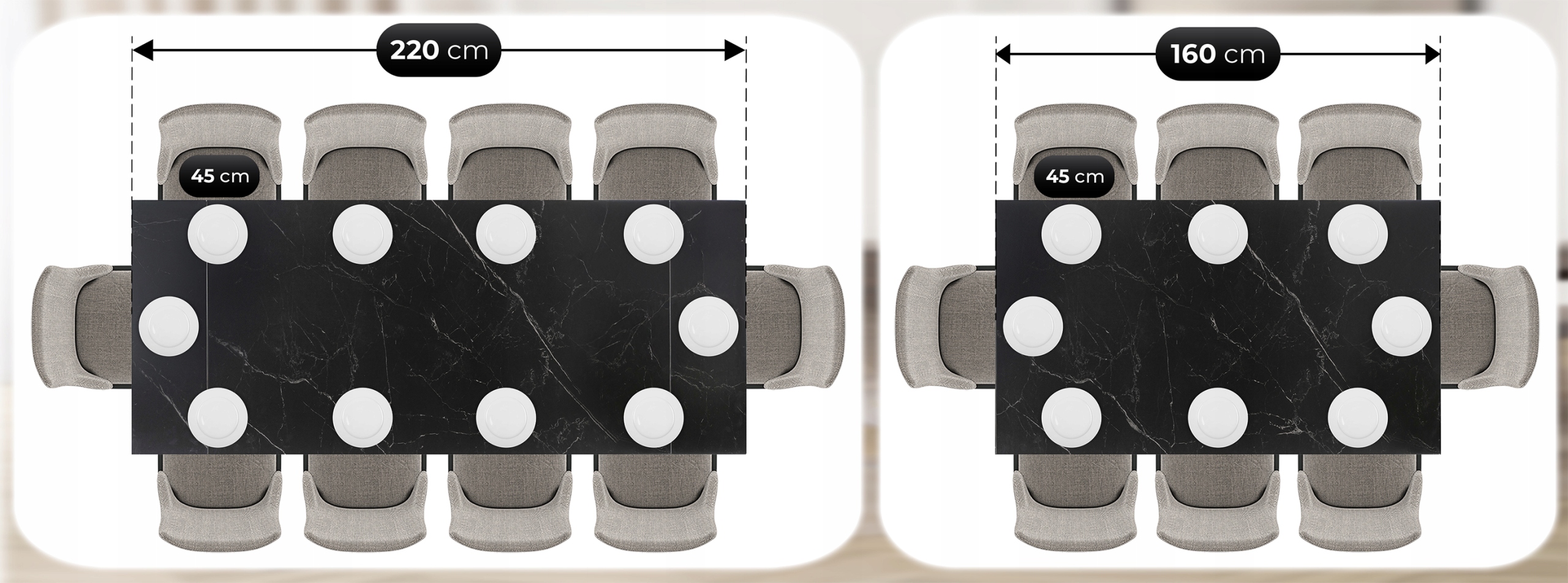 Po rozłożeniu do 220 cm stół pomieści nawet 10 osób, zapewniając każdemu wygodną przestrzeń. To idealne rozwiązanie na święta, przyjęcia i większe spotkania rodzinne.