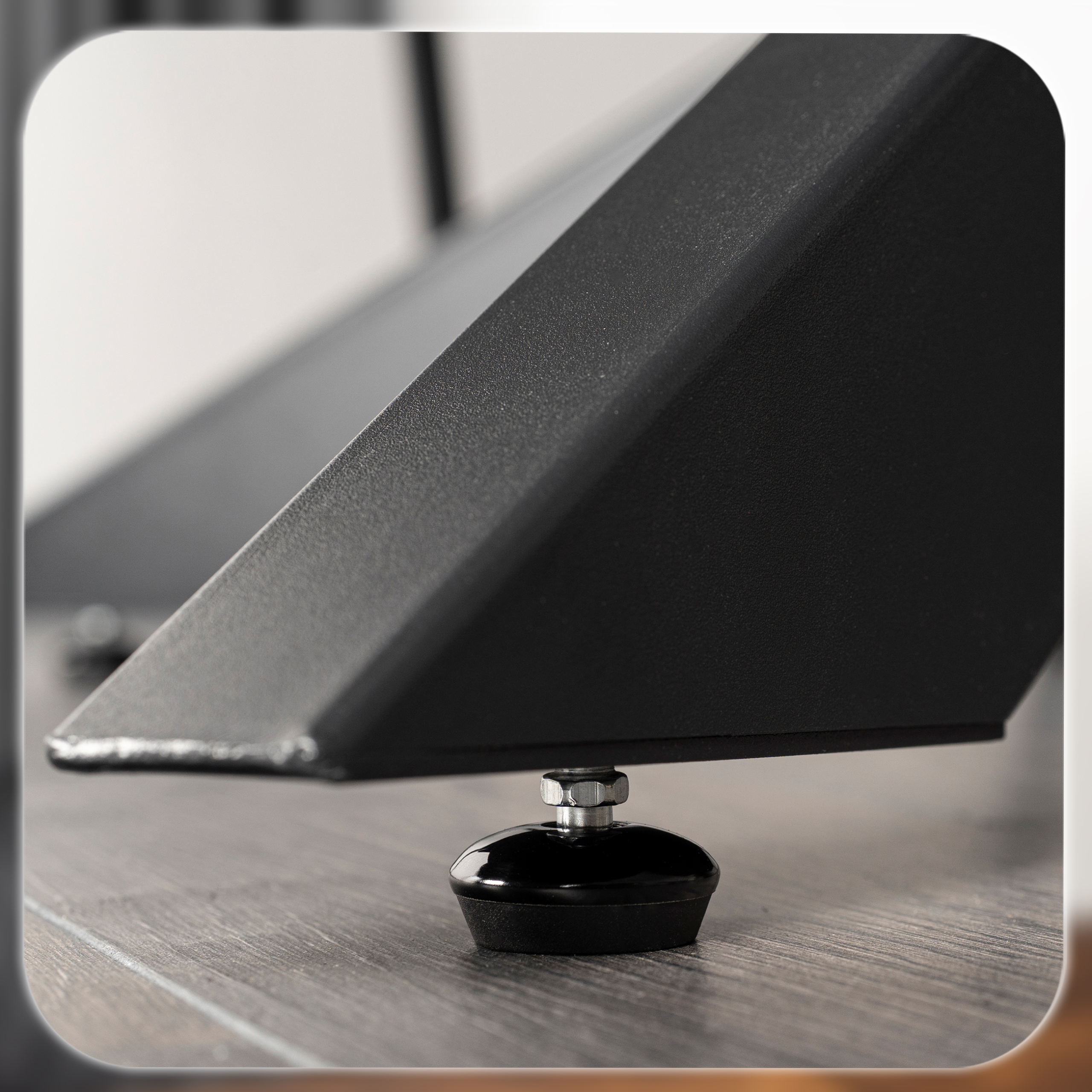 Regulowane stopki umieszczone na spodach metalowych nóg umożliwiają precyzyjne wypoziomowanie mebla nawet na nierównej powierzchni.