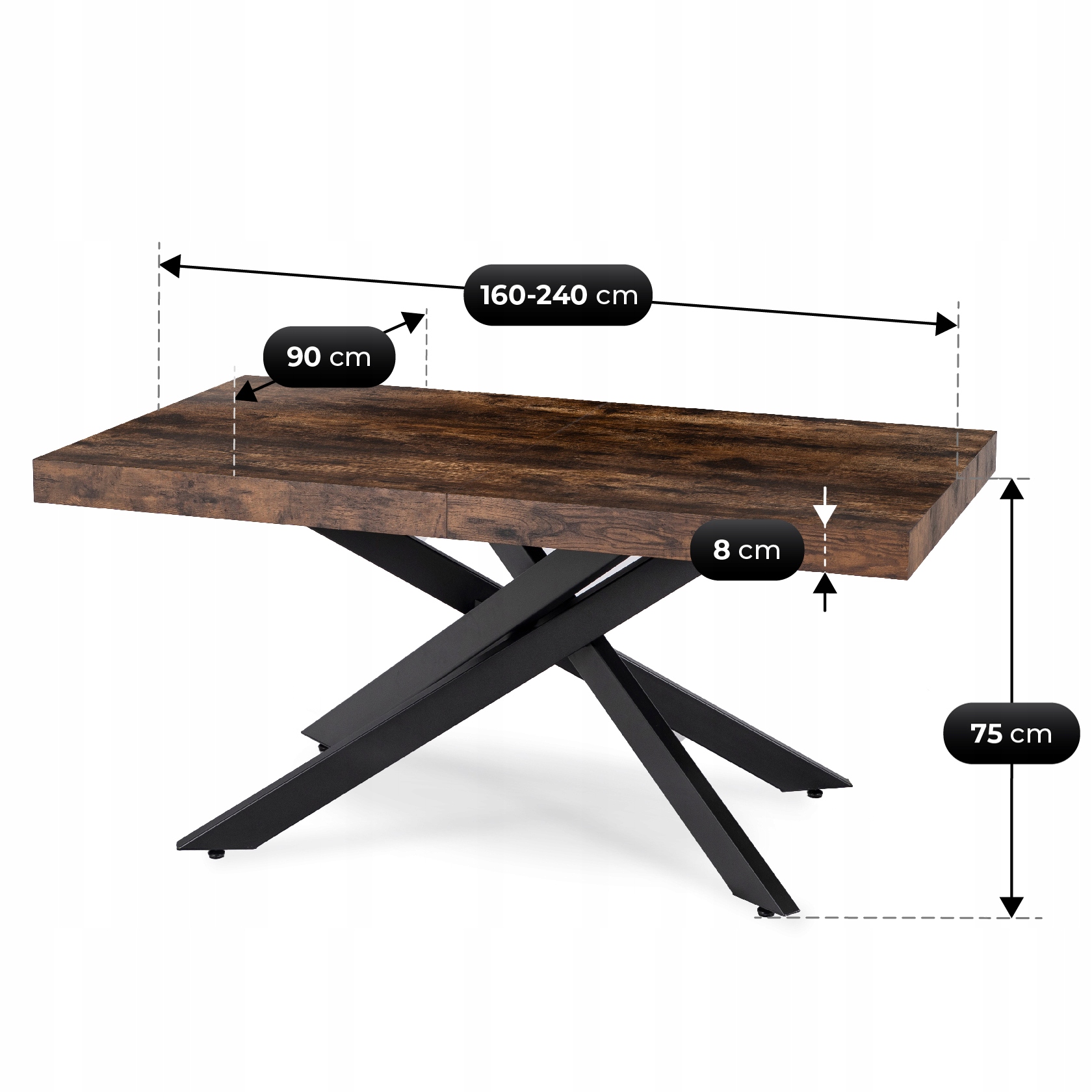 - Długość blatu: 160-240 cm