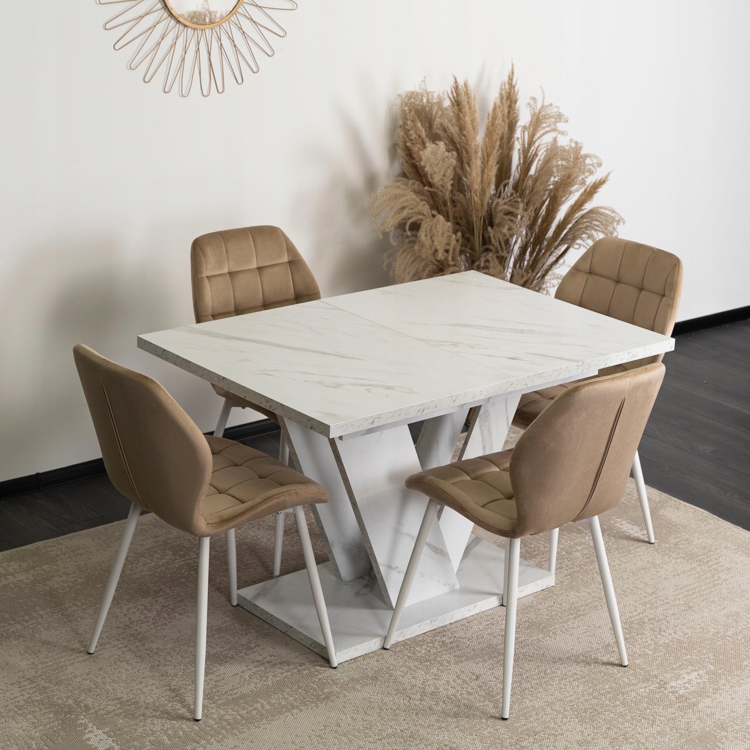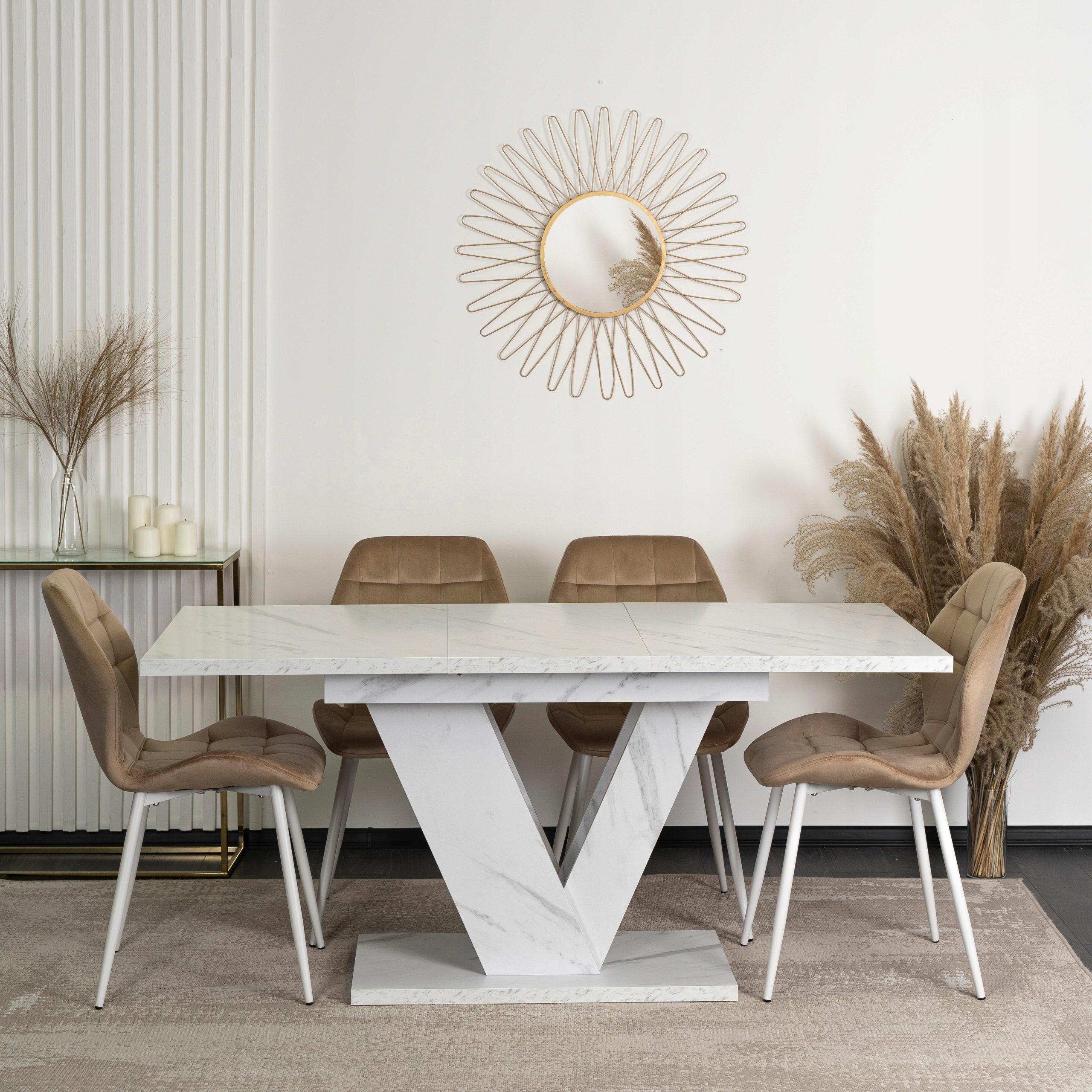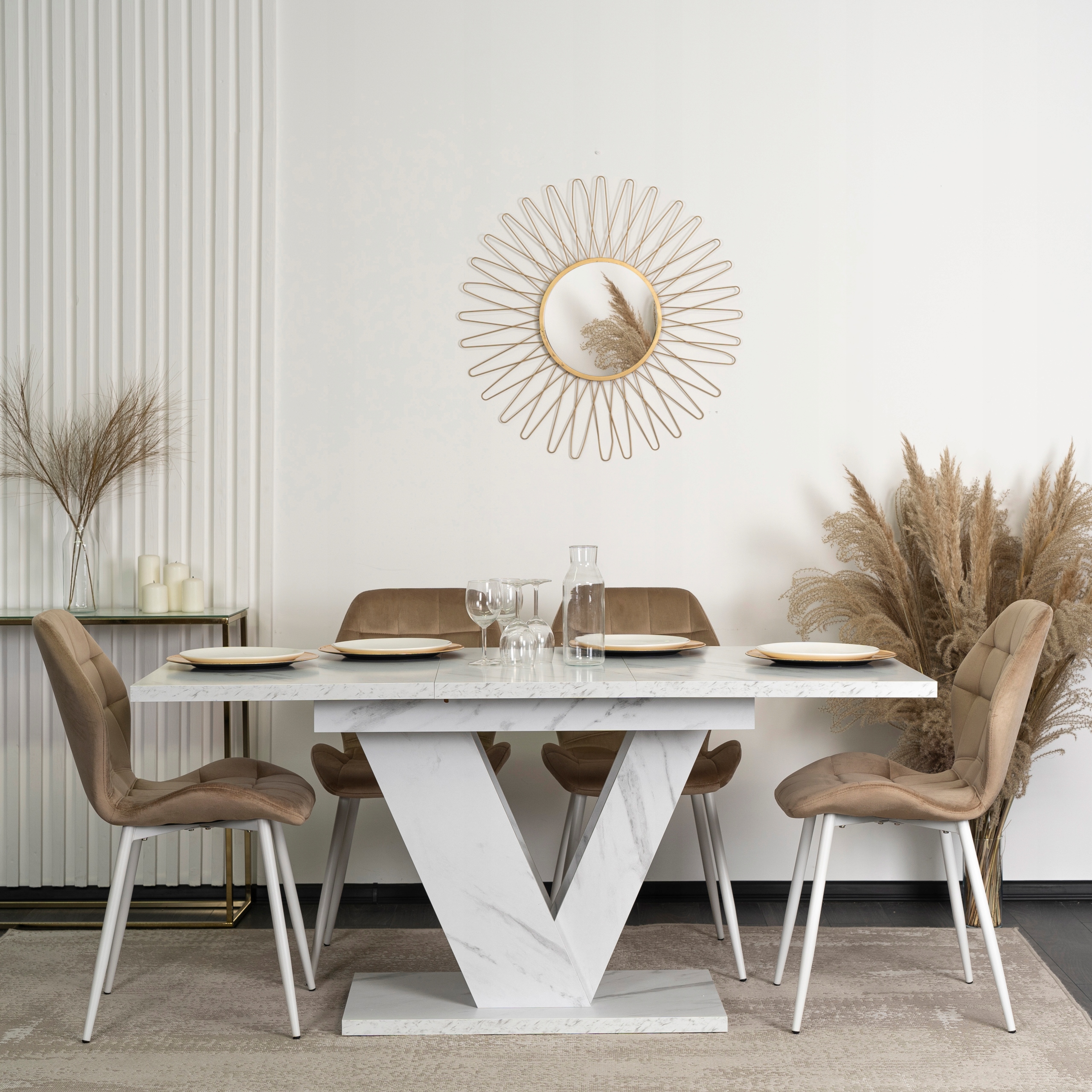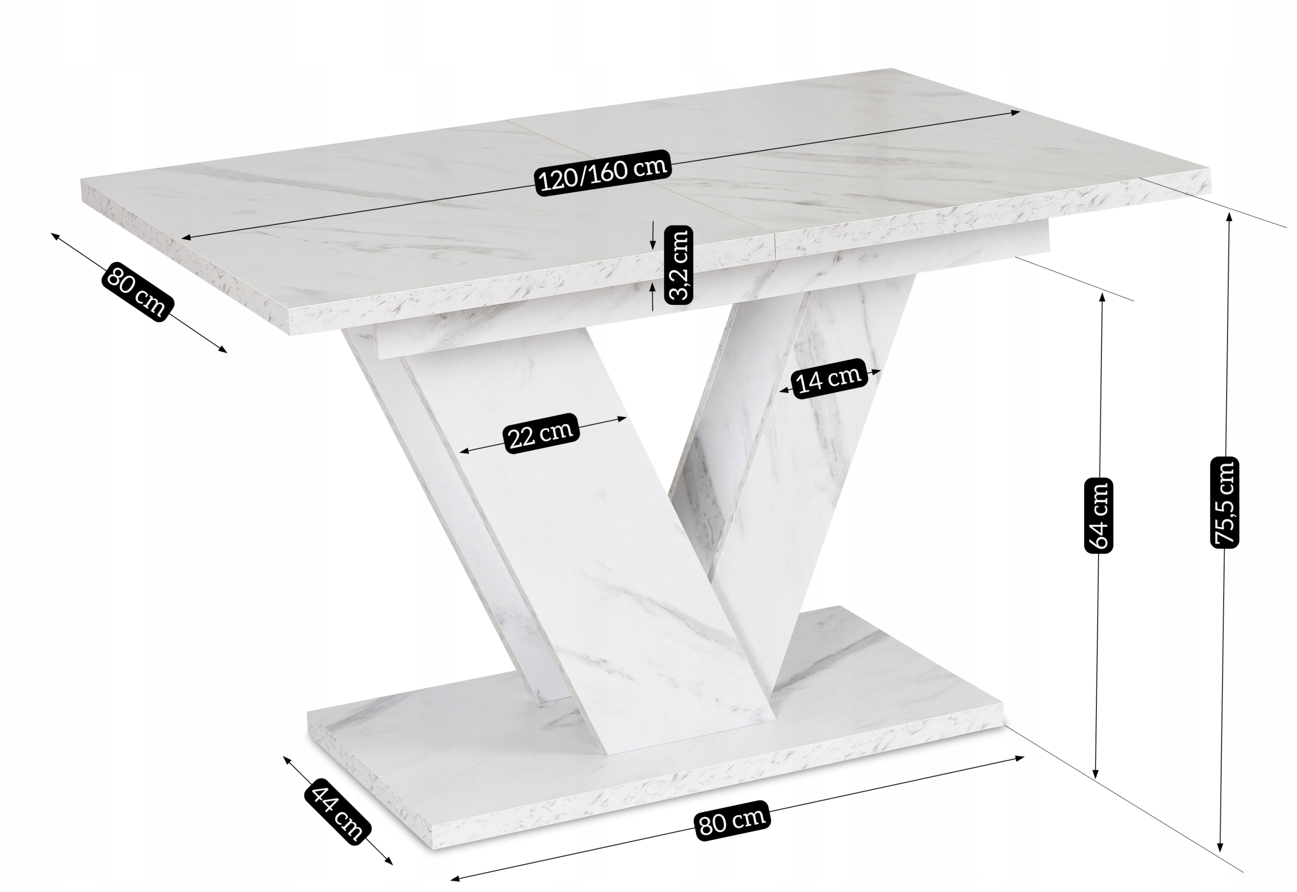 Stół Rozkładany Do Salonu Jadalni Nowoczesny Biały Marmur CLARK 120/160 ⭐⭐⭐⭐⭐