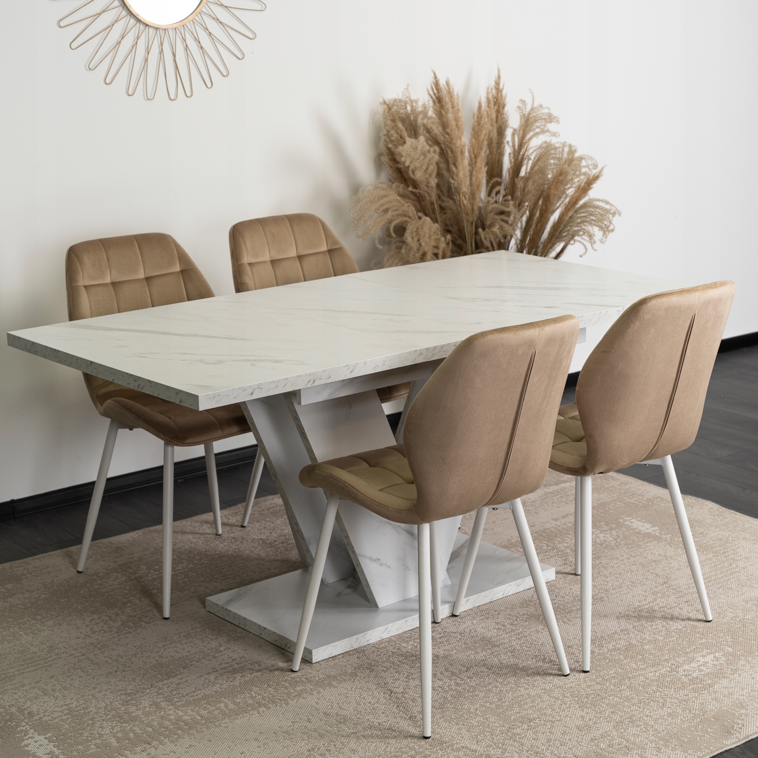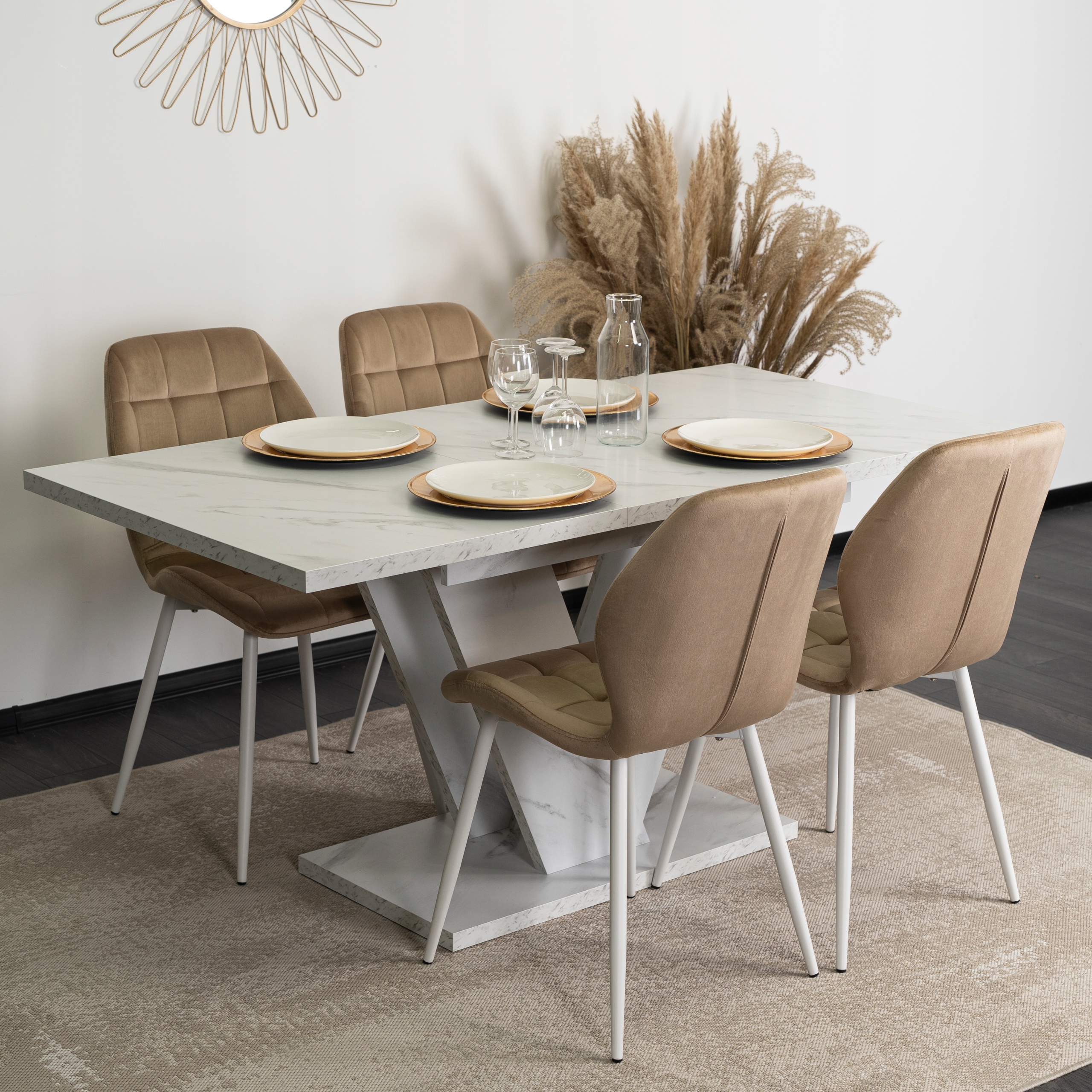 - Stół rozkładany prostokątny CLARK w kolorze białego marmuru