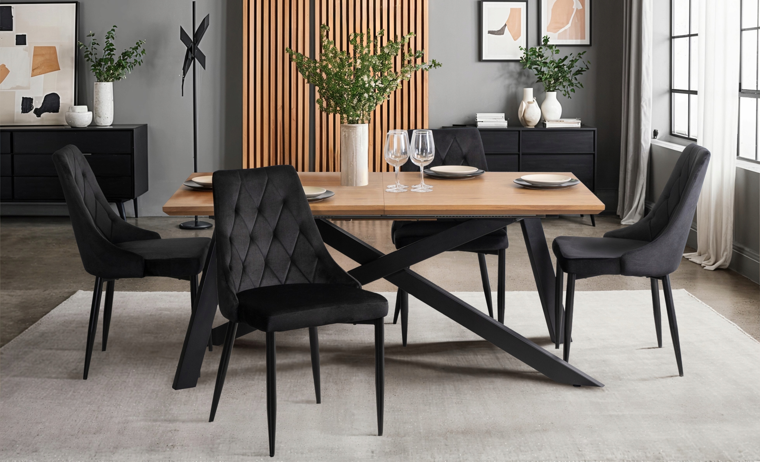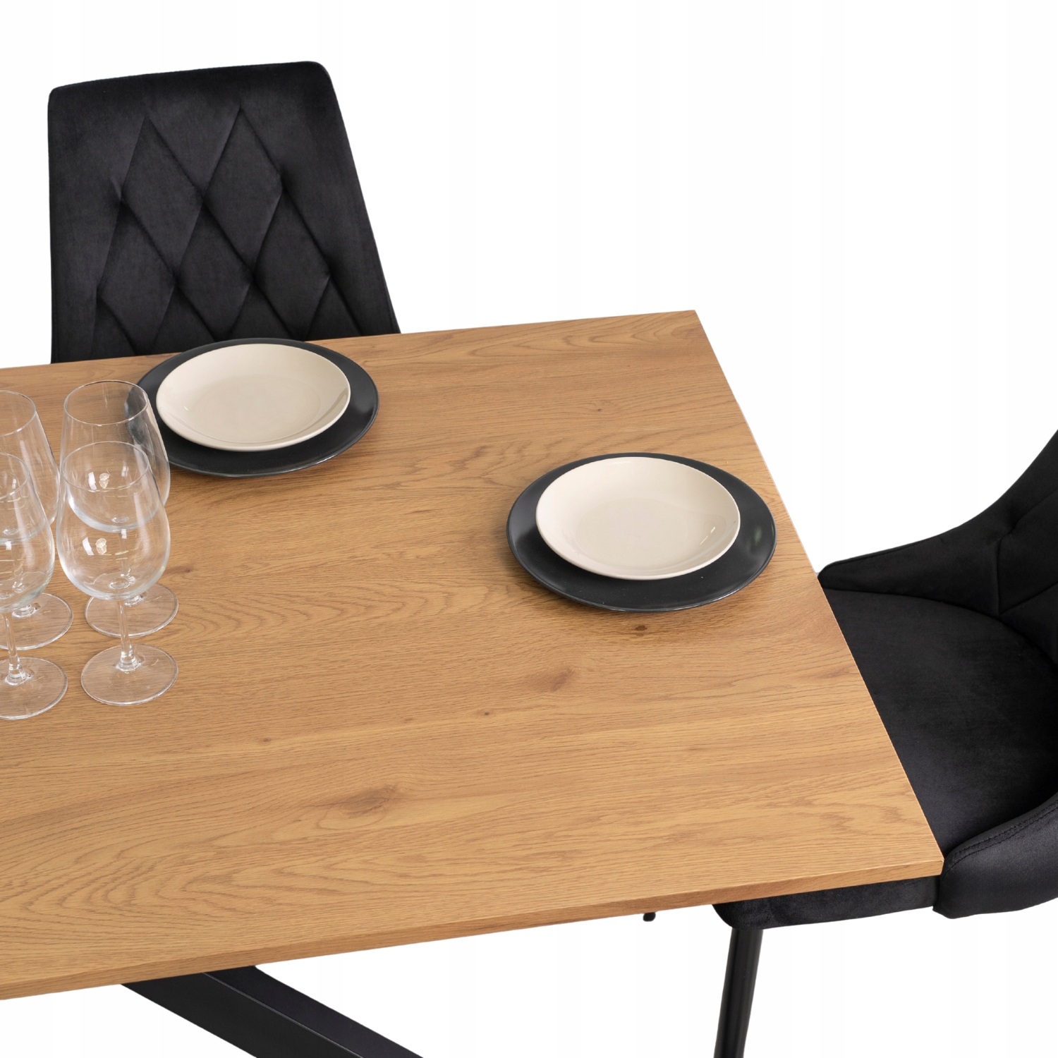 Ozdobą stołu są niewątpliwie bardzo stylowo zaprojektowane nogi. Wykonane są z malowanego proszkowo metalu na kolor matowej czerni. Sprawiają, że stół wygląda niebanalnie i świetnie łączą się kolorystycznie z blatem.