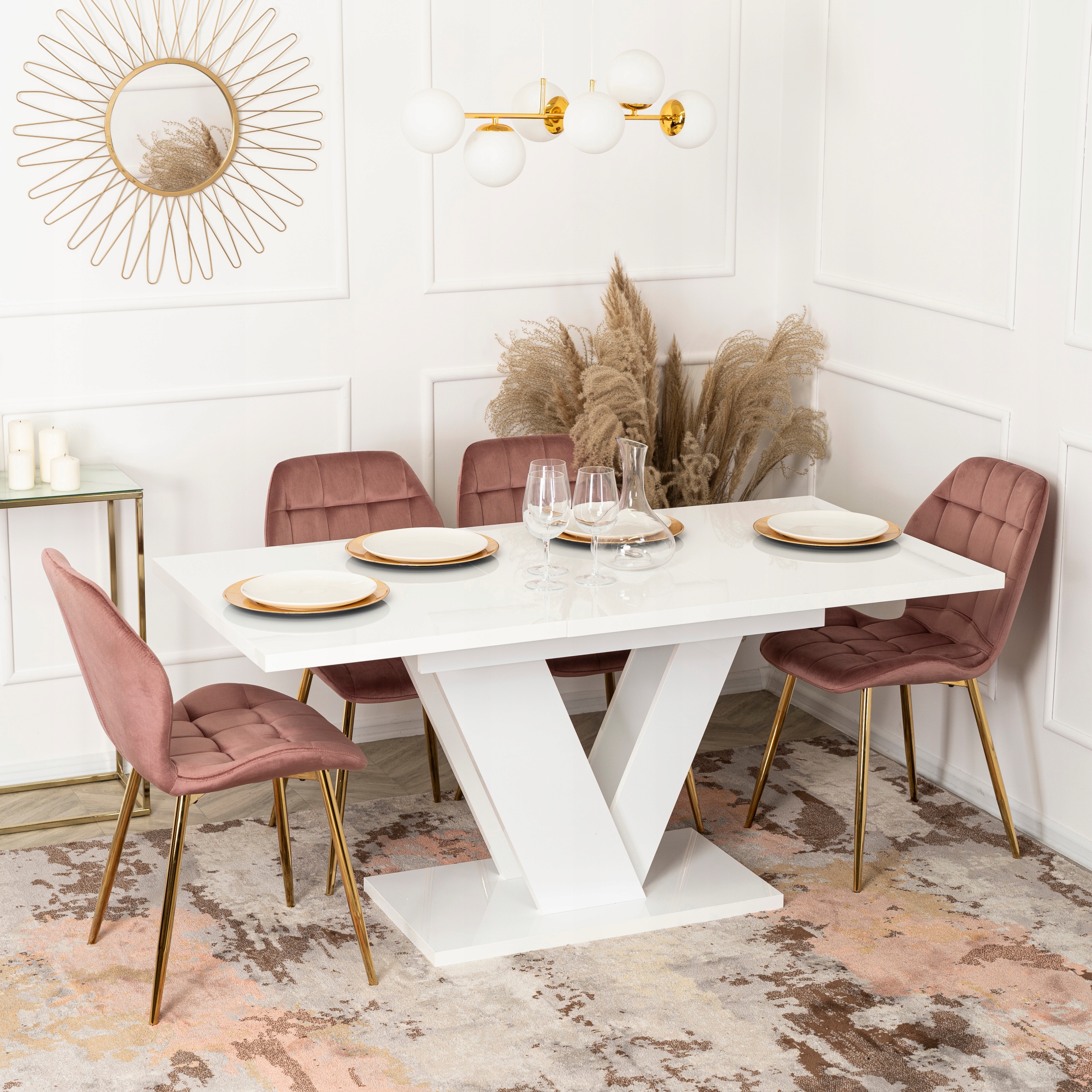 - Stół rozkładany prostokątny CLARK w kolorze biały połysk
