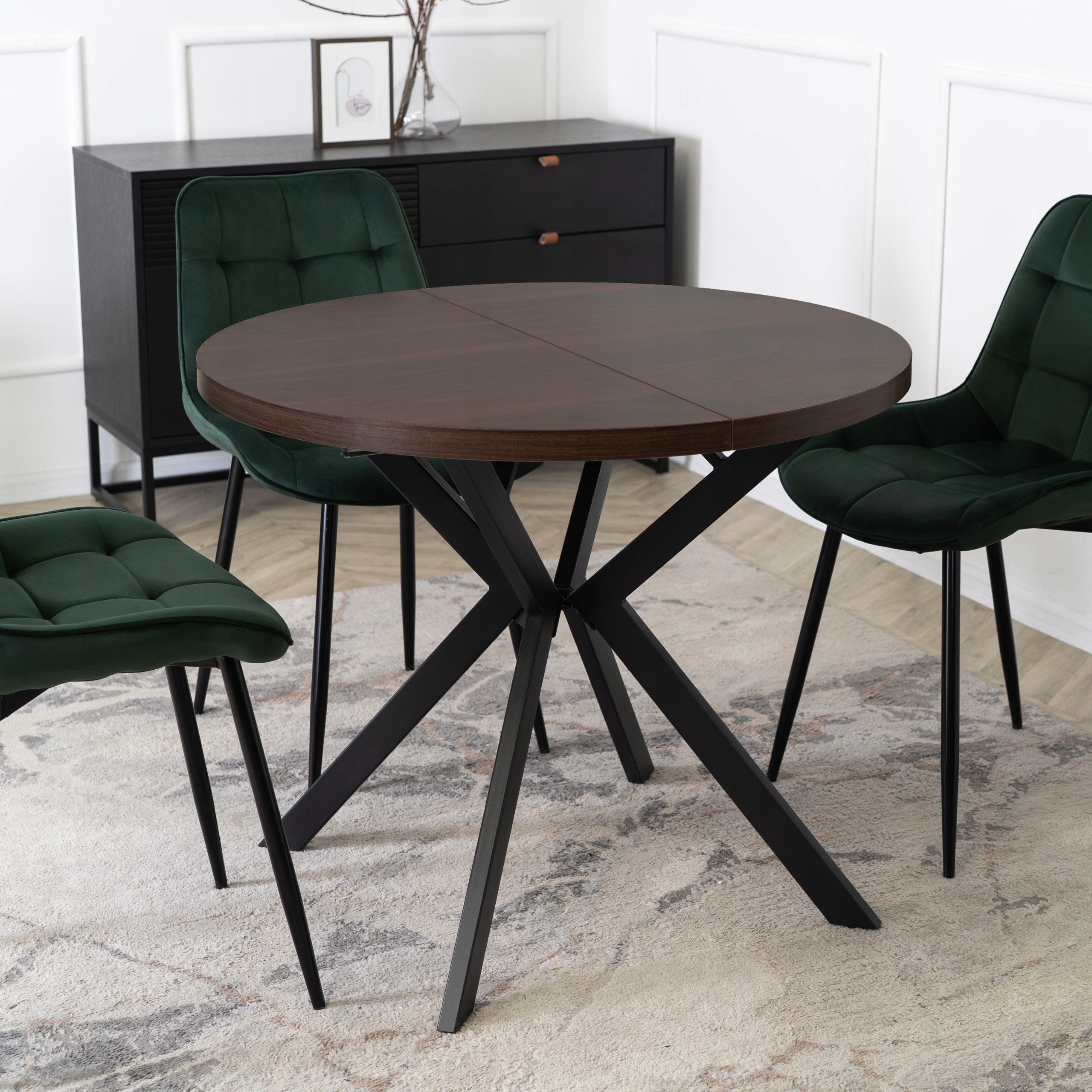 Stół Rozkładany Okrągły 90 Do Jadalni Salonu Loft Orzech Czarny LUGO ⭐⭐⭐⭐⭐