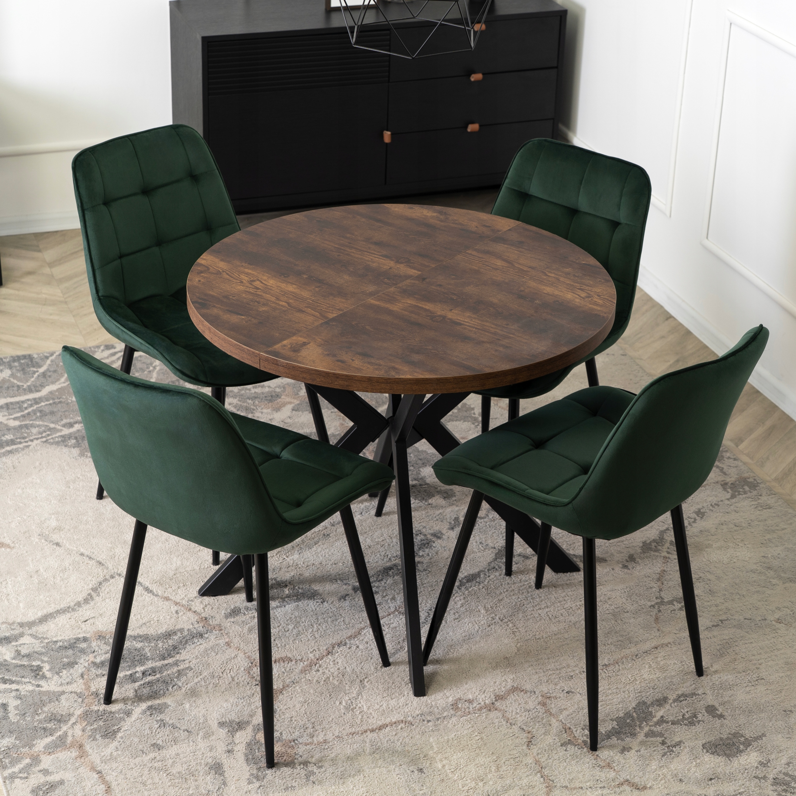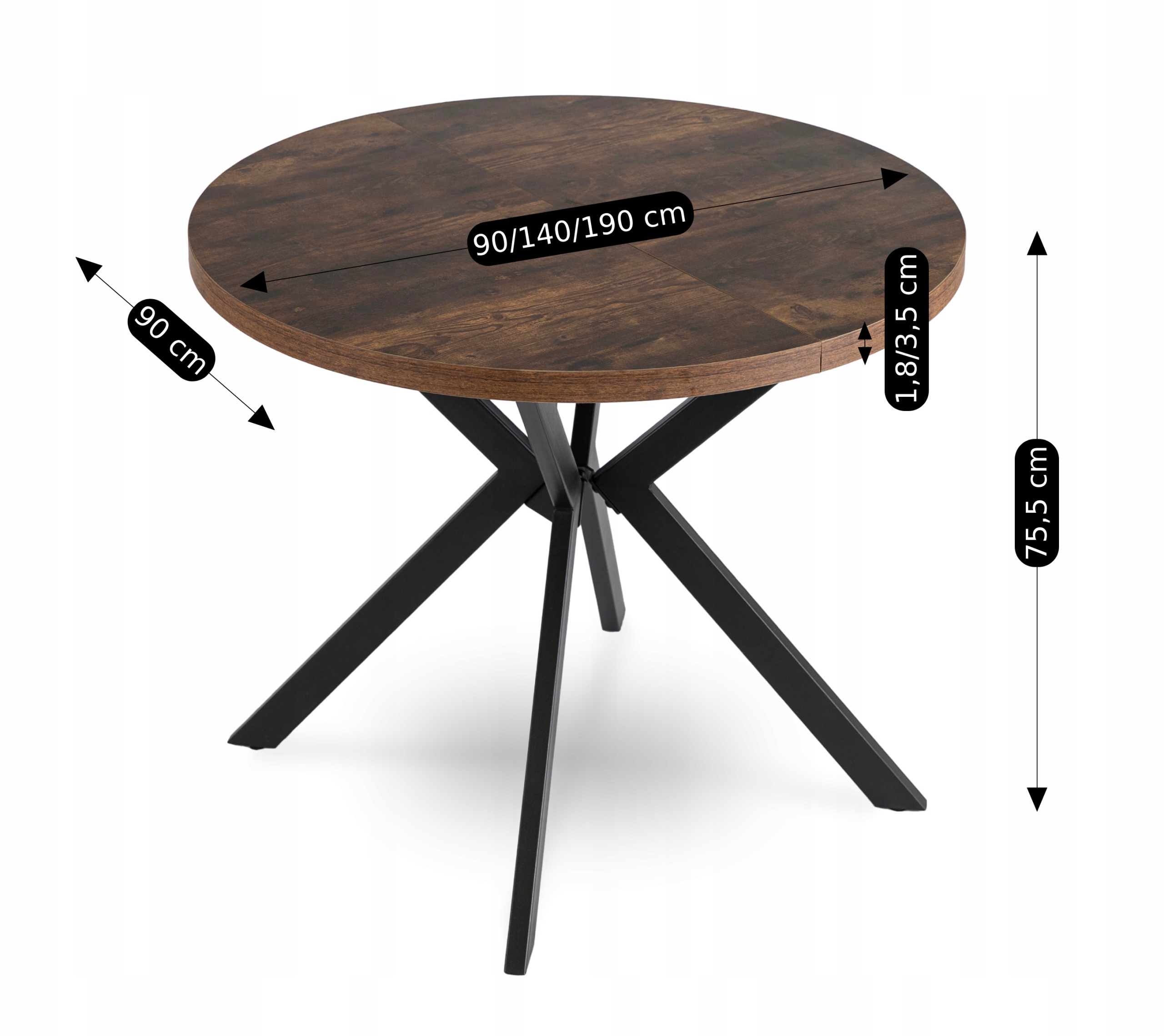 Stół Rozkładany Okrągły 90 Do Salonu Dąb Rustykalny Czarny Loft LUGO ⭐⭐⭐⭐⭐