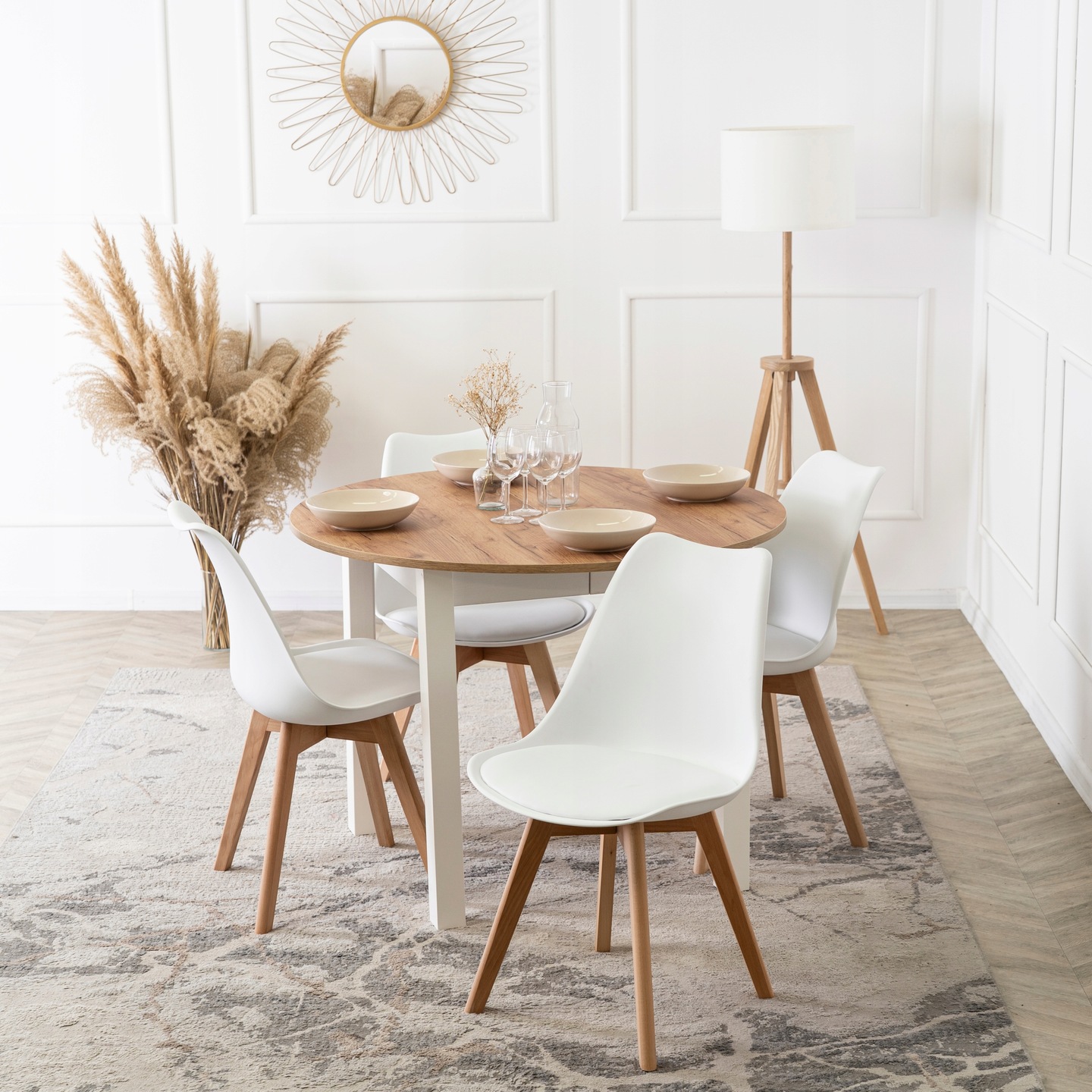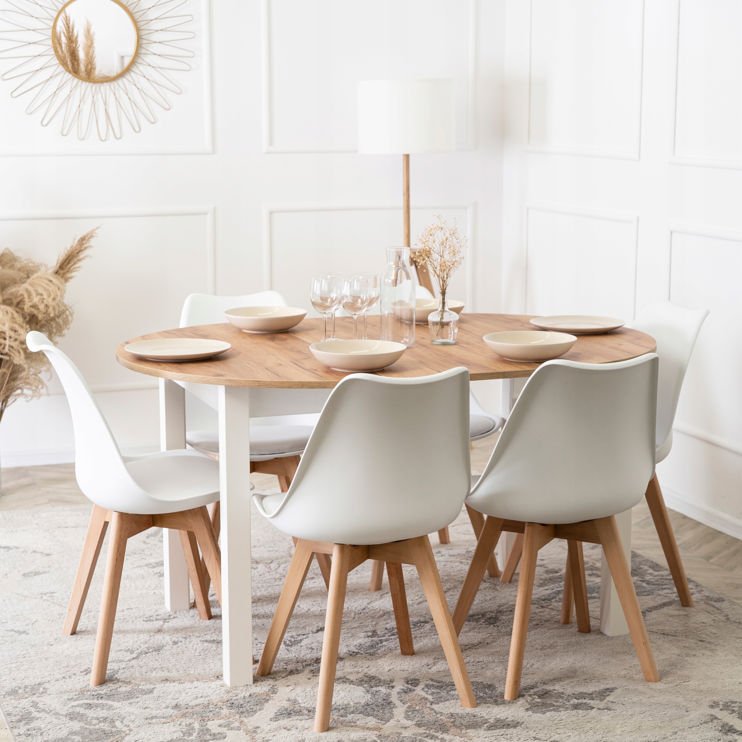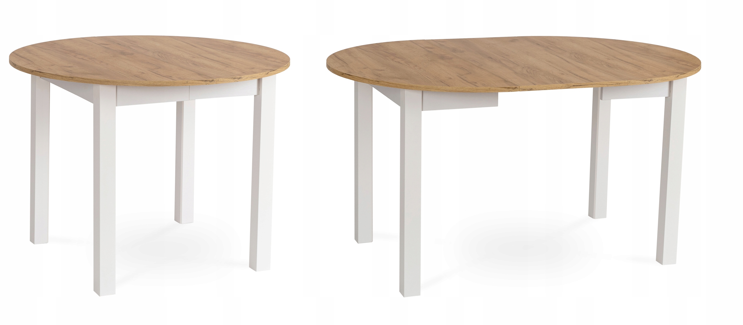 - Stół okrągły rozkładany HARRY w kolorze dąb craft z białymi nogami