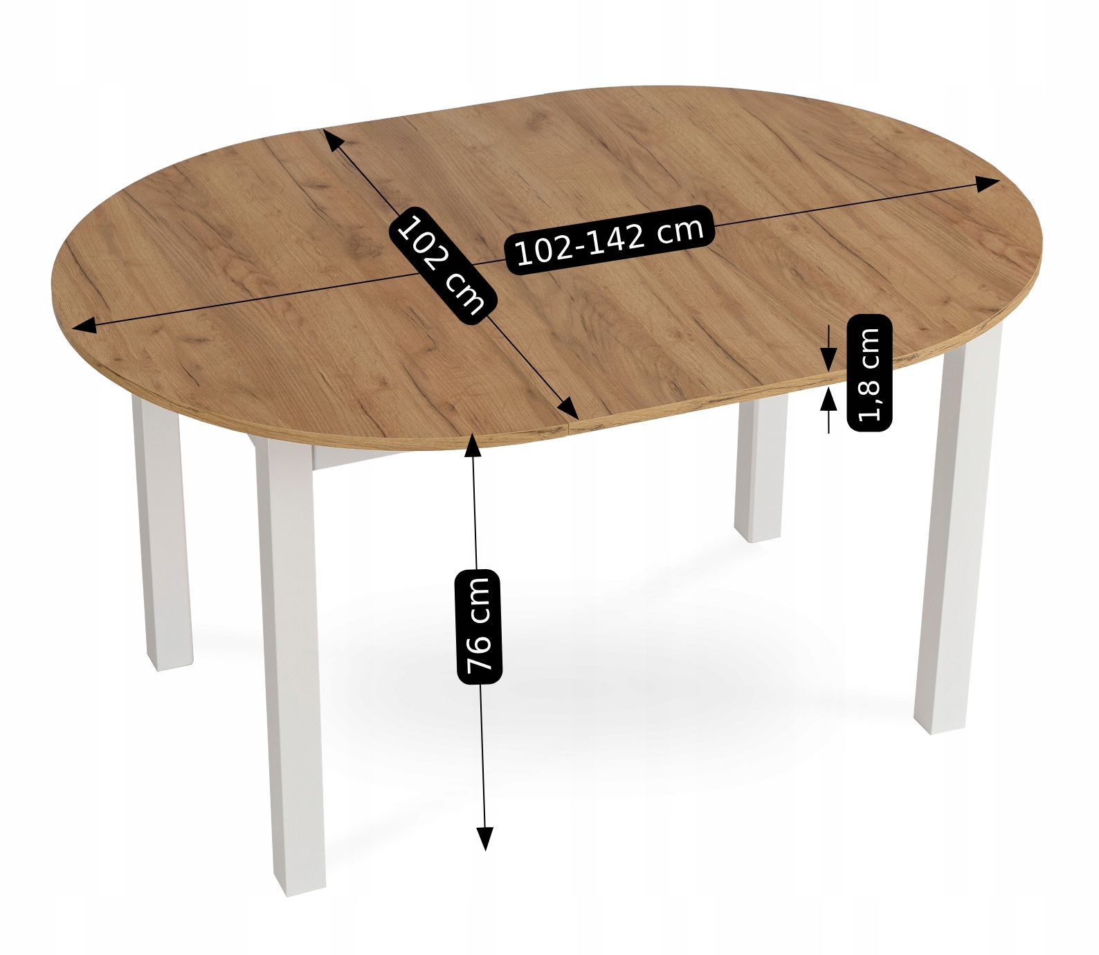 ⭐ Stół można łatwo powiększyć dzięki wkładce (102-142 cm)