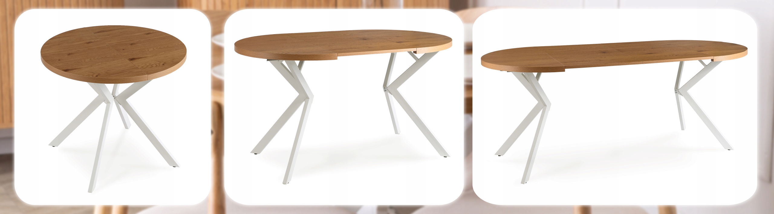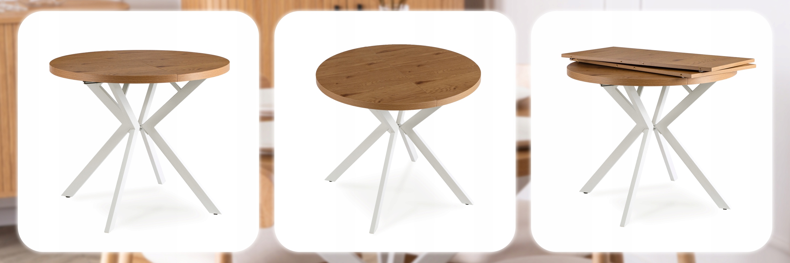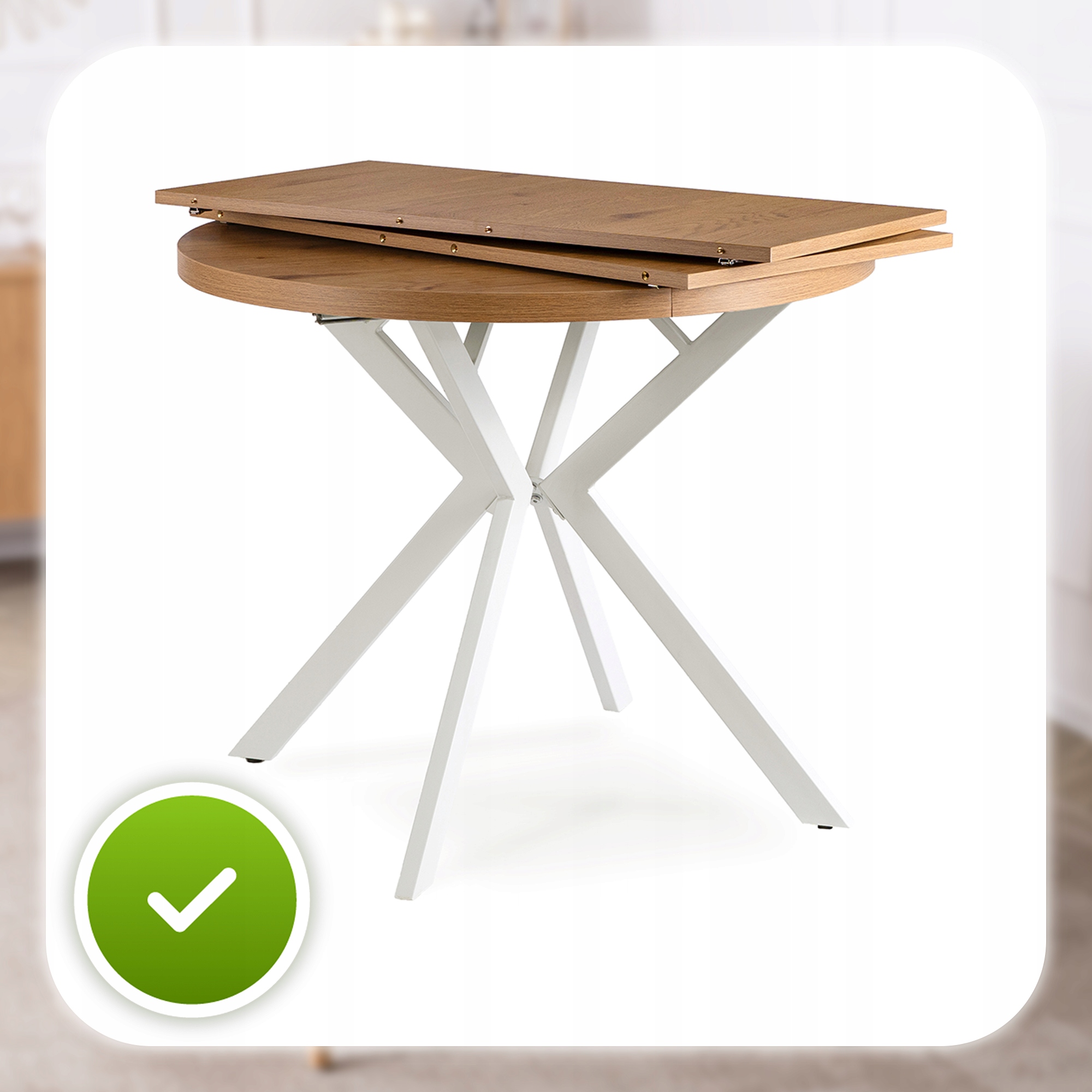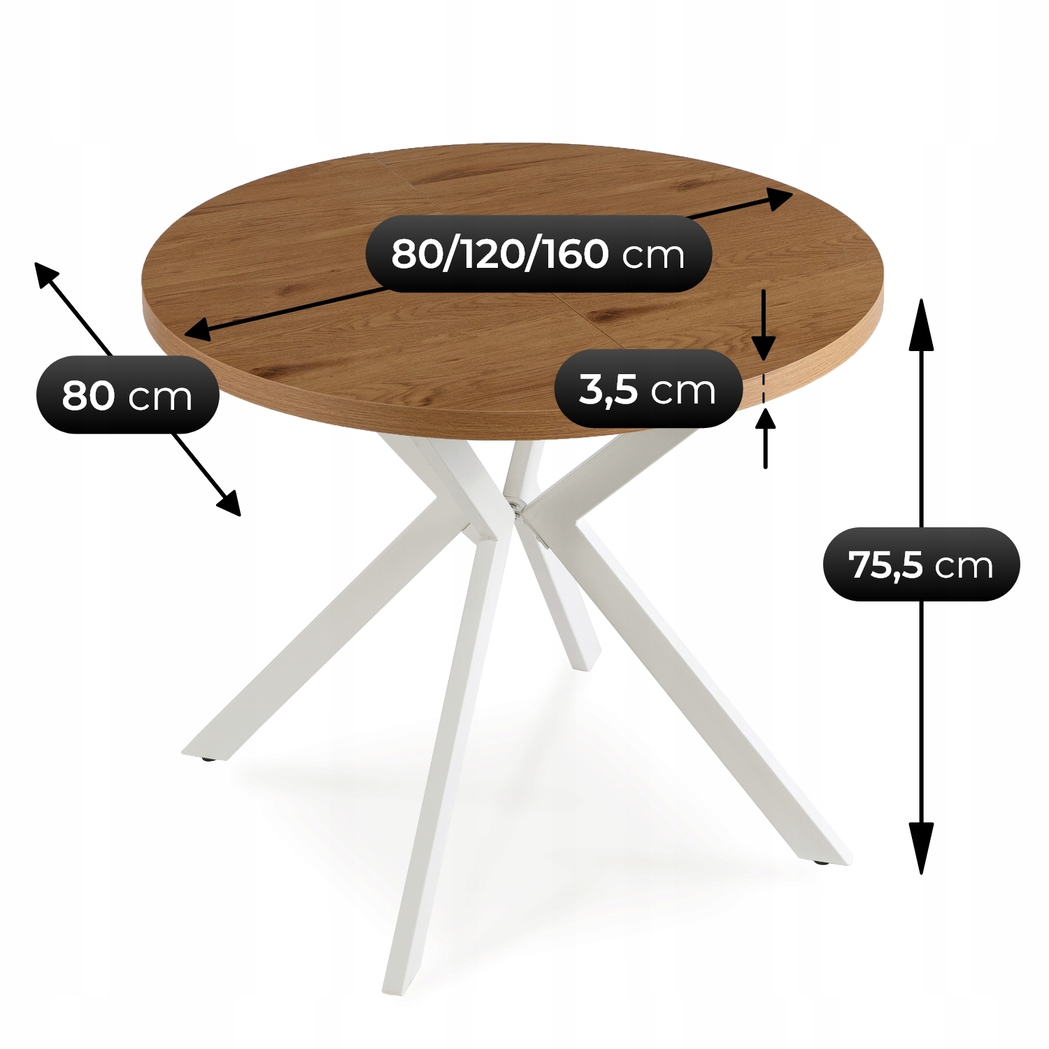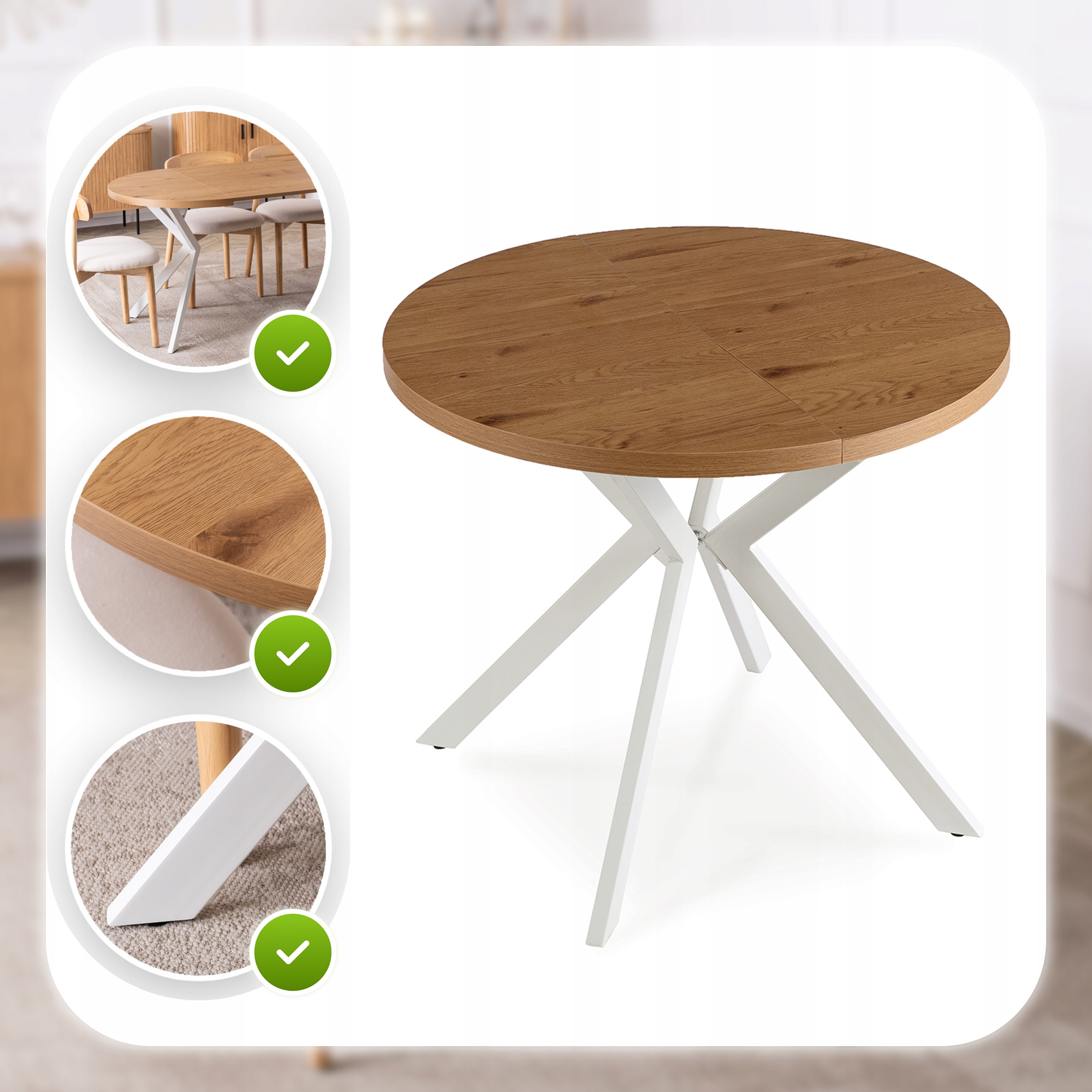 ✨ Stół Rozkładany Okrągły Kuchenny Do Jadalni Kuchni Salonu Dąb Biały DORIAN