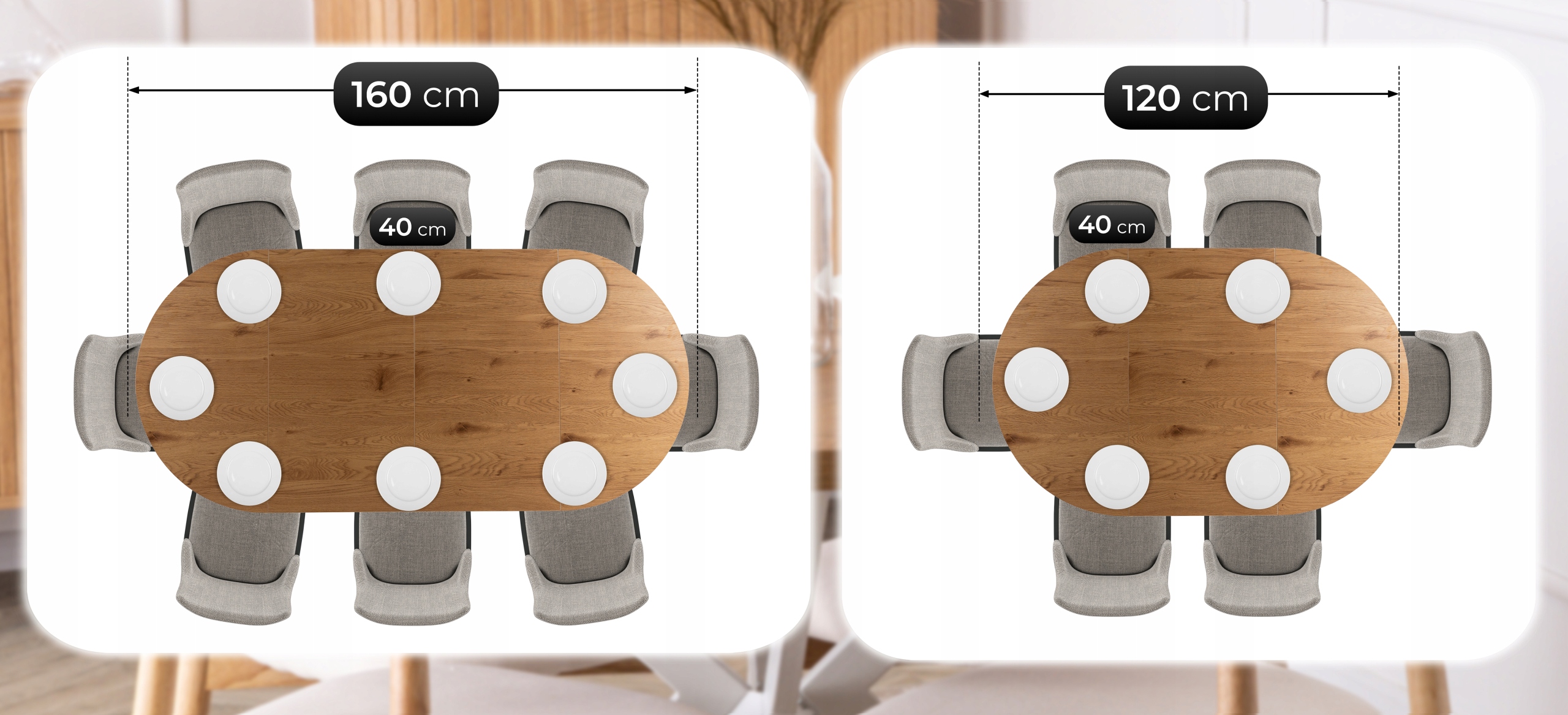 - Po dodaniu jednej wkładki zyskujesz 120 cm długości – idealne rozwiązanie na rodzinny obiad.