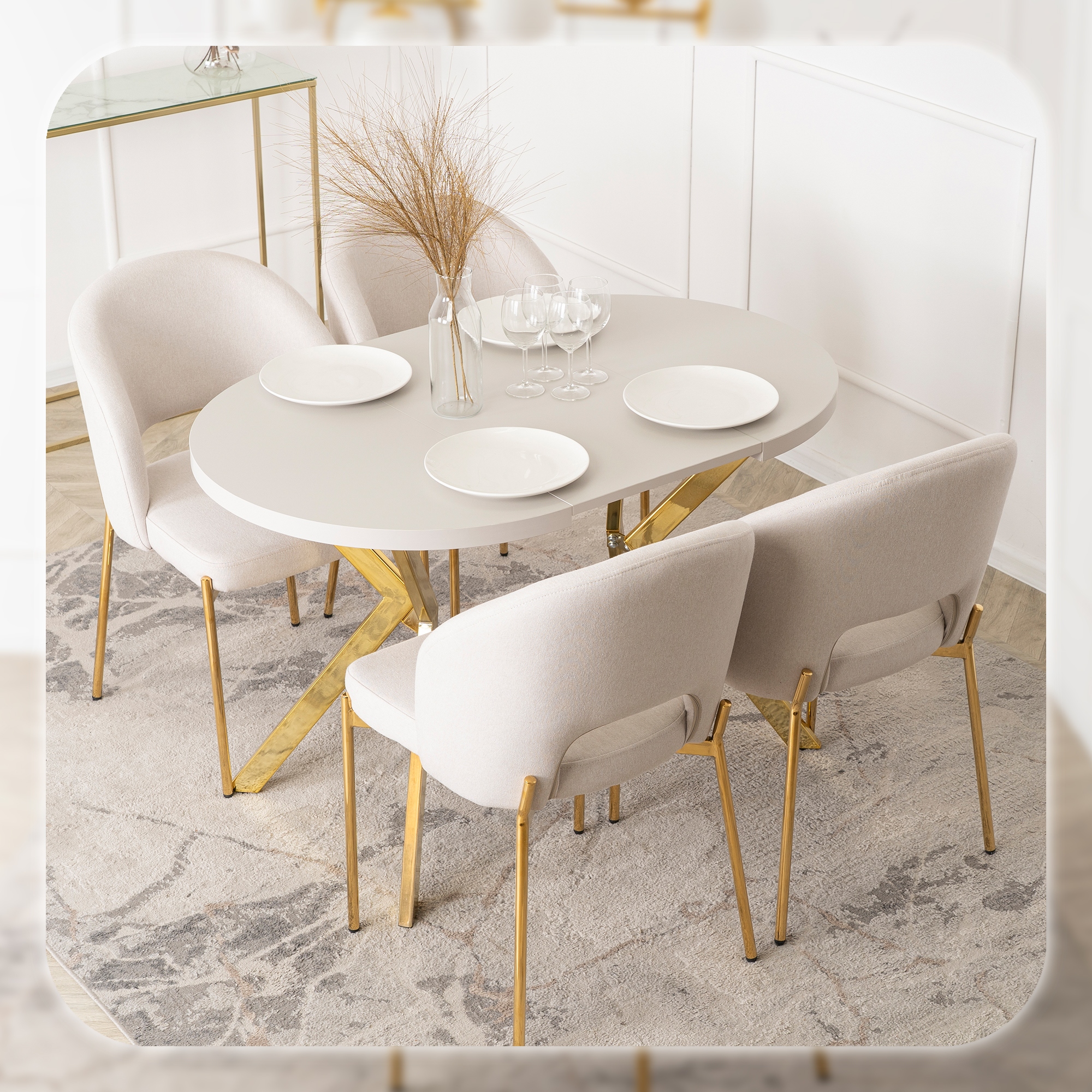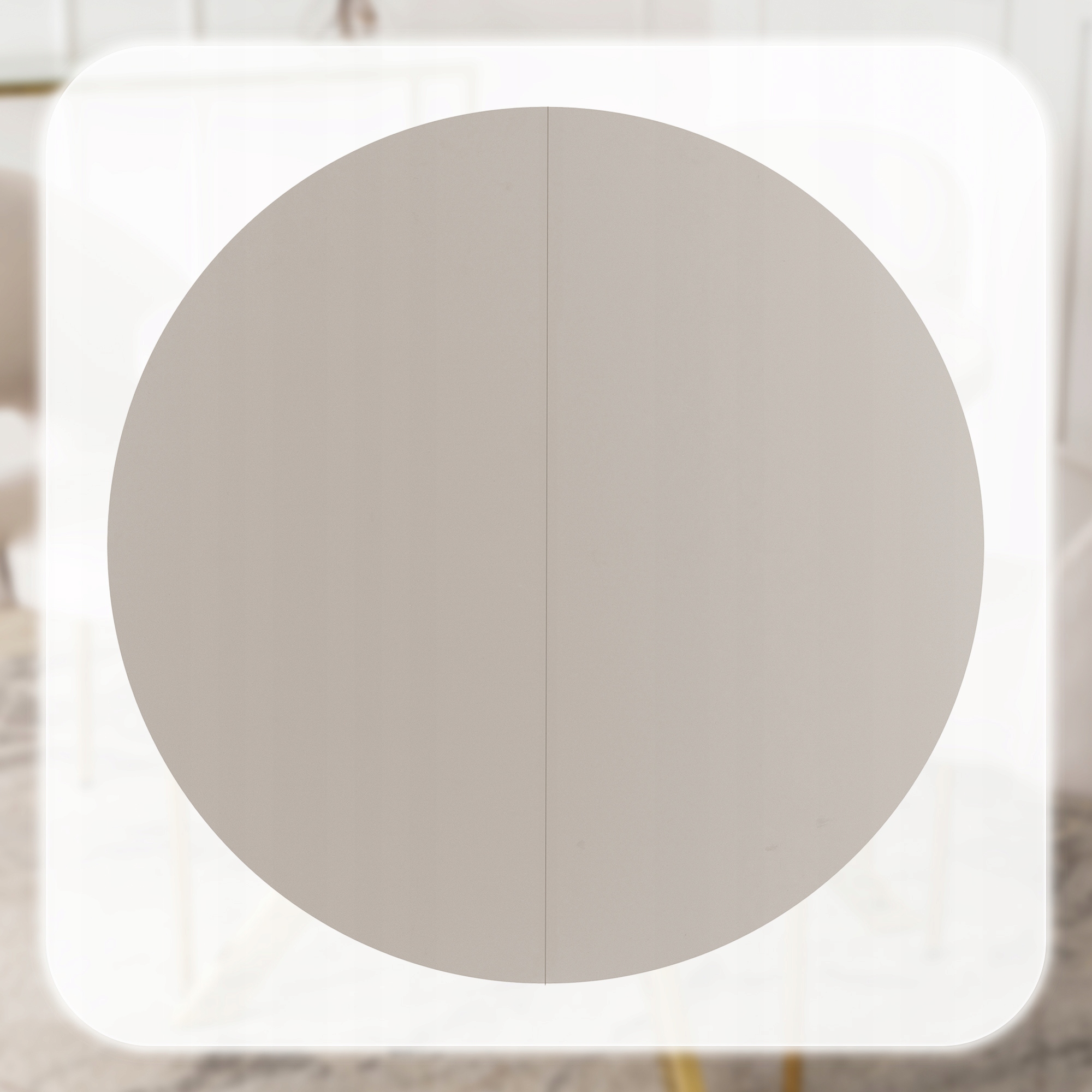 Jego rozsuwany, okrągły blat w kolorze kaszmiru prezentuje się niezwykle elegancko i nowocześnie.