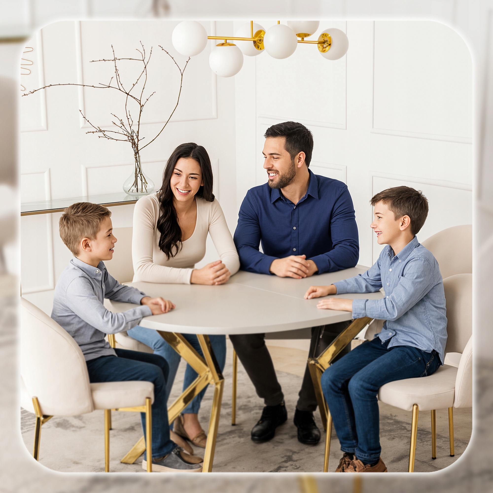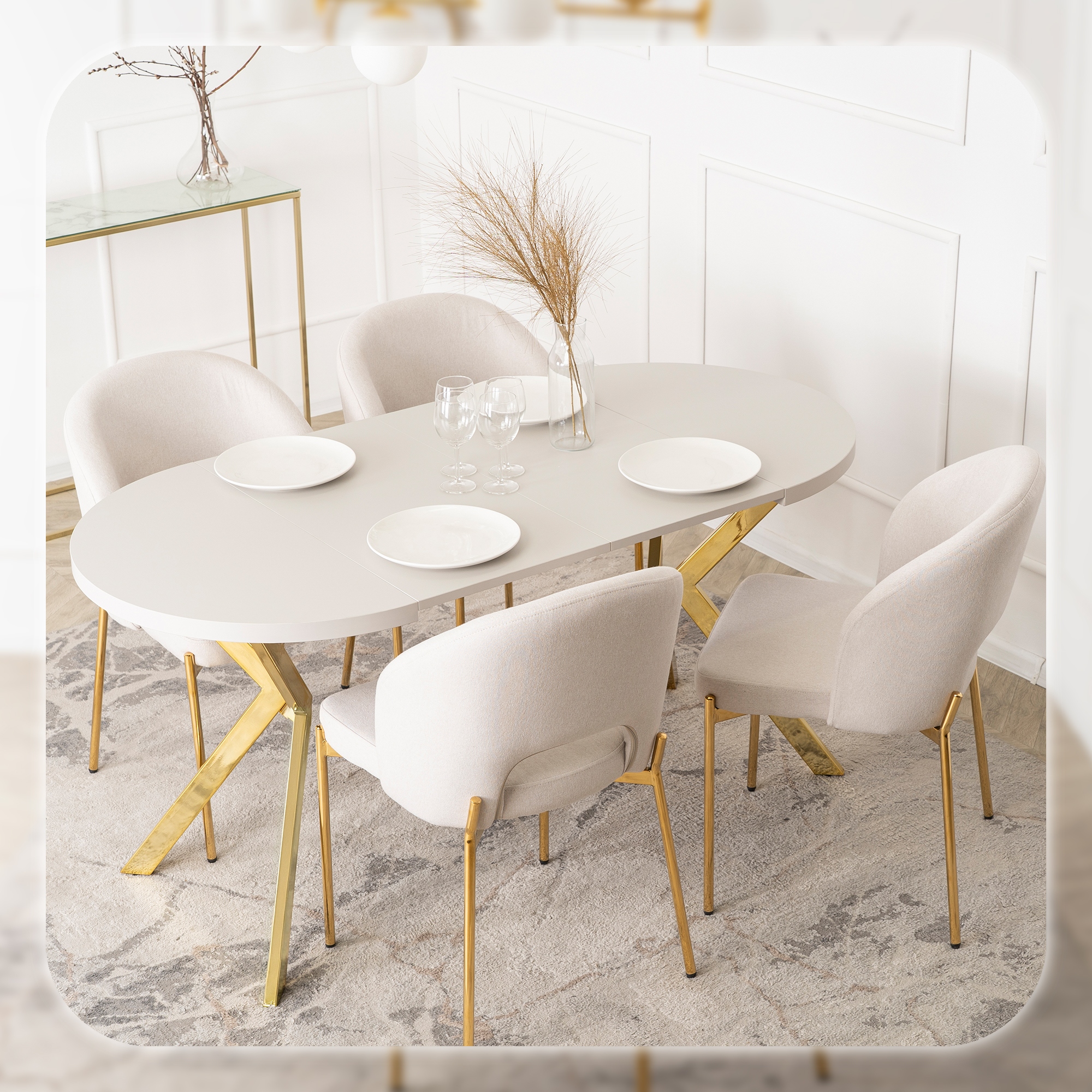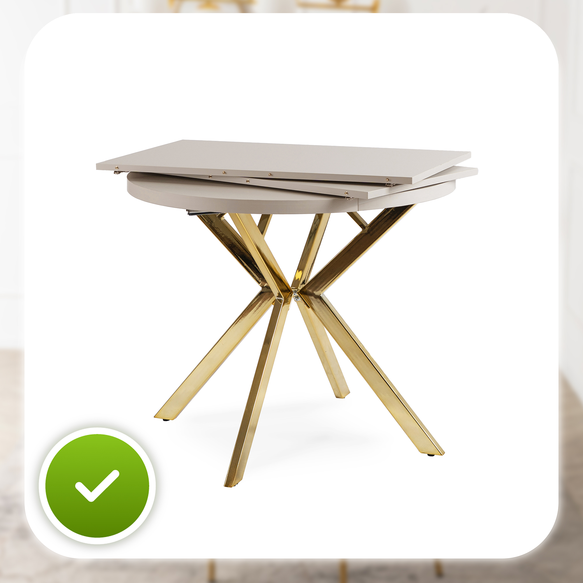 Dzięki prostemu mechanizmowi rozkładania i solidnej konstrukcji ze złotymi nogami, stół jest nie tylko praktyczny, ale również stabilny i elegancki w każdej konfiguracji.