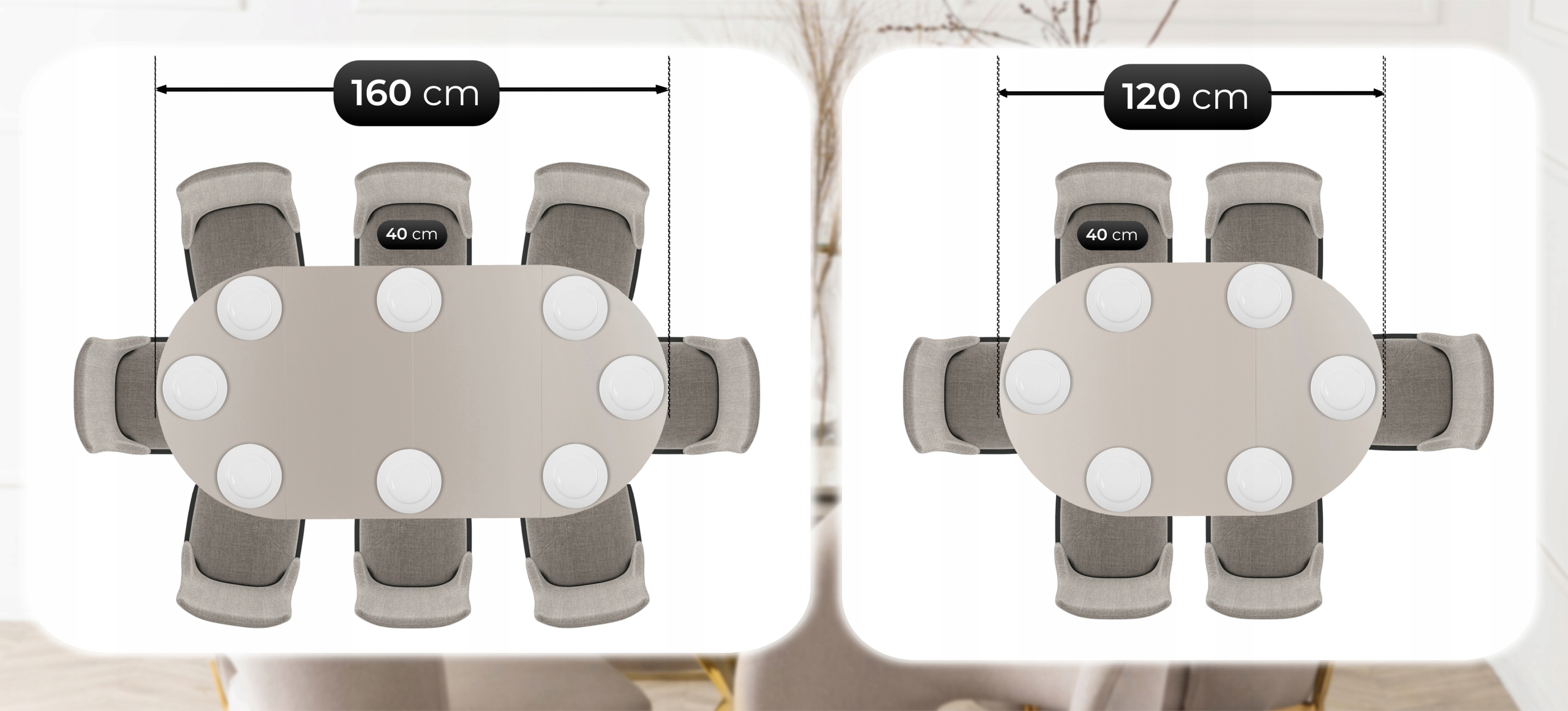- Szerokość stołu po rozłożenie: 120 - 160 cm