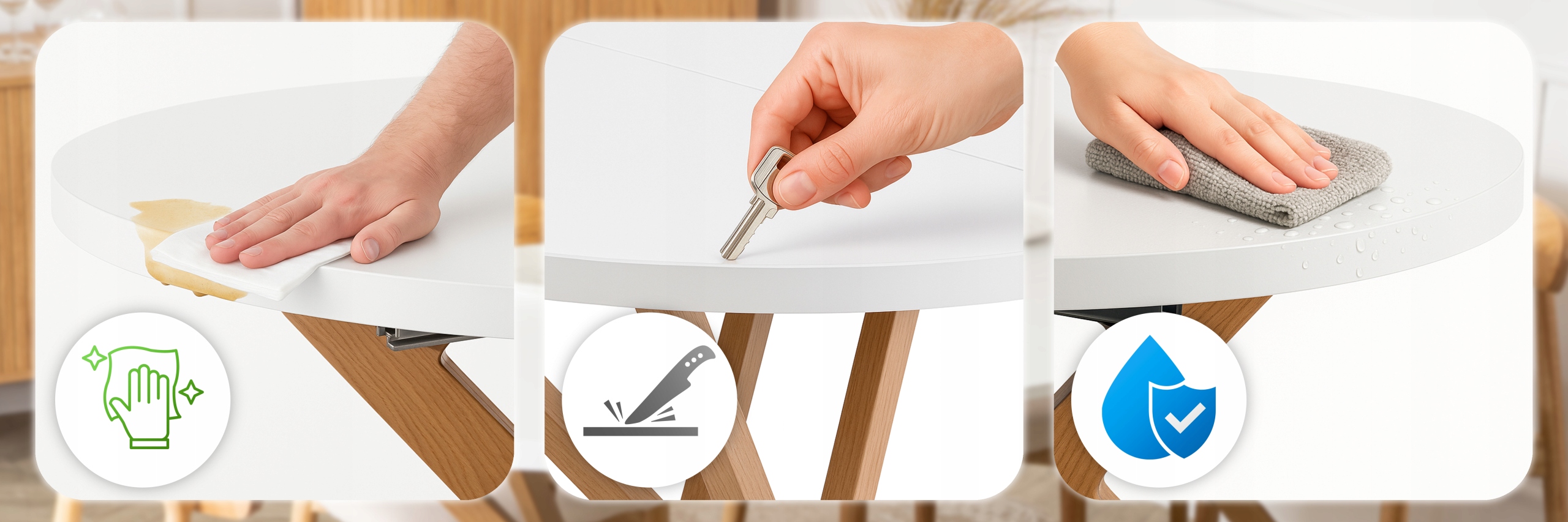 Czy blat stołu jest stabilny i łatwy w czyszczeniu?