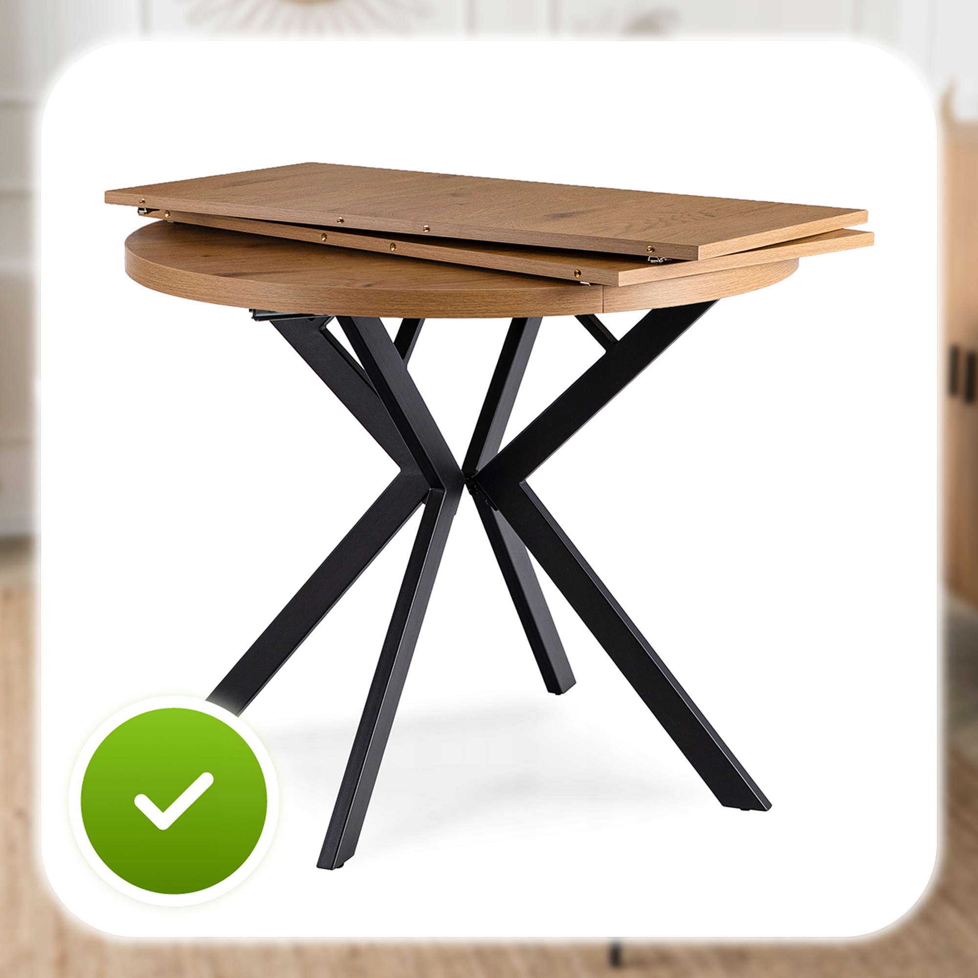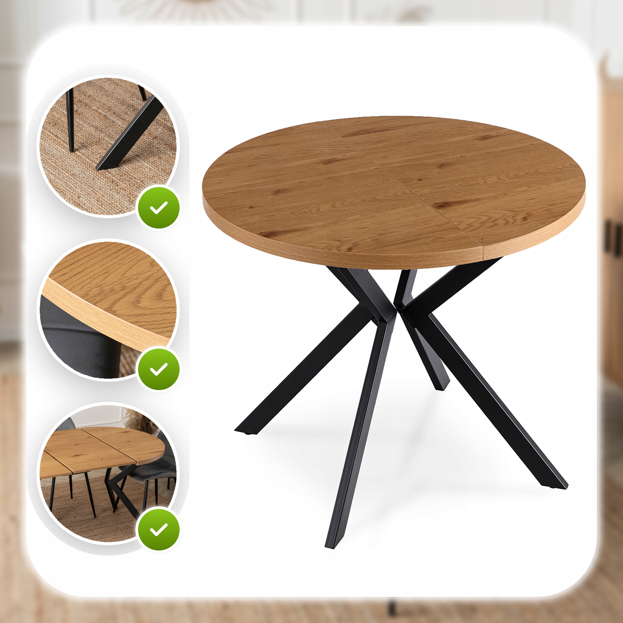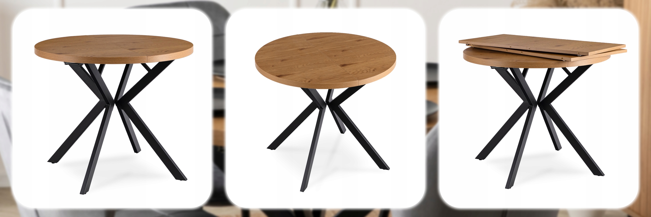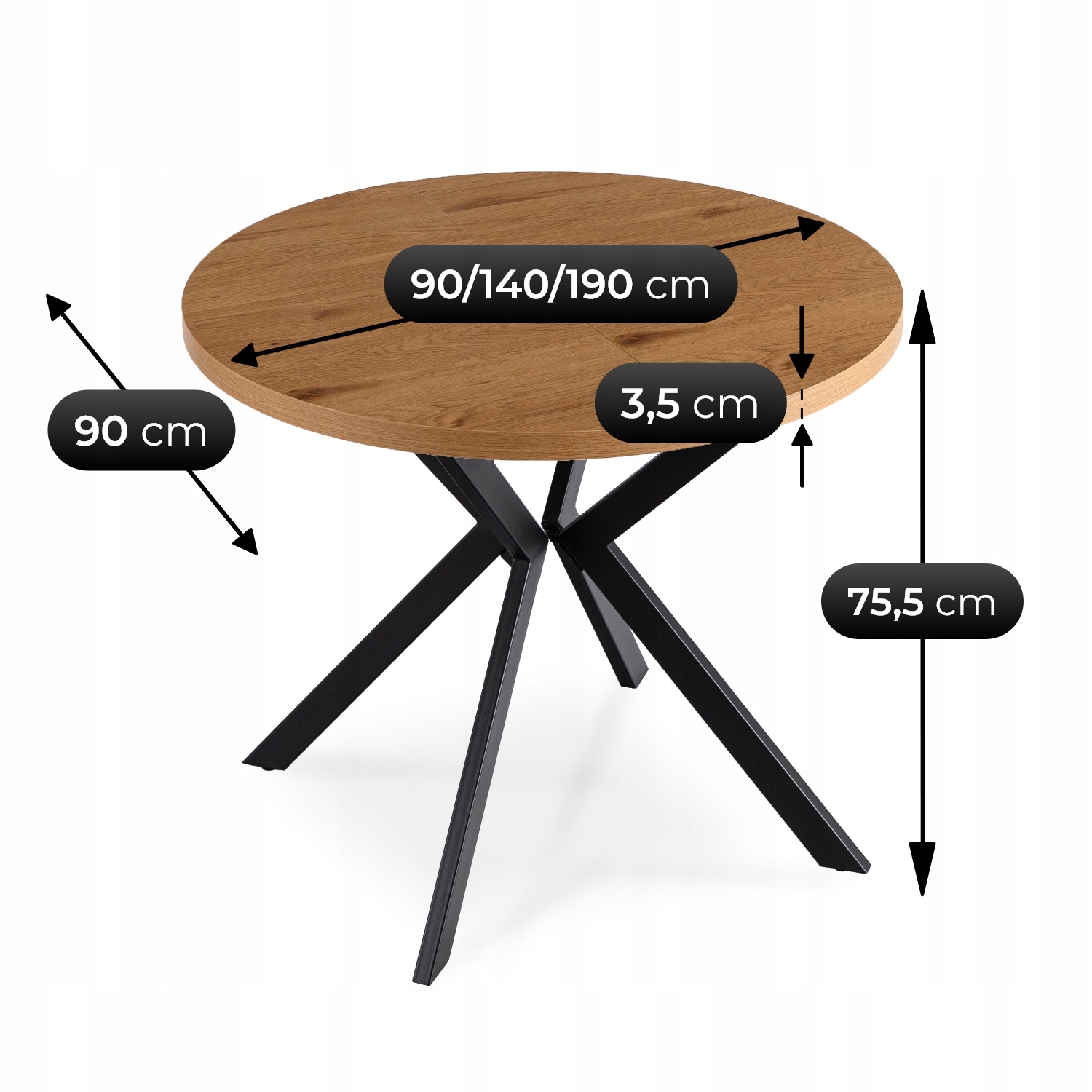 ✨ Stół Rozkładany Okrągły Kuchenny Do Jadalni Kuchni Salonu Loft Dąb LUGO