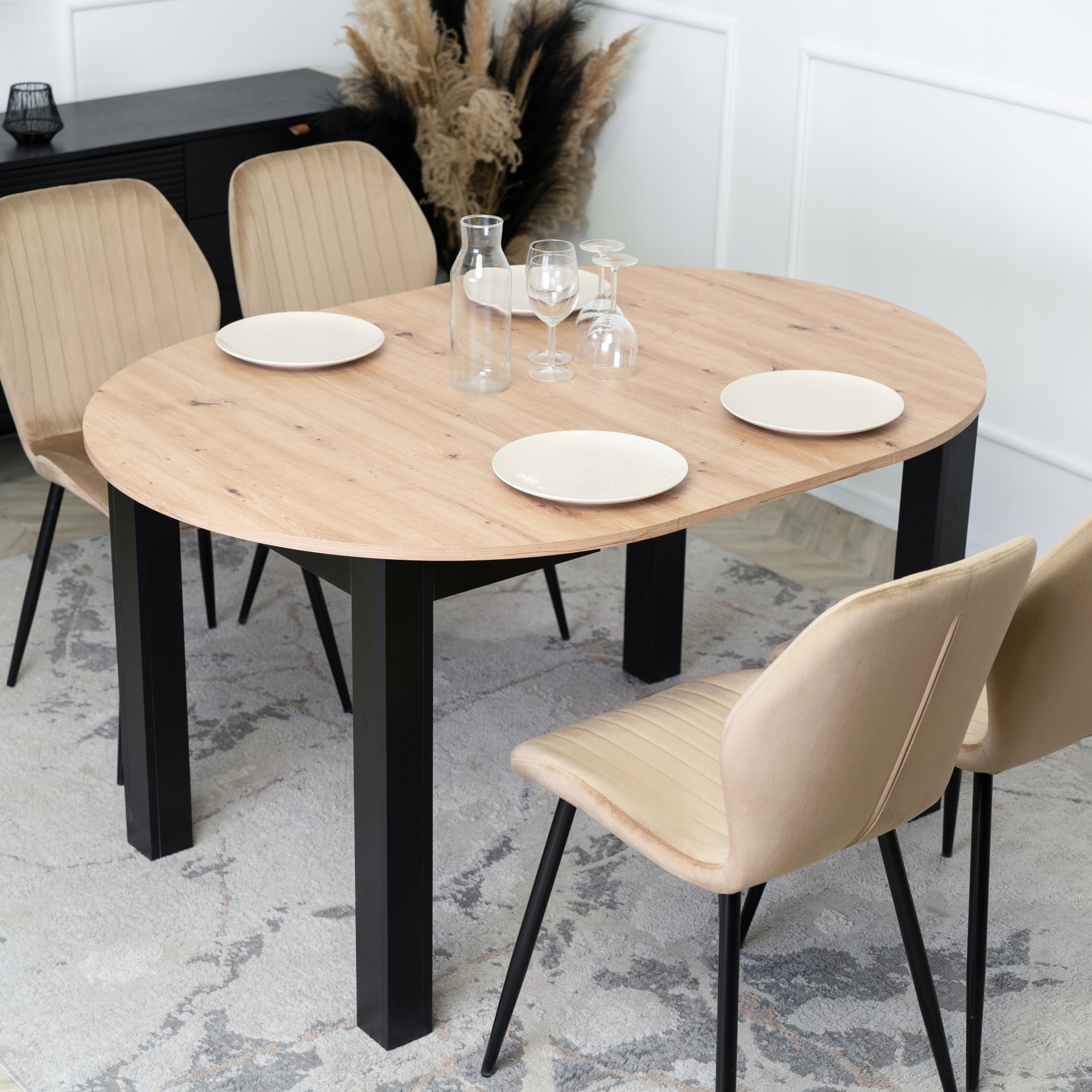 - Stół okrągły rozkładany HARRY kolor dąb artisan - czarny
