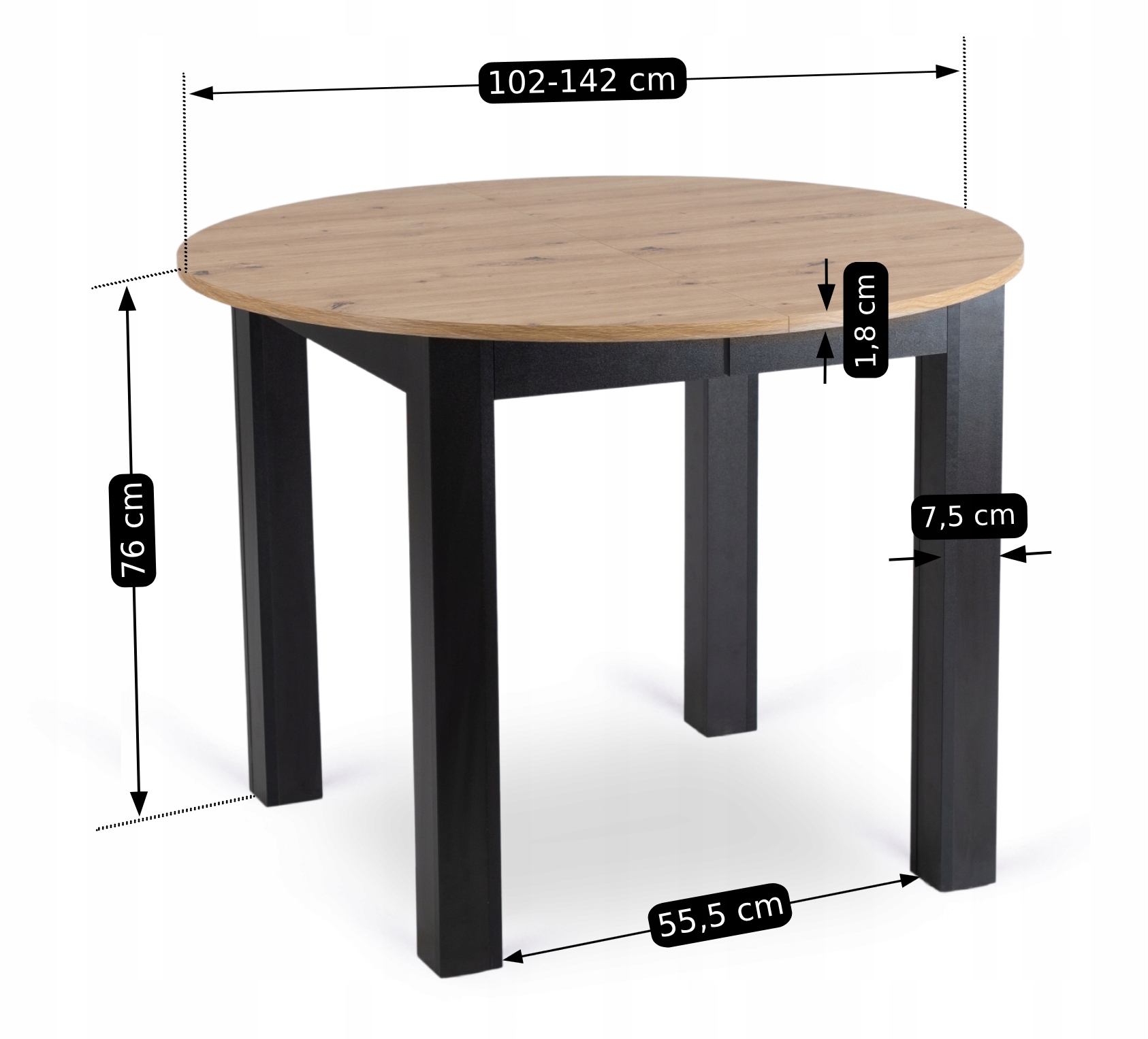 Stół Rozkładany Okrągły Kuchenny Do Jadalni Salon Dąb Artisan HARRY 102/142 ⭐⭐⭐⭐⭐