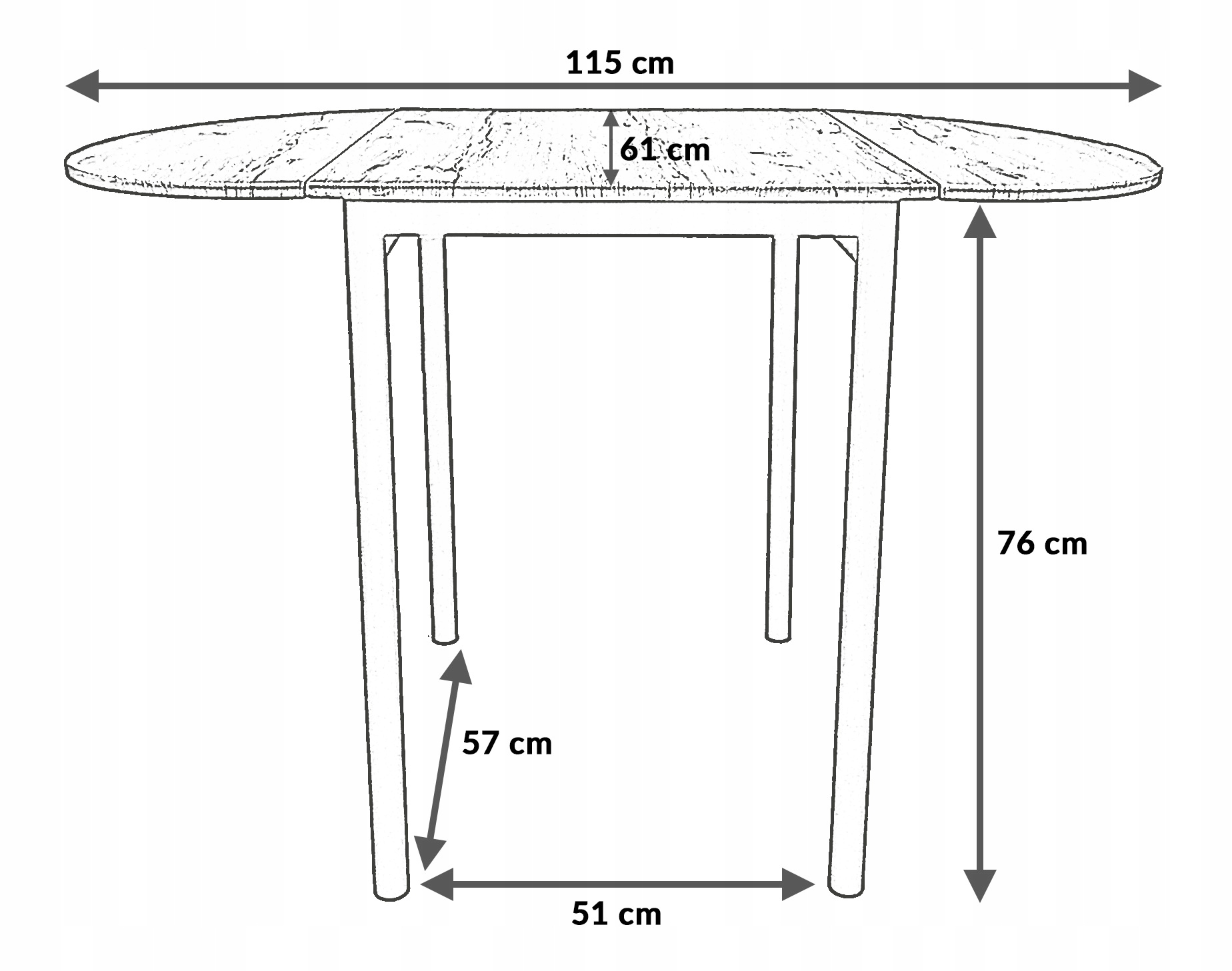 ✔️ Wymiar rozłożonego blatu stołu: 115x61 cm