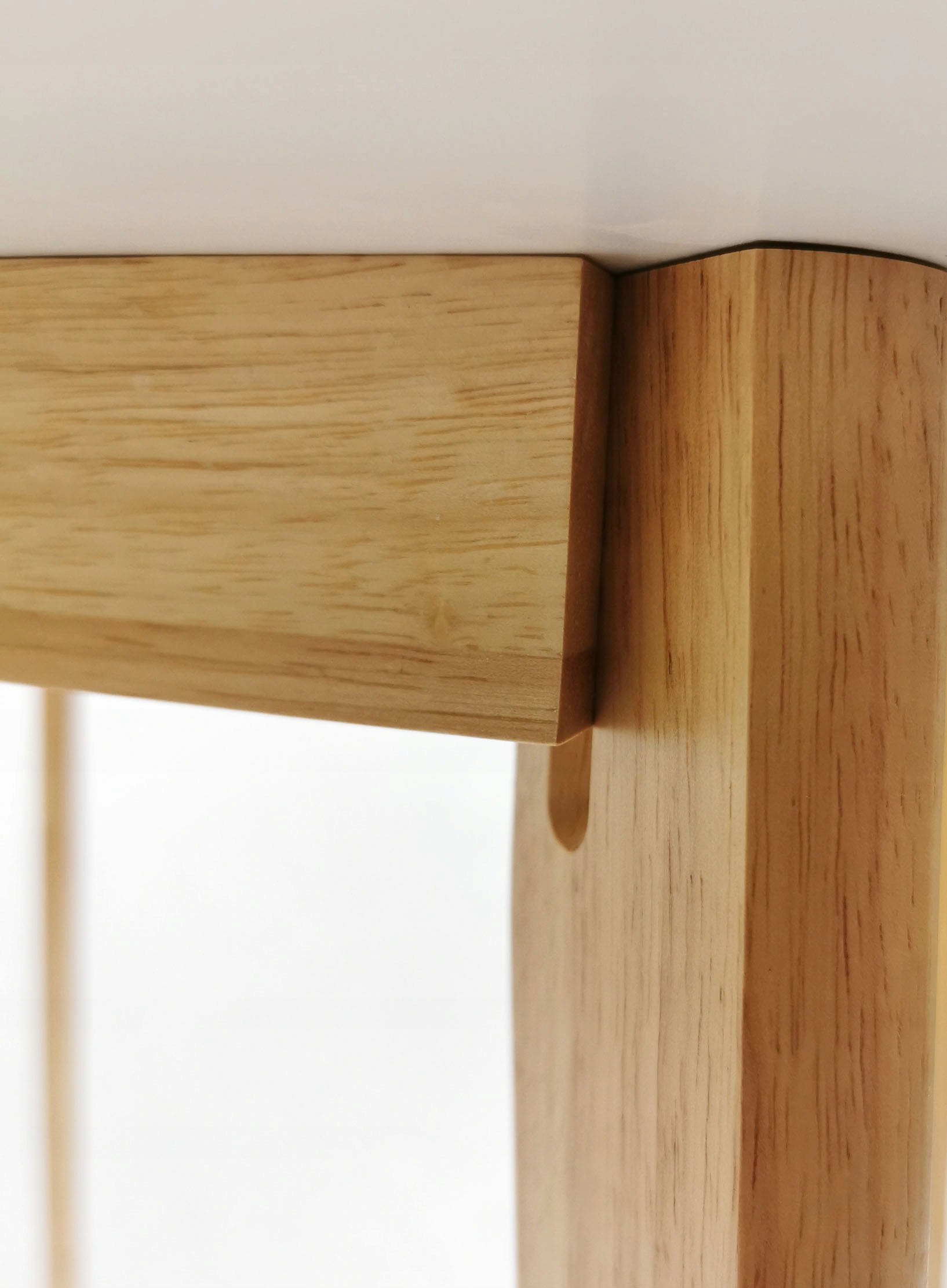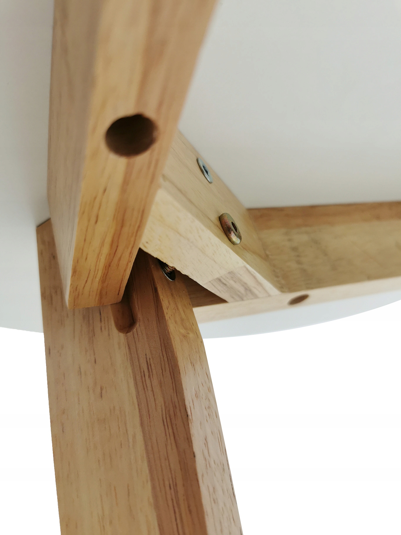 - Materiał wykonania: blat: Płyta MDF, nóżki + rama: drewno kauczukowe zabezpieczone bezbarwnym lakierem.