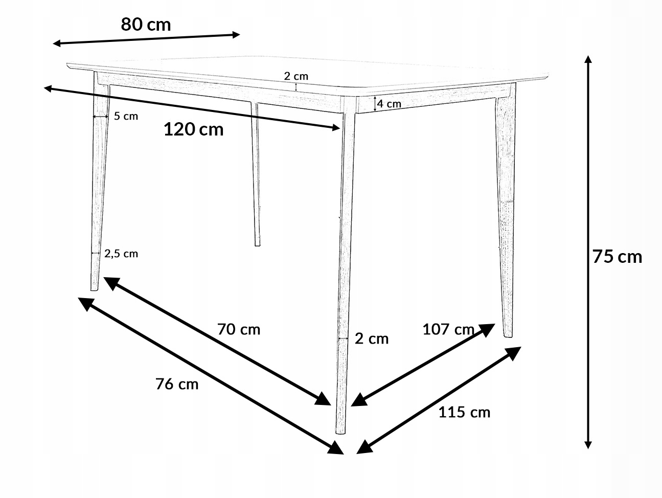 - Materiał wykonania: blat: Płyta MDF, nóżki + rama: drewno kauczukowe zabezpieczone bezbarwnym lakierem.