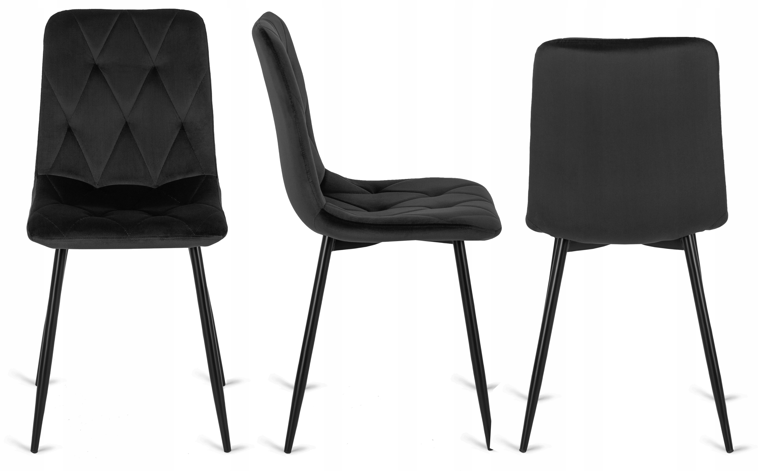 Krzesło ROBIN w kolorze czarnym łączy elegancki wygląd i wygodę użytkowania. Miękkie, tapicerowane siedzisko oraz pikowane oparcie zapewniają komfort podczas codziennych posiłków, a smukłe metalowe nogi w czerni dodają całości nowoczesnego charakteru. Idealne do jadalni, kuchni i salonu.