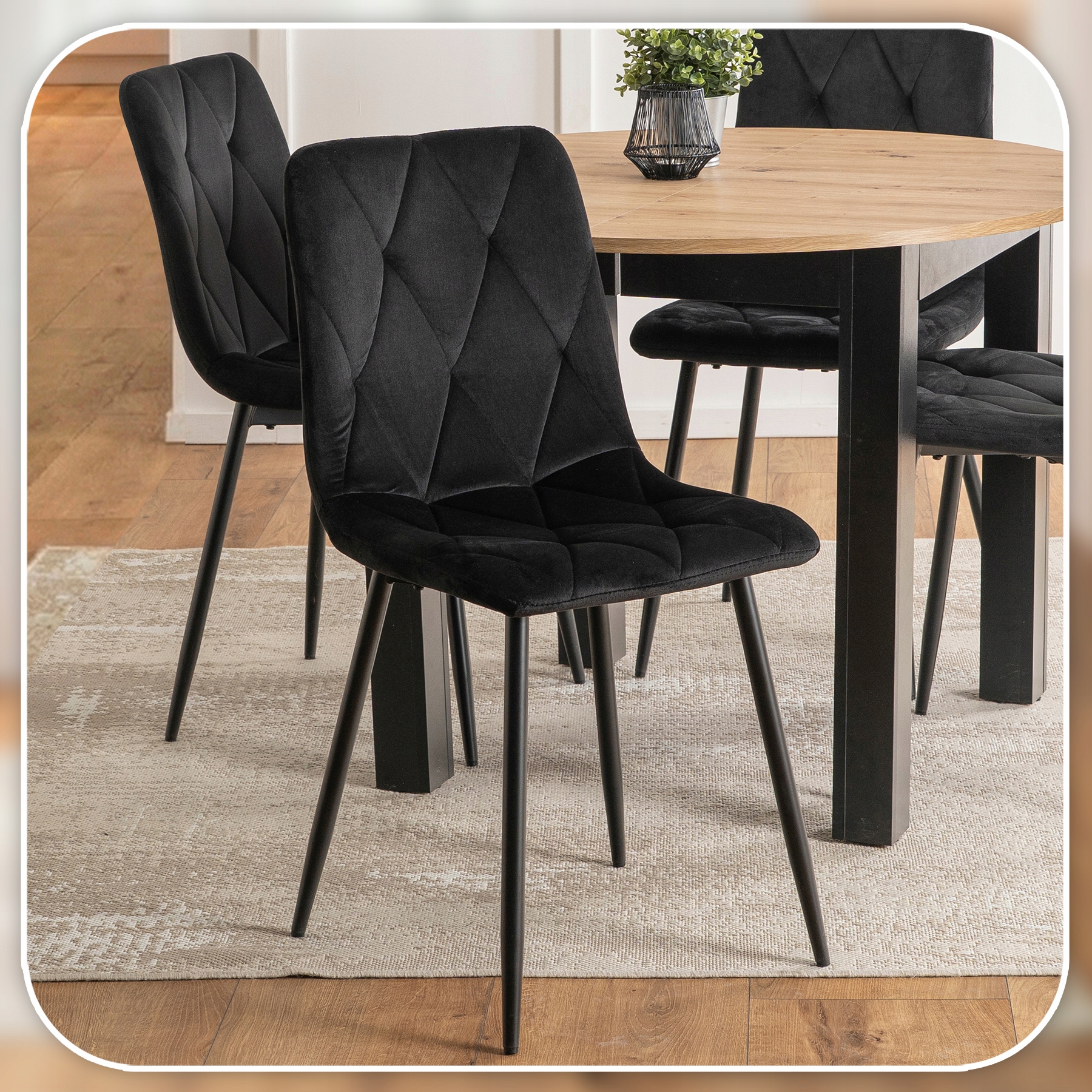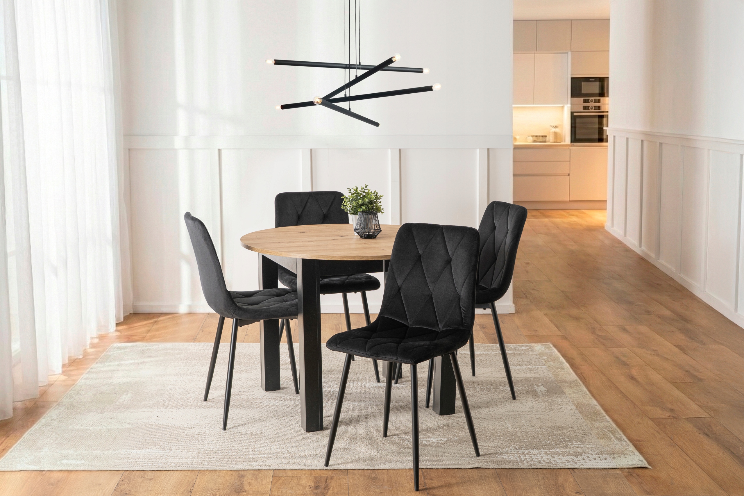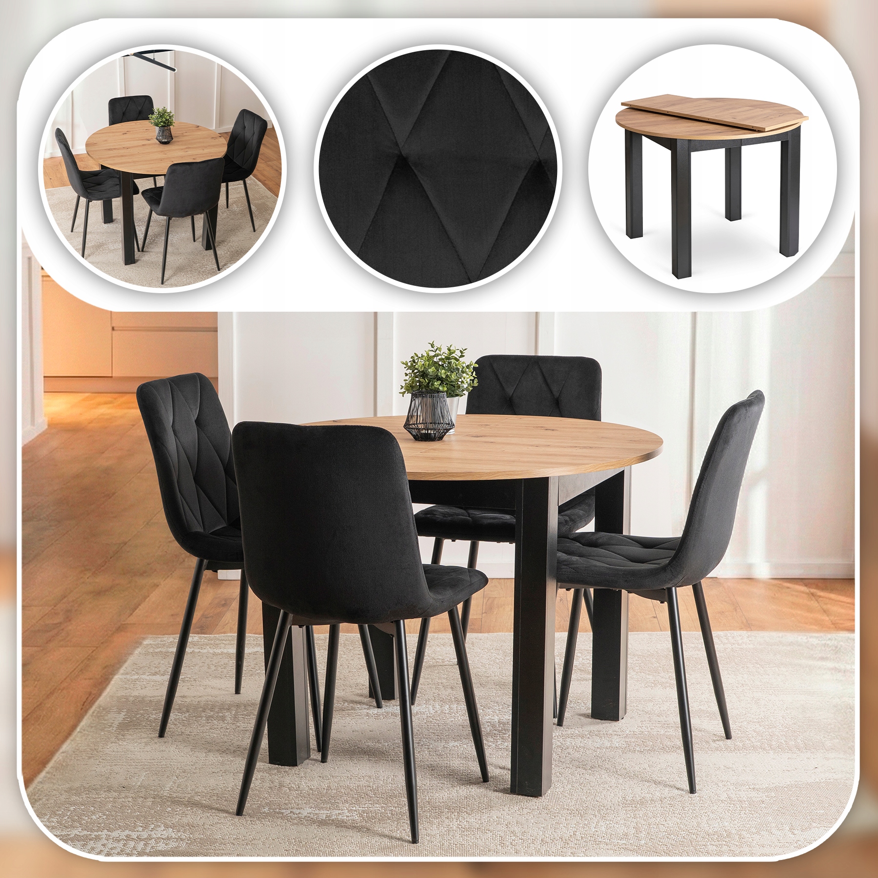 Stół Z 4 Krzesłami Zestaw 102 Okrągły Komplet Do Salon Jadalni Kuchni Dąb Czarny
