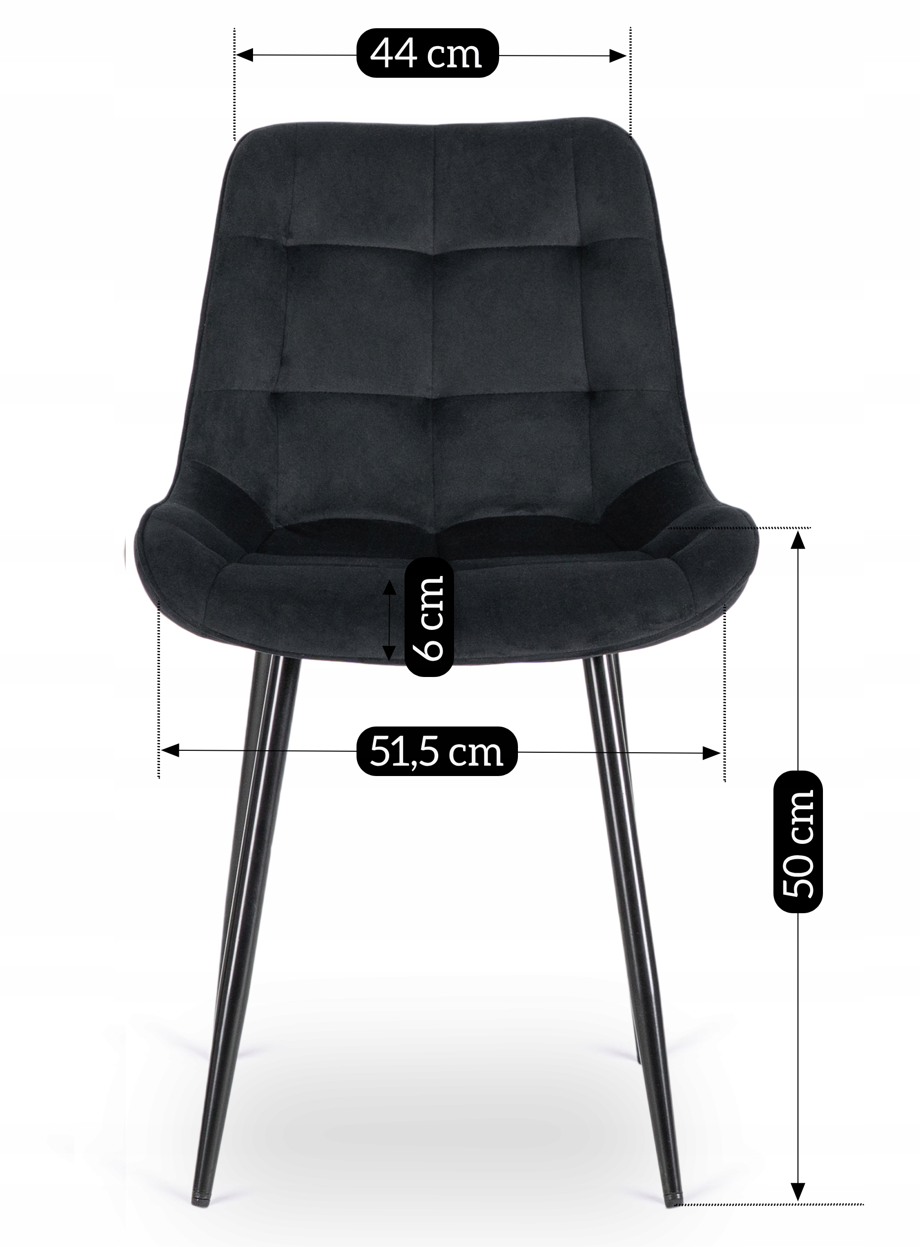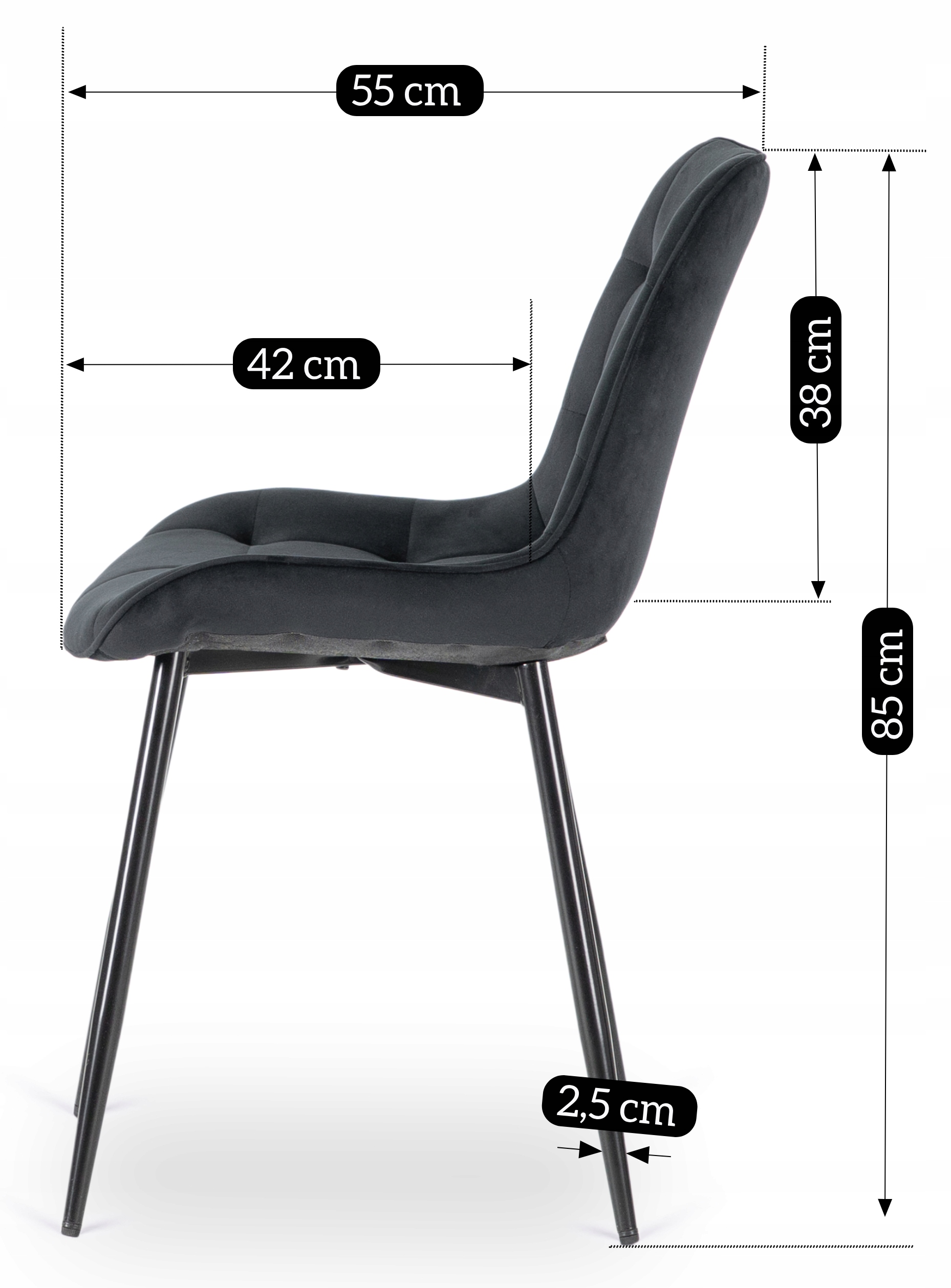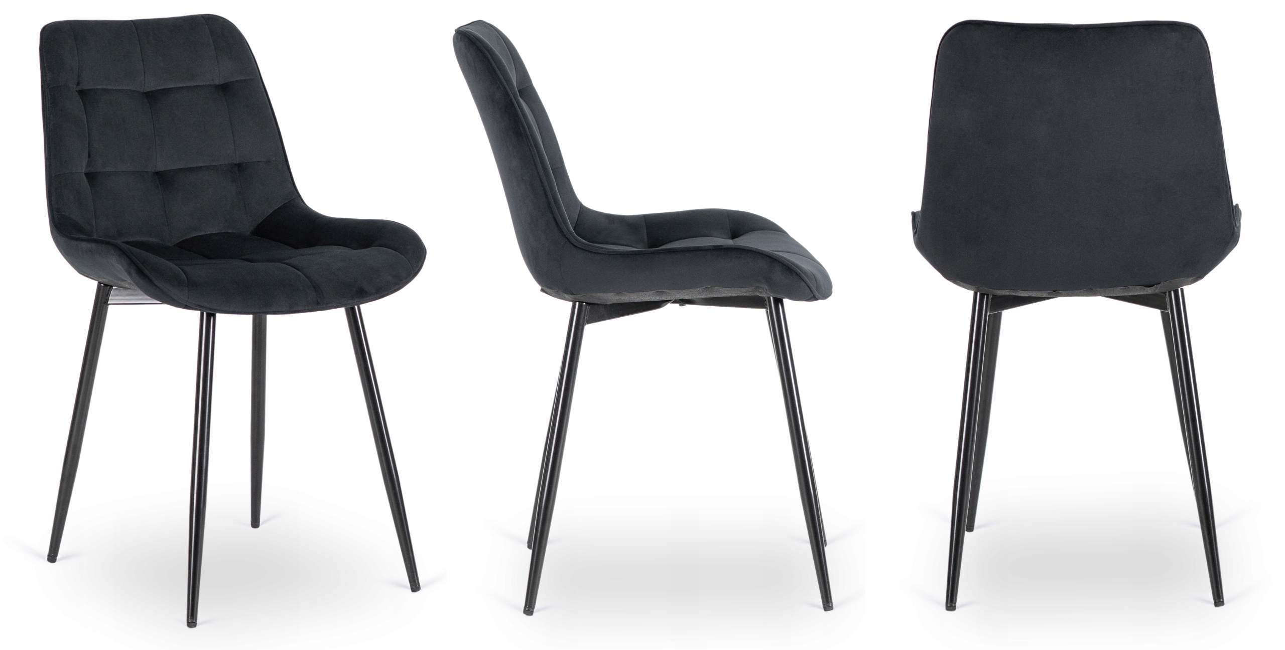 To doskonałe połączenie nowoczesnego designu z wygodą. Siedzisko oraz oparcie mają lekko wklęsły kształt, dzięki czemu dobrze dopasowują się do sylwetki podczas siedzenia. Krzesło jest tapicerowane pikowaną tkaniną welurową, która dodaje elegancji.