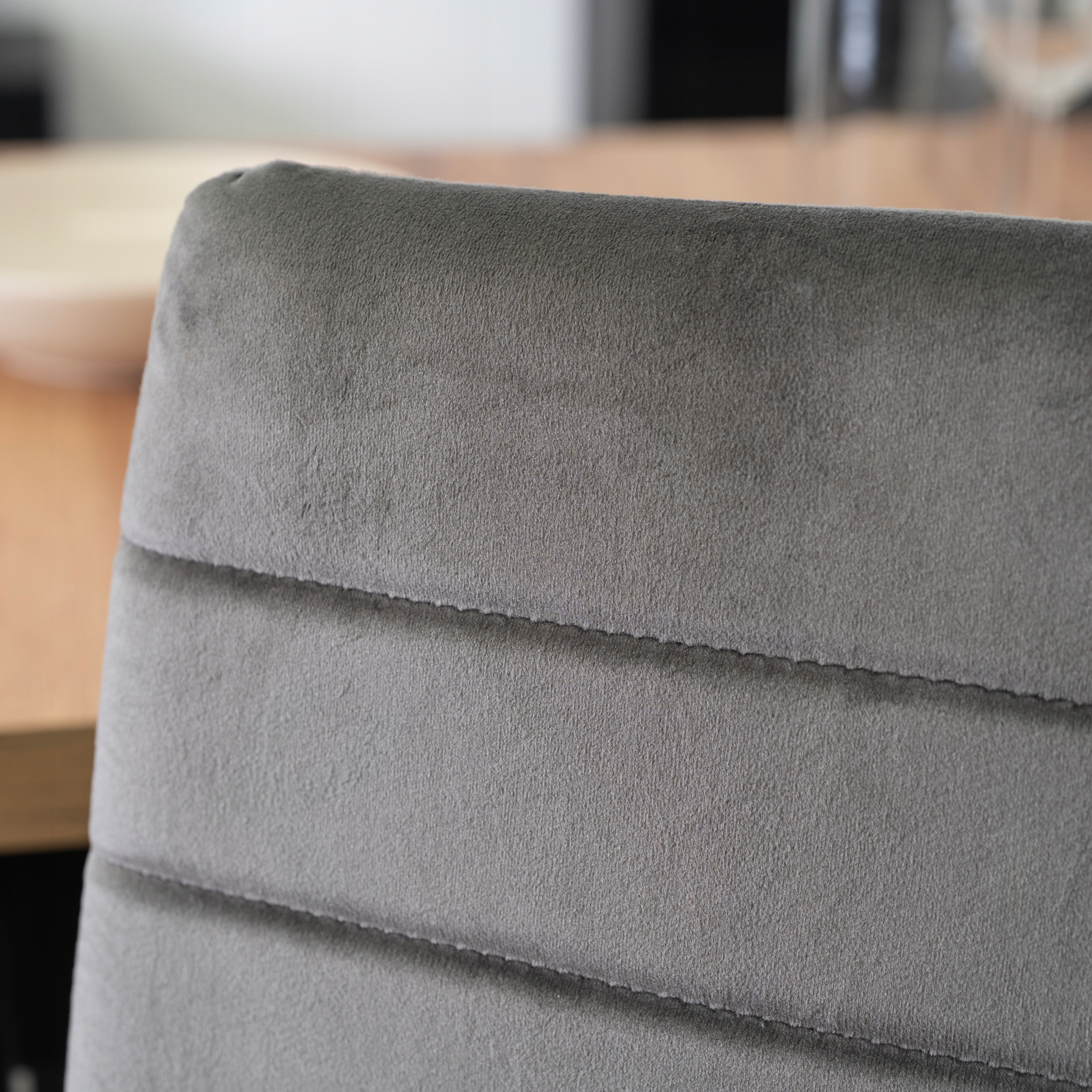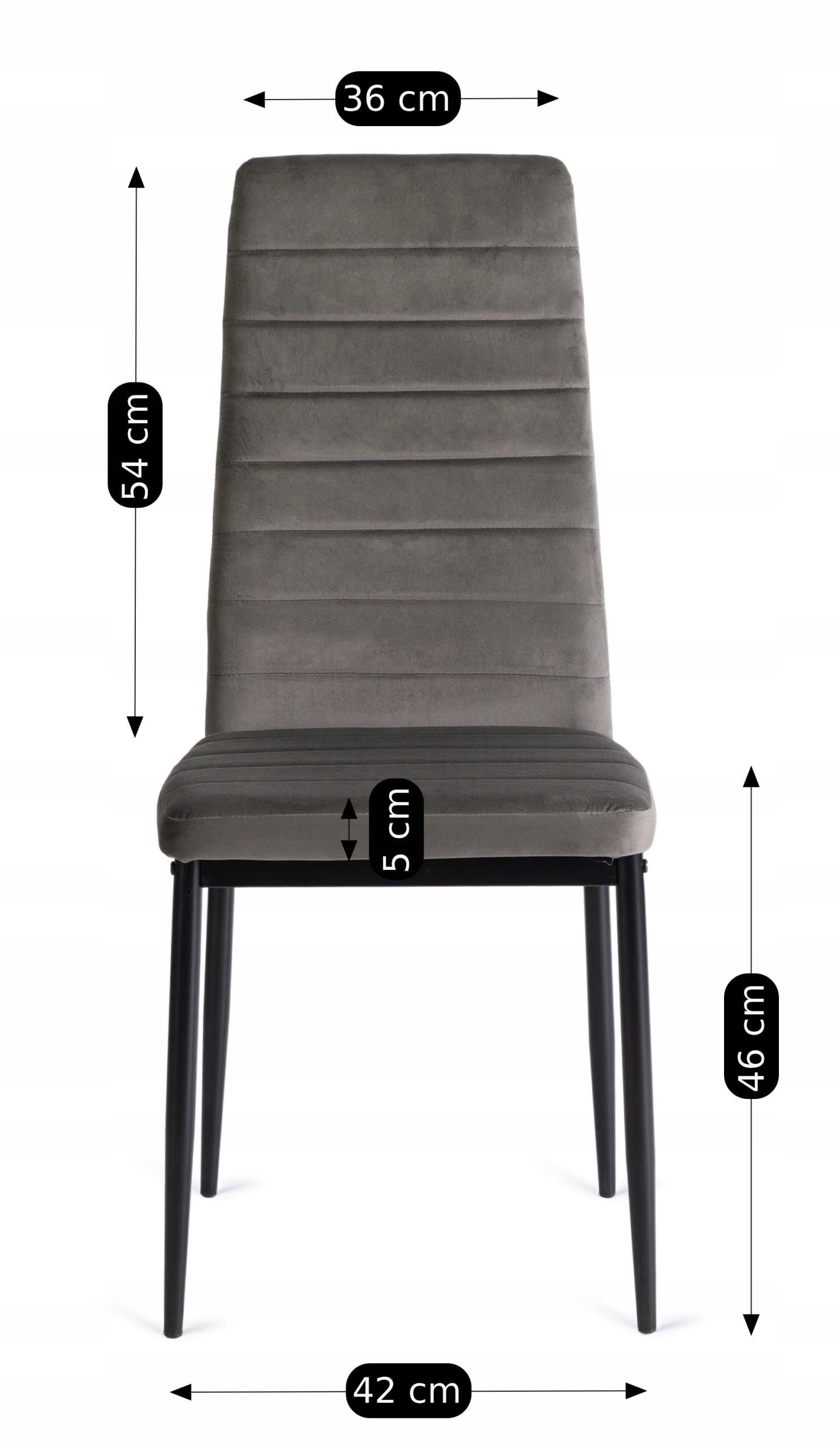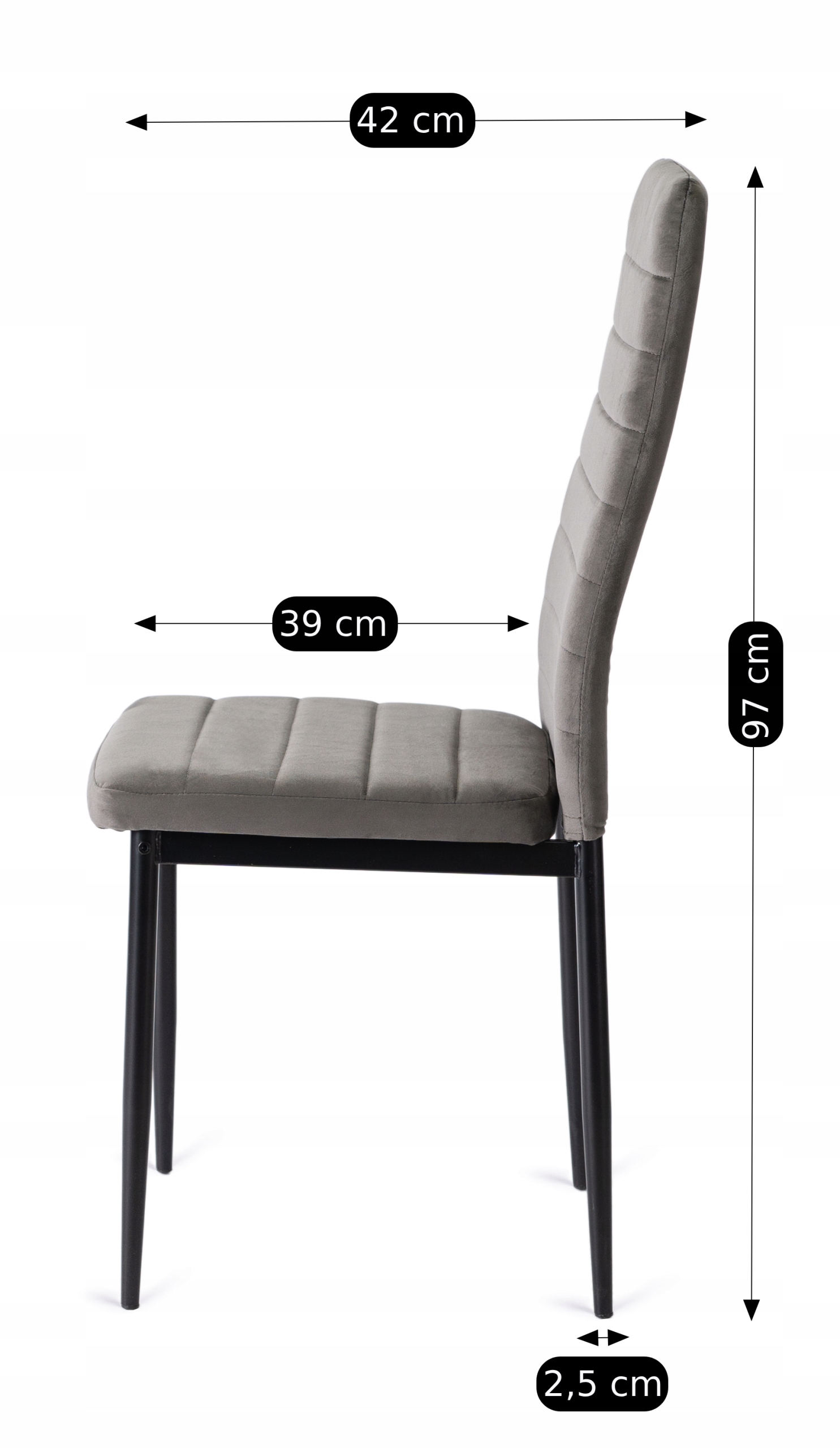 To połączenie wygody, stylu i trwałości. Wysokie oparcie ma lekko wygięty kształt, żeby lepiej przylegać do pleców, a siedzisko jest wypełnione miękką pianką tapicerską. Krzesło jest pokryte pikowaną, welurową tkaniną, która dodaje elegancji.