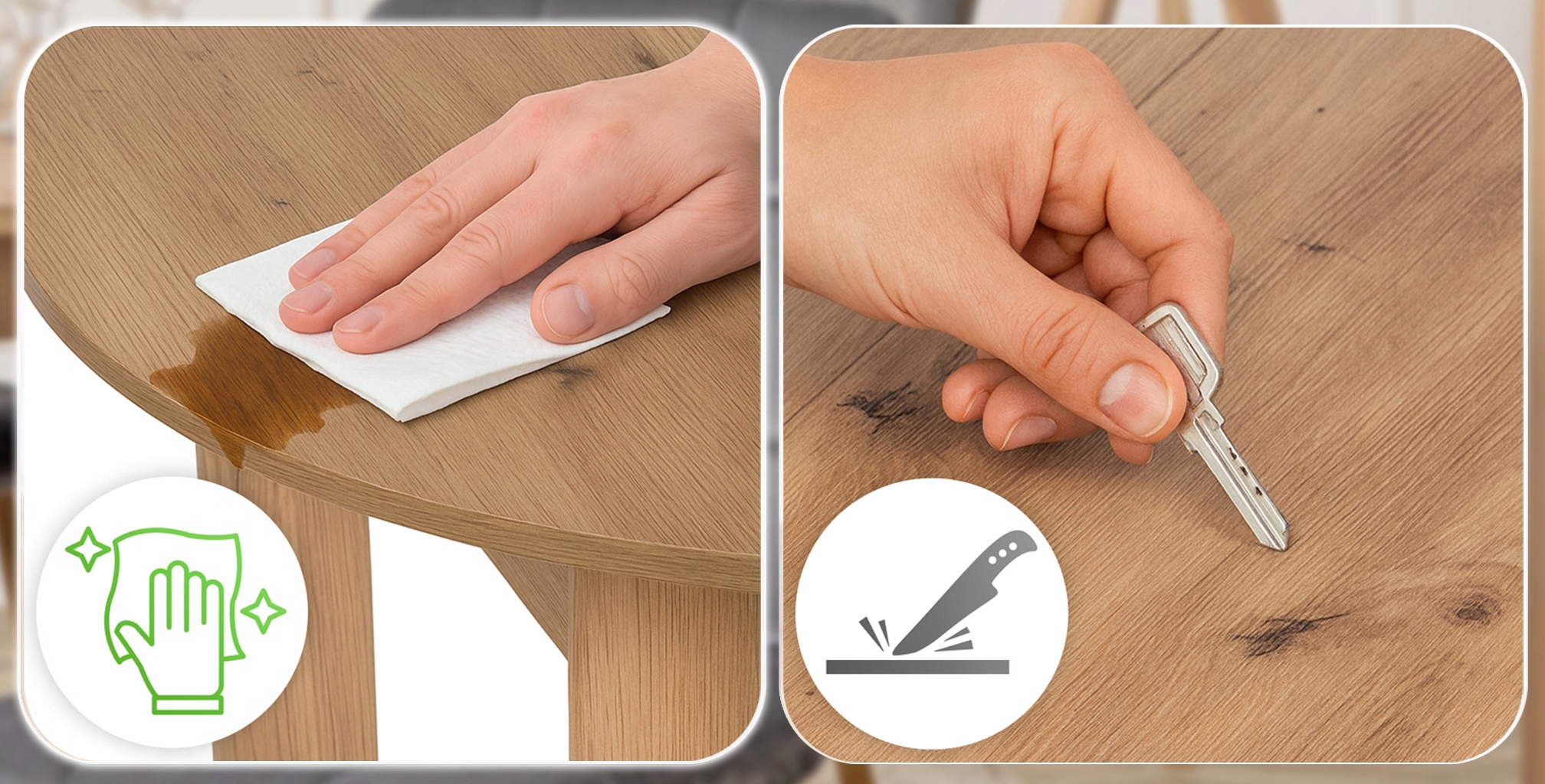 - Odporność na codzienne użytkowanie - gładka, wytrzymała powierzchnia nie ulega pęknięciom ani wgnieceniom