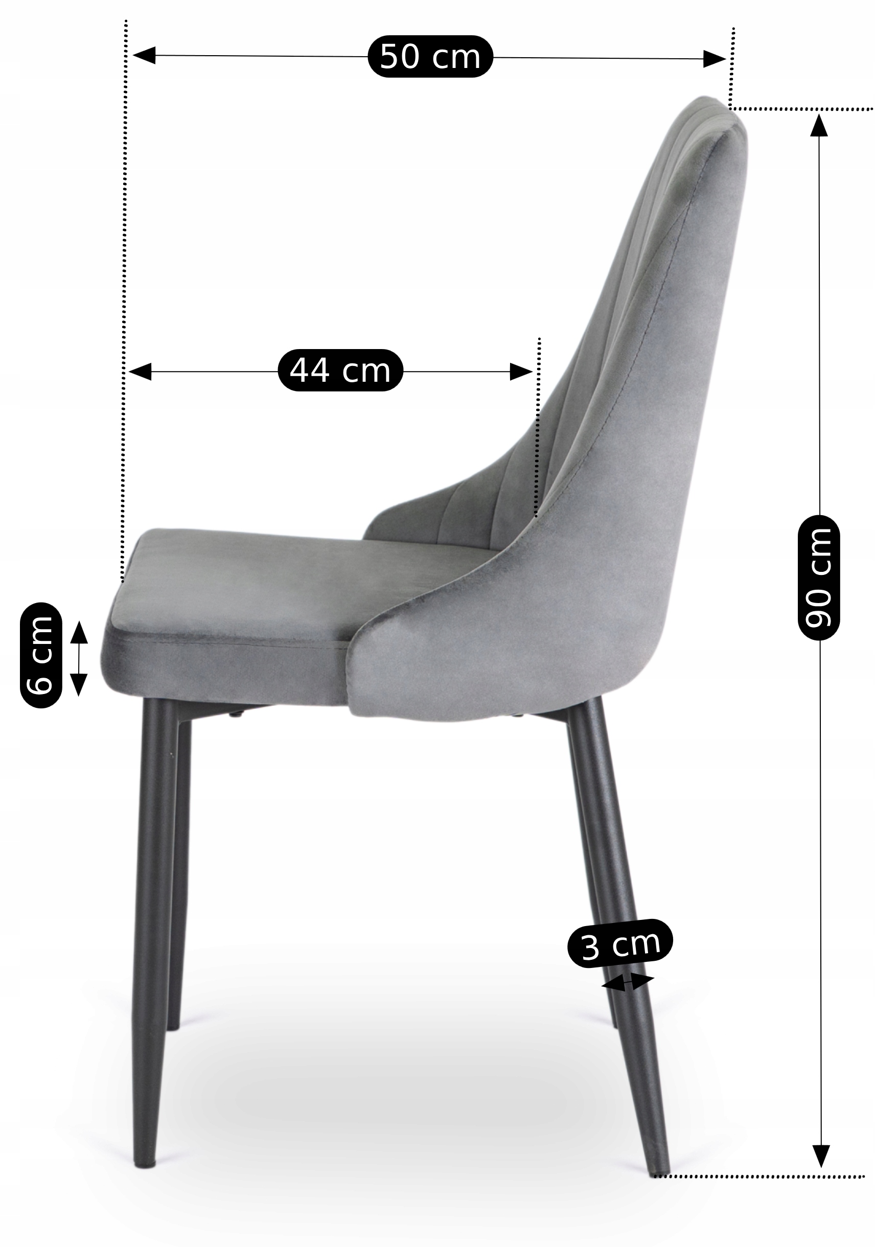 ⭐ To doskonałe połączenie nowoczesnego designu z wygodą. Boki oparcia są lekko zaokrąglone, co powoduje lepsze dopasowanie do sylwetki podczas siedzenia, a także nadaje krzesłu ciekawy wygląd. Krzesło jest pokryte tkaniną welurową, która dodaje elegancji oraz ma wypełnienie z pianki tapicerskiej.