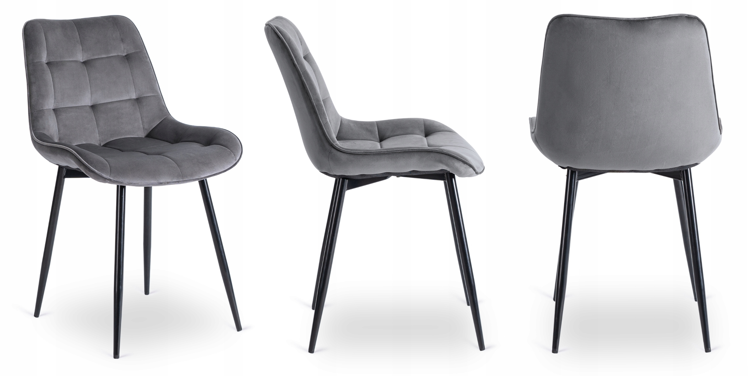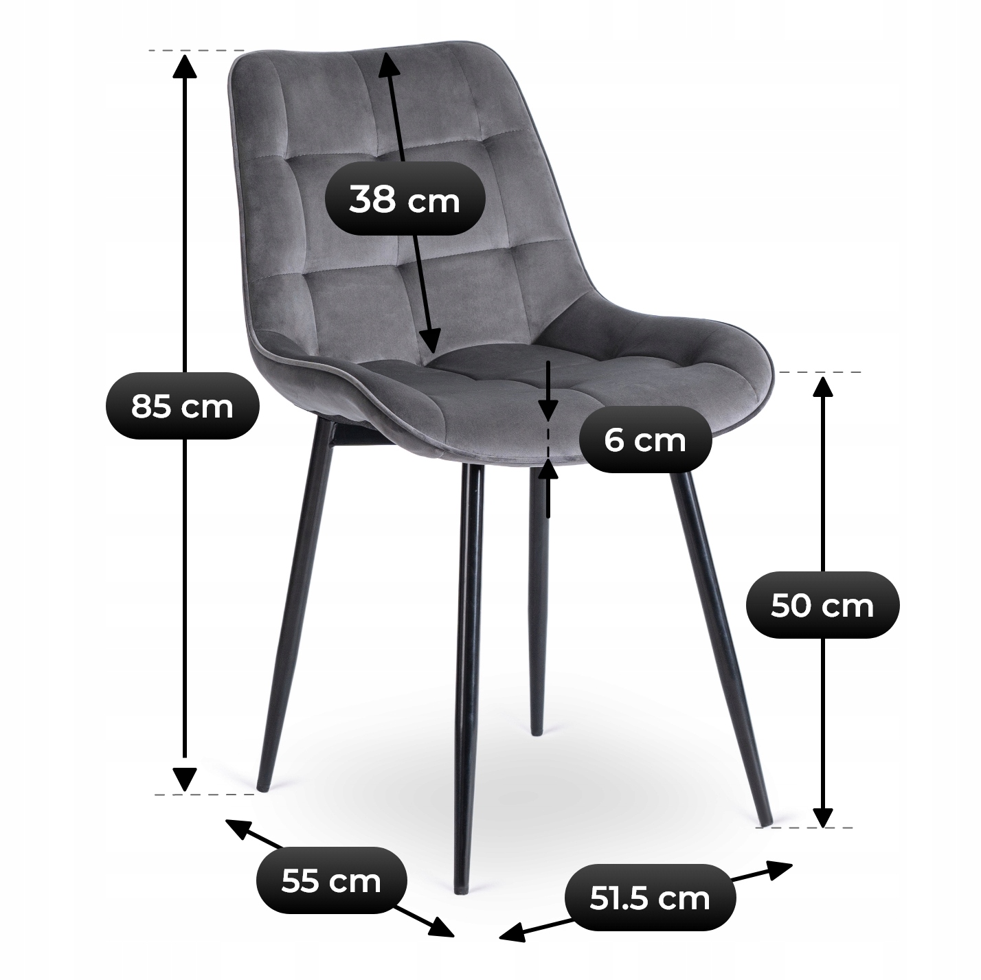 Stelaż krzesła wykonany jest z metalu malowanego na czarny kolor. Siedzisko to miękka poduszka z pianki tapicerskiej i wysokiej jakości weluru.