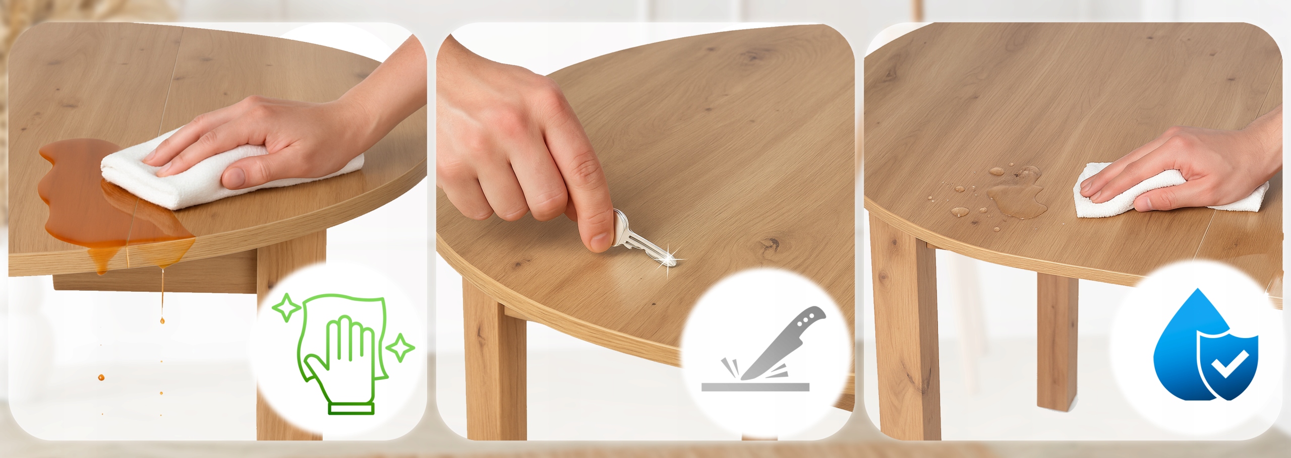 - Odporność na codzienne użytkowanie - gładka, wytrzymała powierzchnia nie ulega pęknięciom ani wgnieceniom