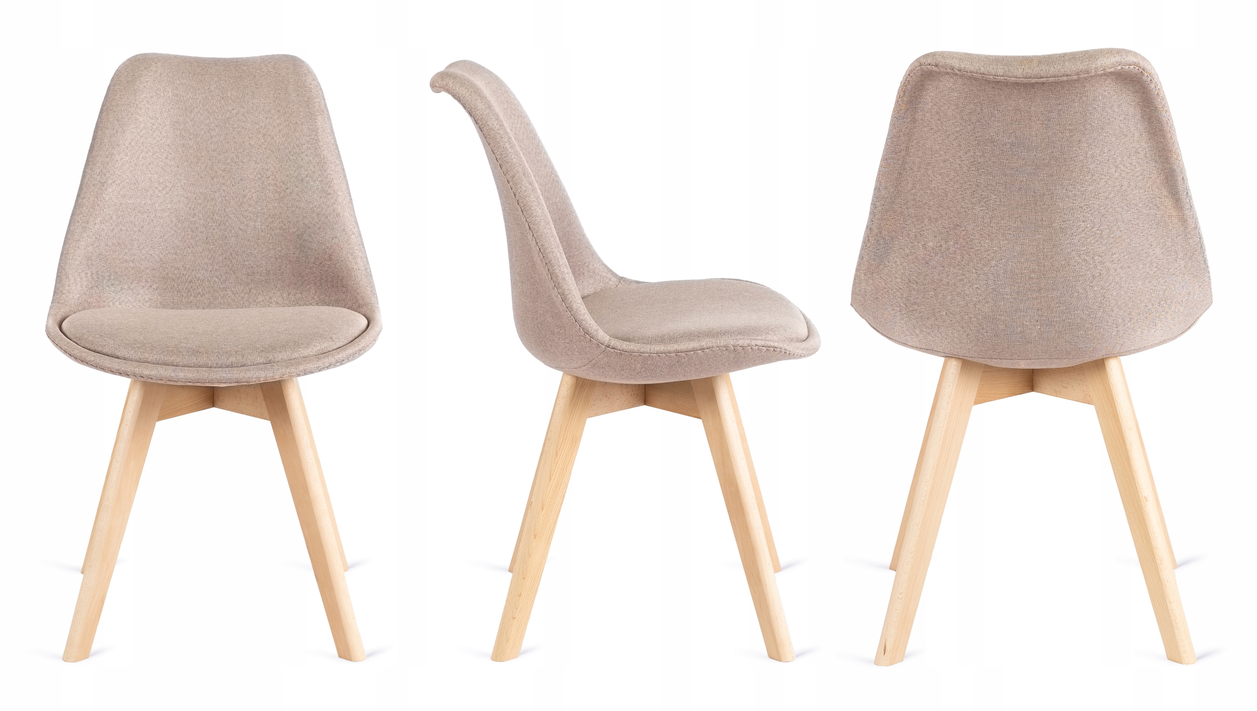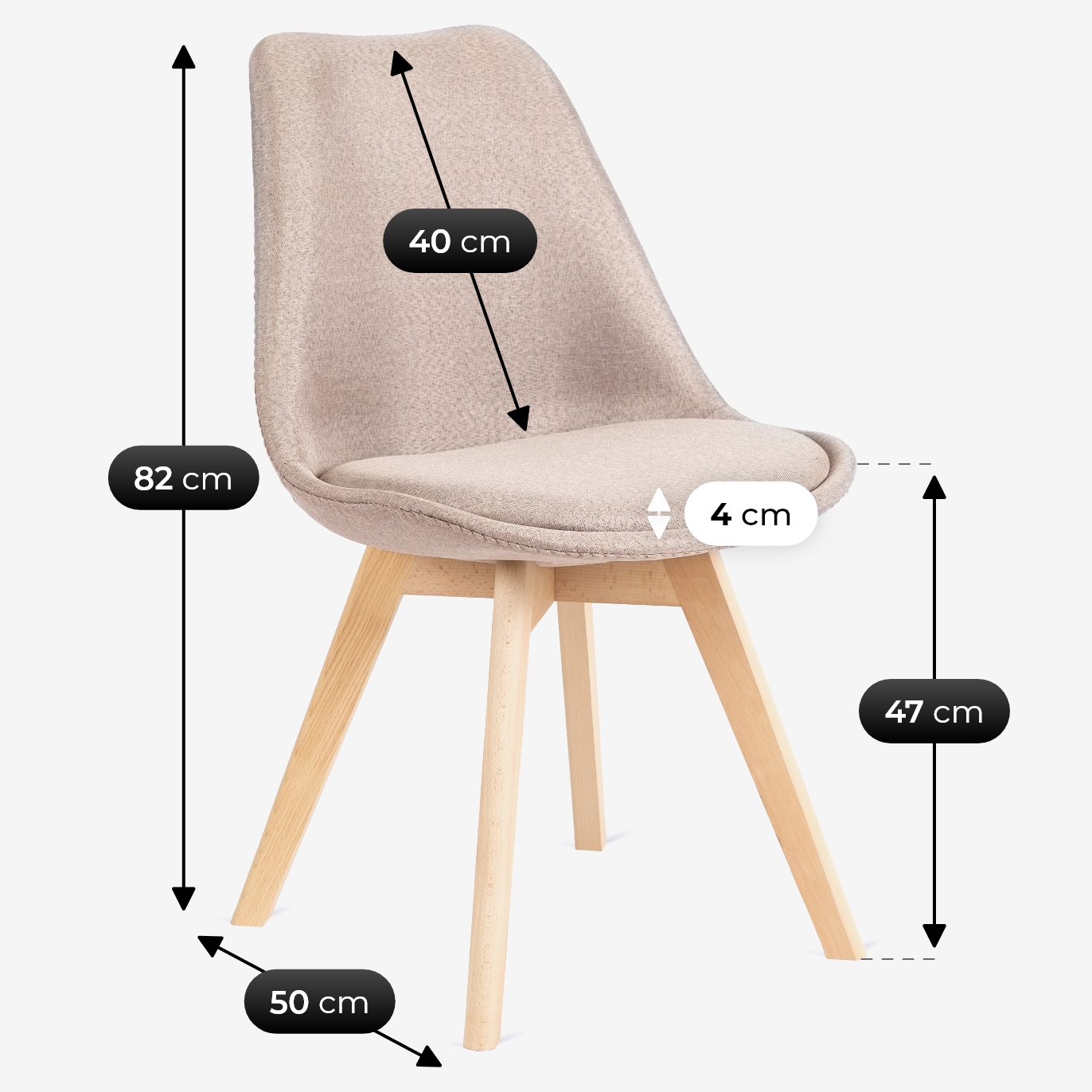 Stelaż krzesła wykonany jest z prawdziwego drewna w kolorze naturalnego dębu. Siedzisko to miękka poduszka z pianki tapicerskiej i wysokiej jakości tkaniny.