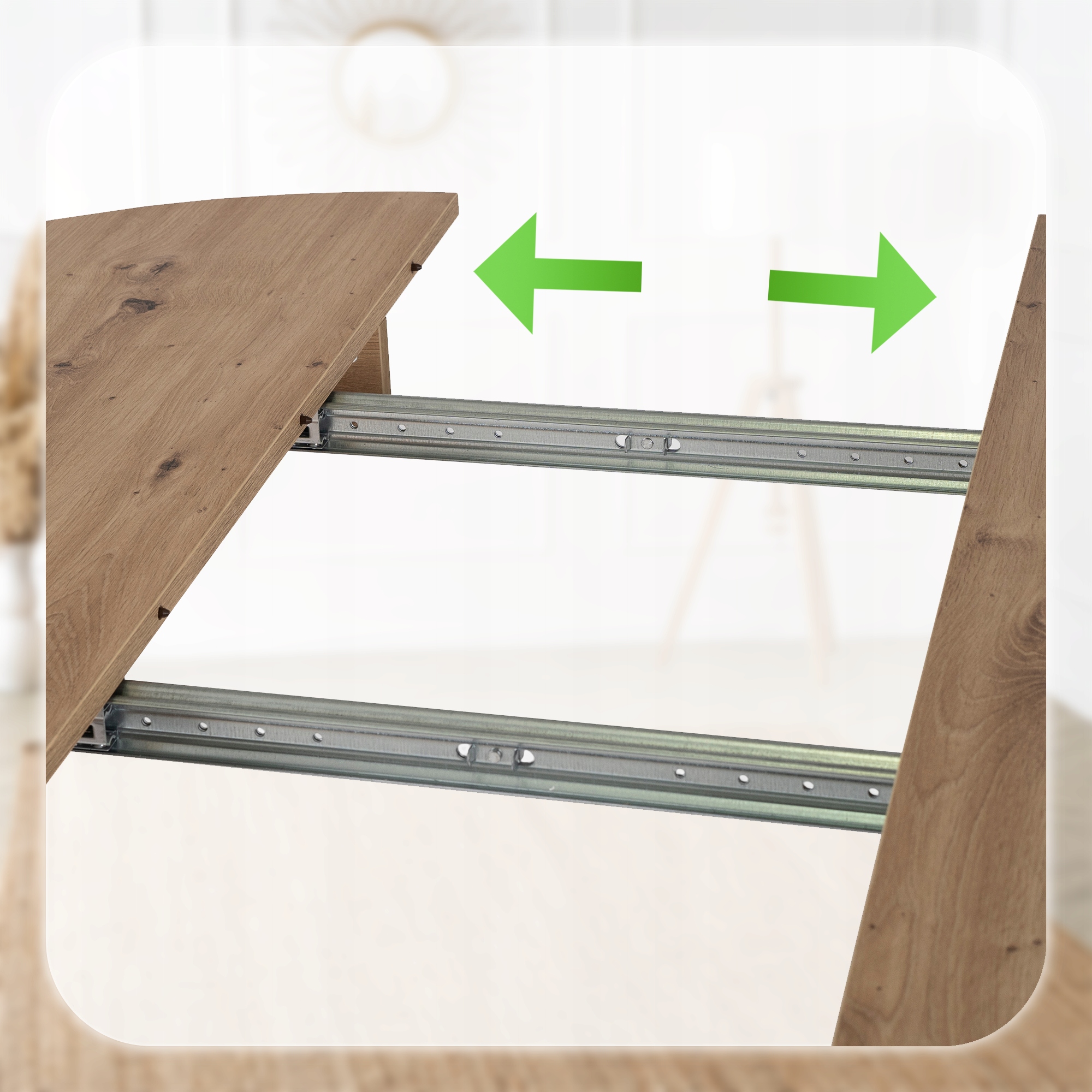 Dzięki funkcji rozkładania z łatwością dopasujesz rozmiar blatu do swoich potrzeb – wystarczy użyć wkładki, aby powiększyć blat z 102 cm do aż 142 cm. To idealne rozwiązanie zarówno na co dzień, jak i podczas rodzinnych spotkań czy przyjęć.