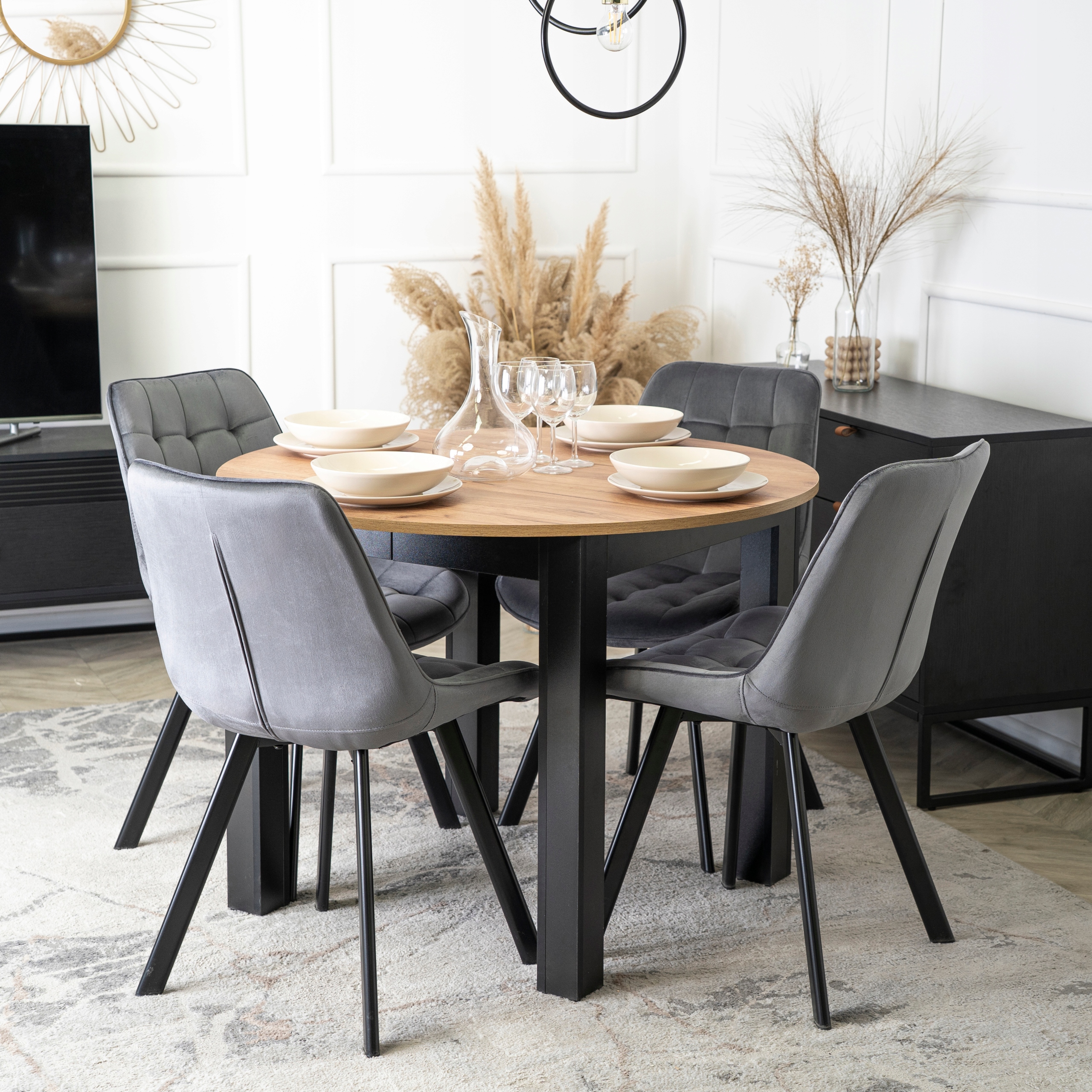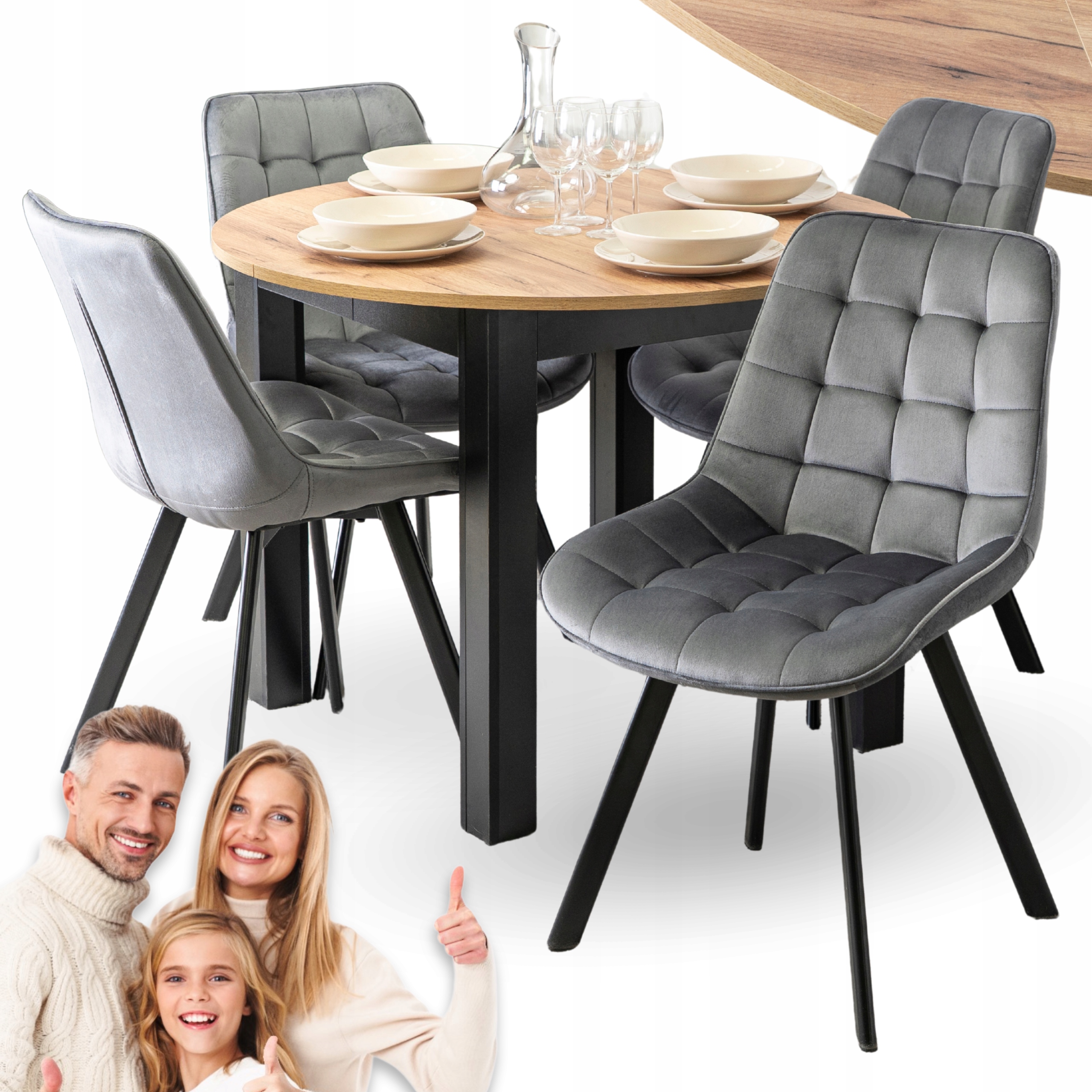 Zestaw Stół Okrągły Rozkładany z Krzesło 4x Tapicerowane Szare Welurowe ⭐⭐⭐⭐⭐
