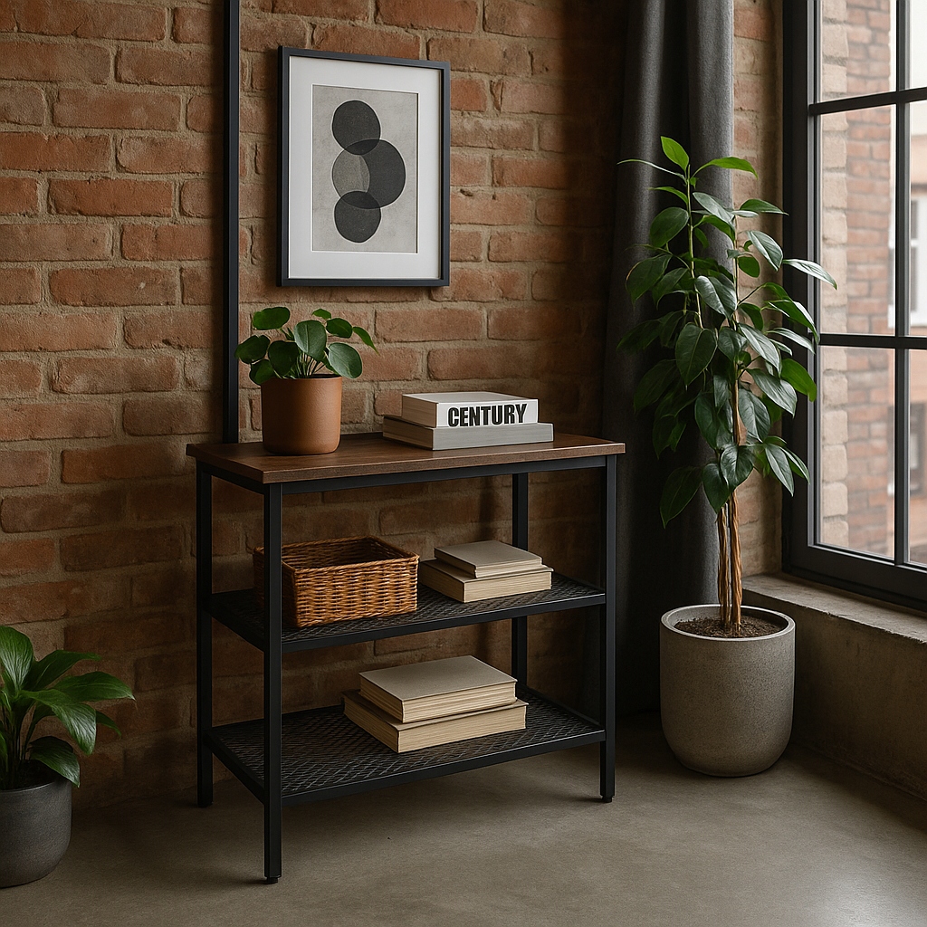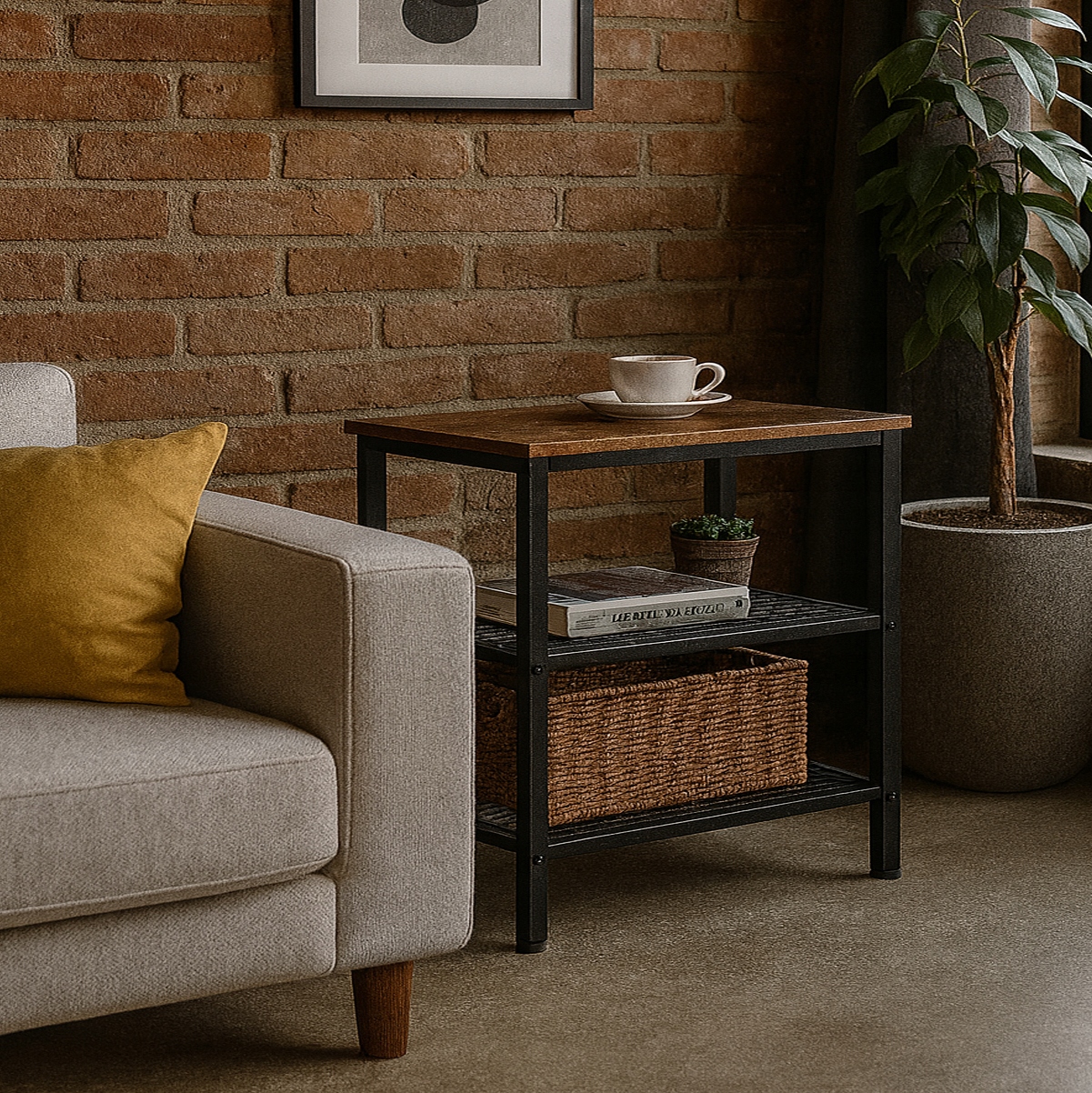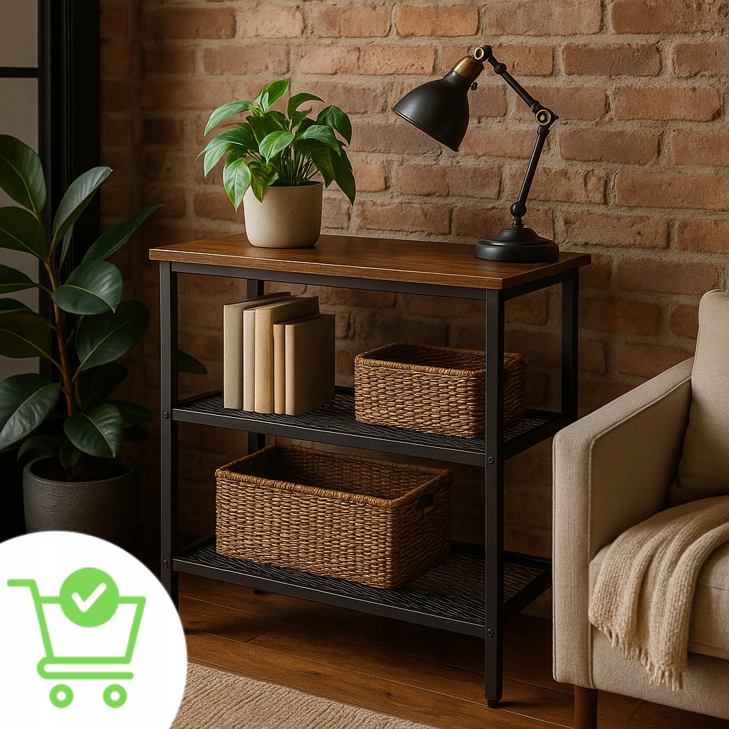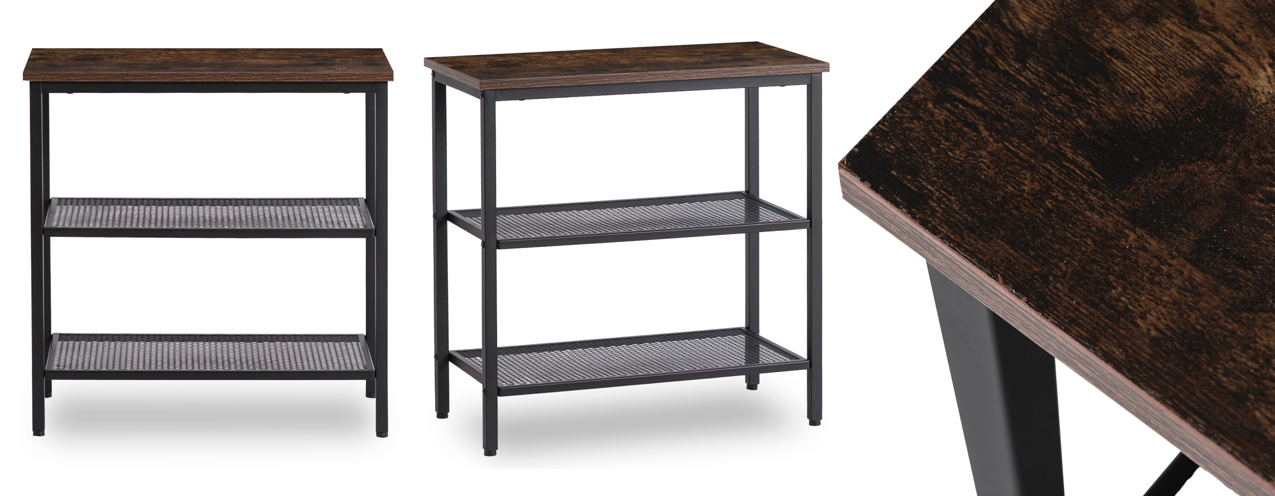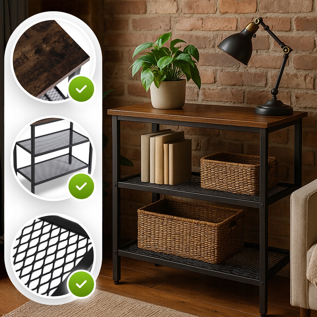 ✨ Stolik Boczny Kawowy Z Półkami Regał Metalowy Na Książki Rustykalny CARTER