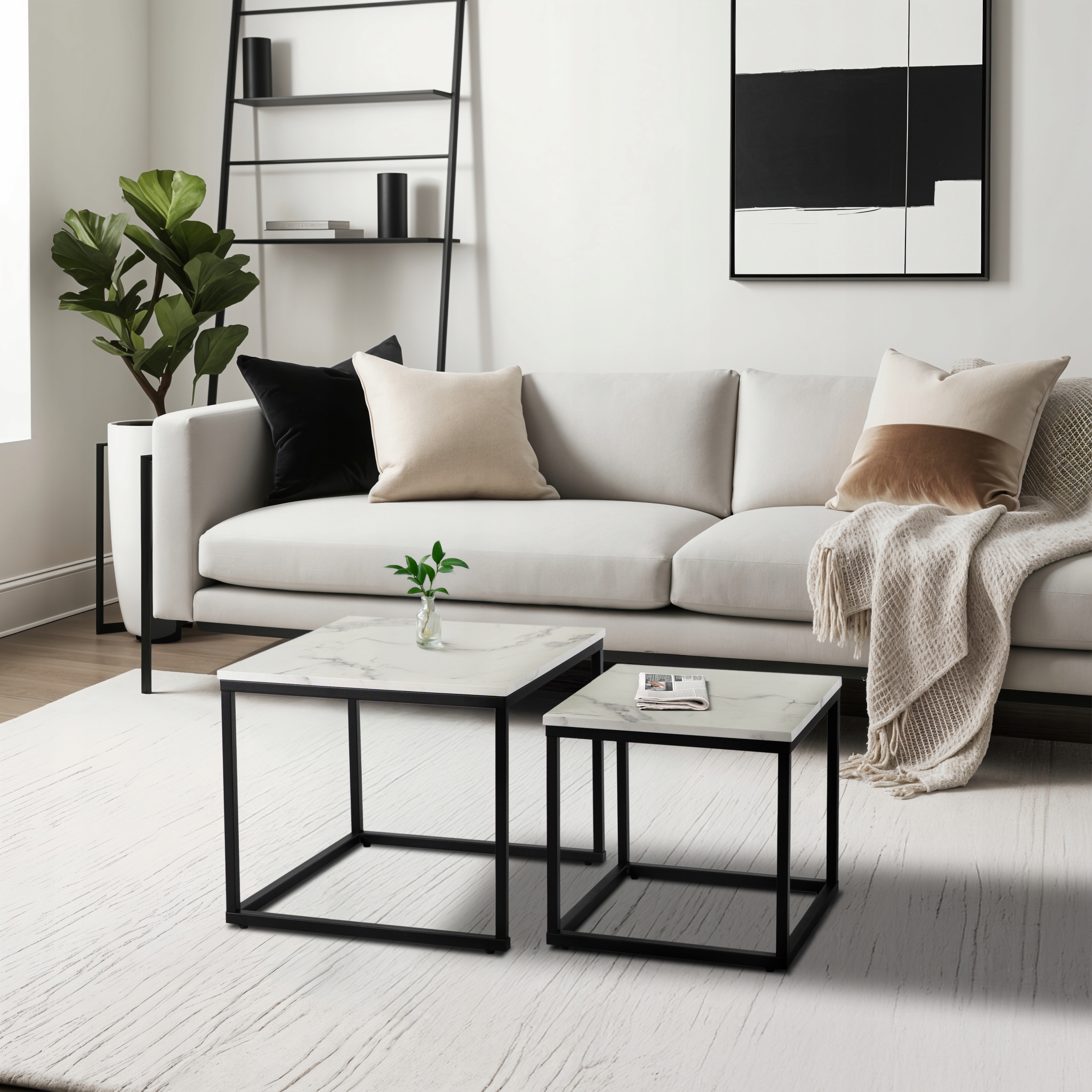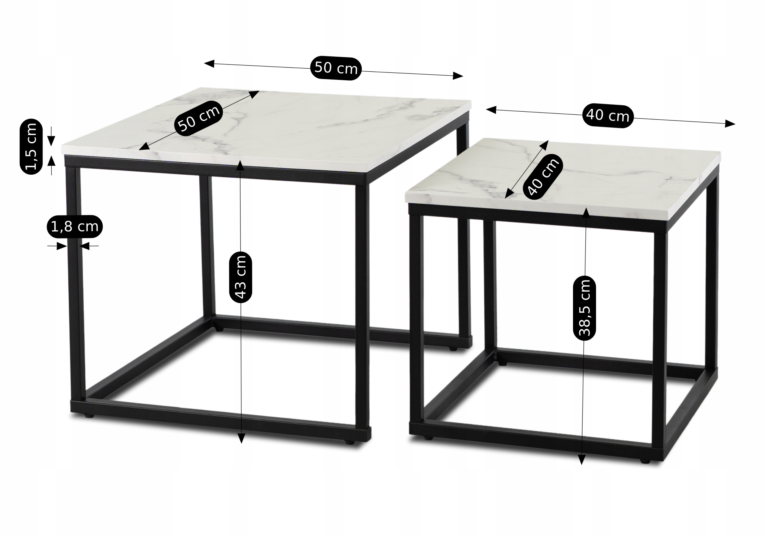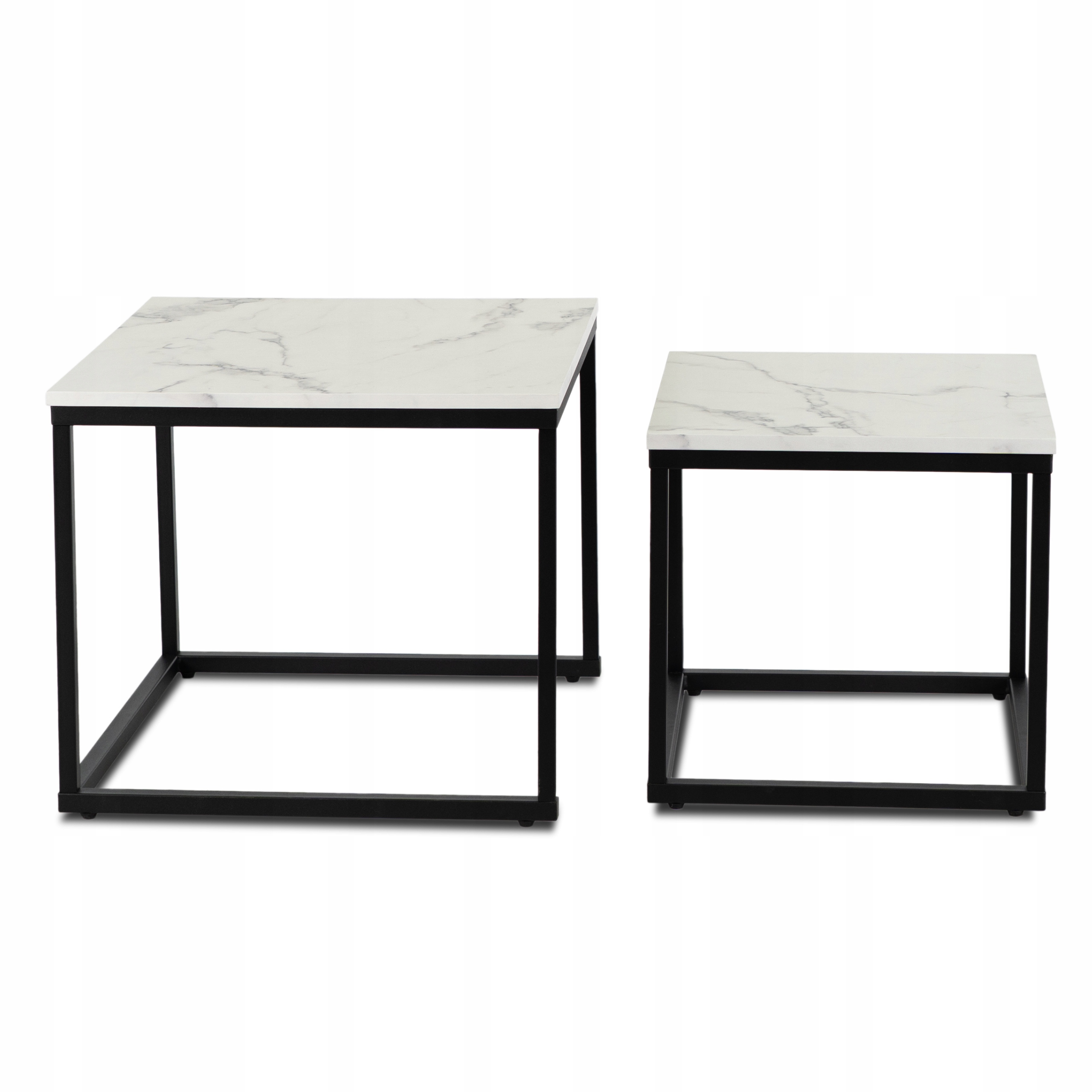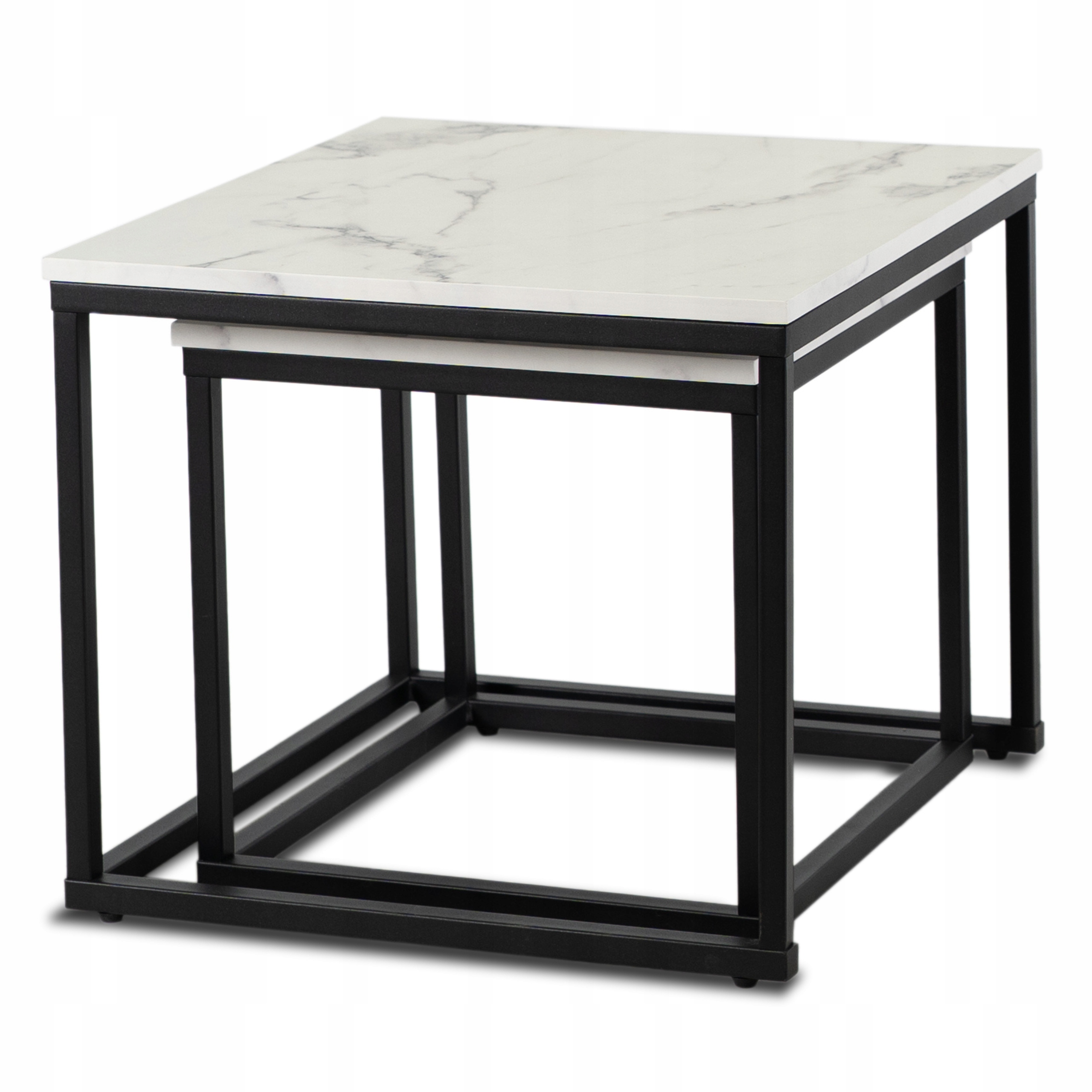 - Zestaw stolików kawowych 2w1 ORI kolor biały marmur - czarny mat