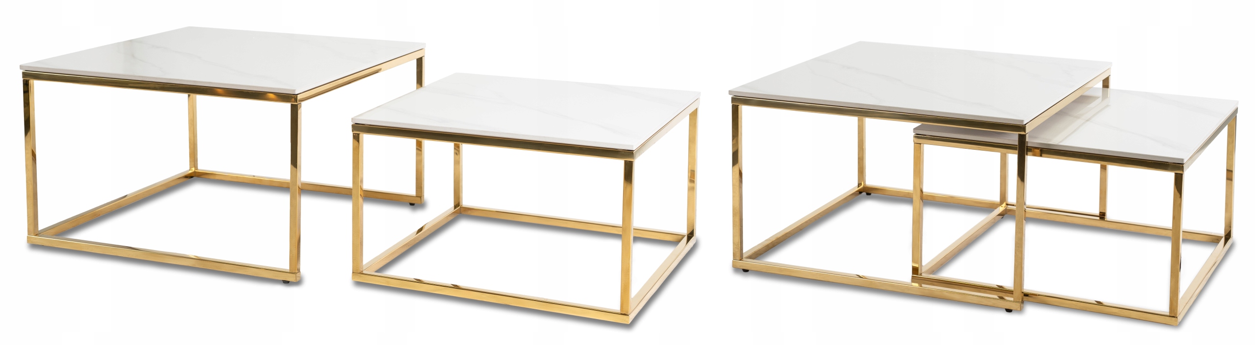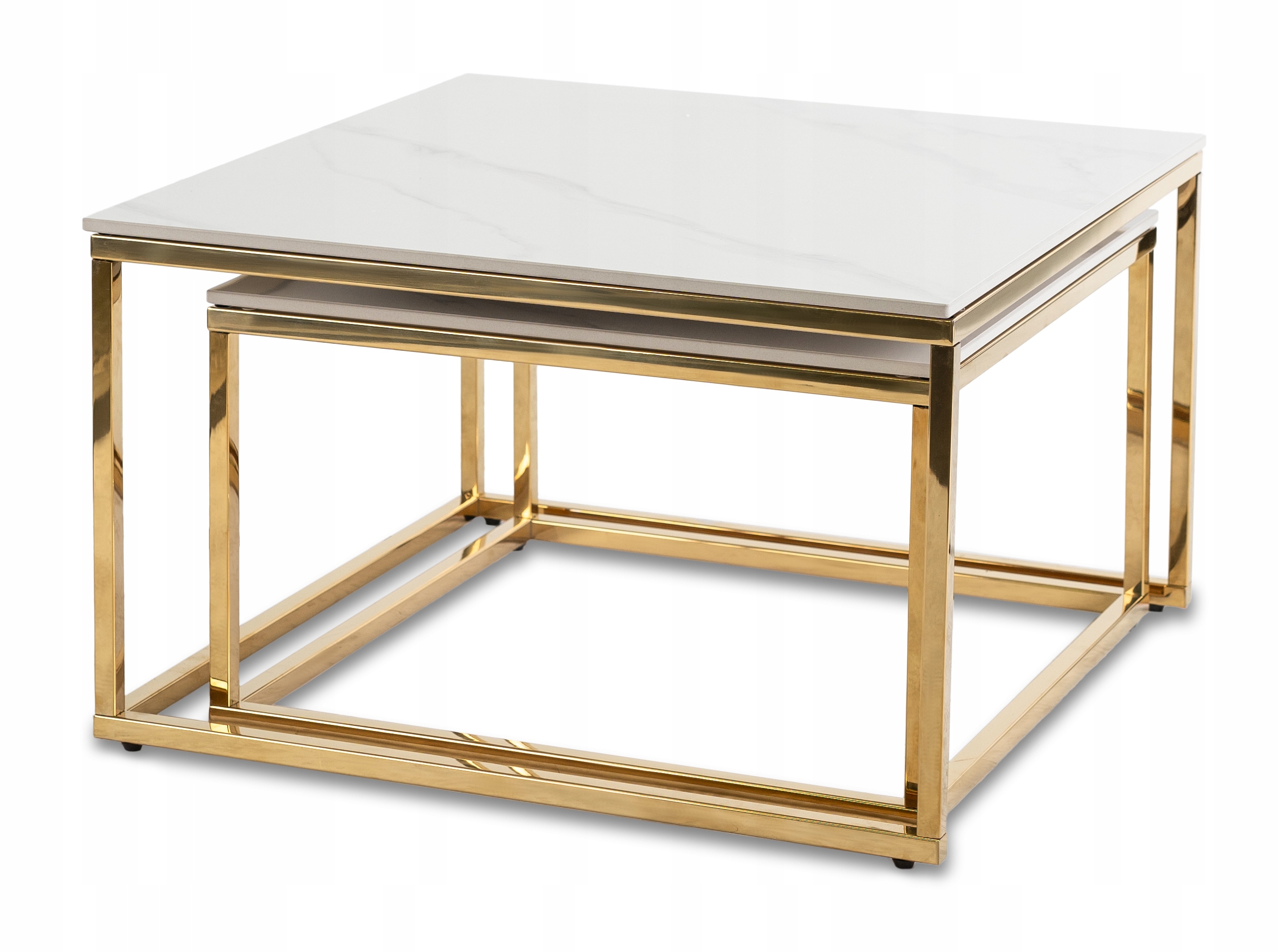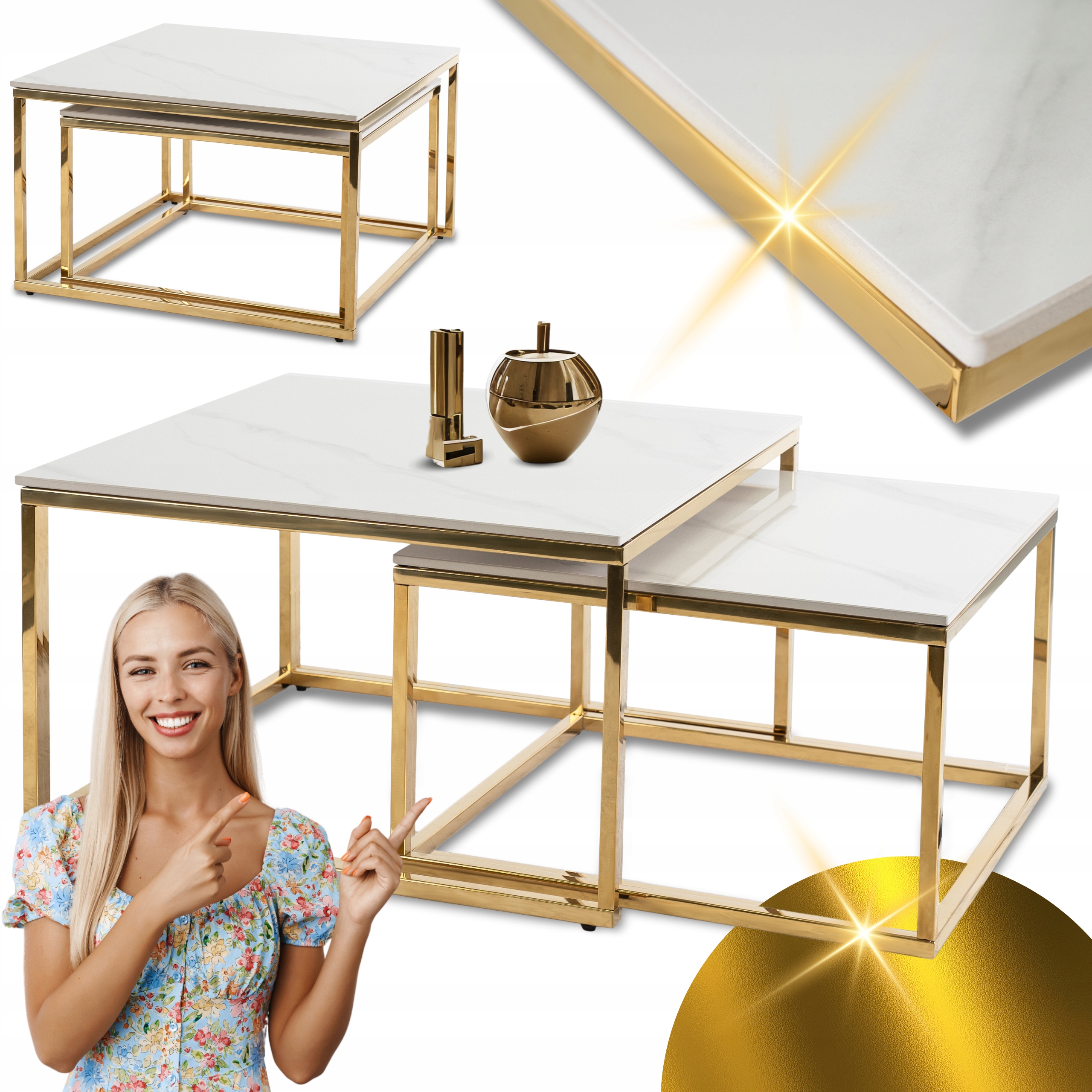 - Zestaw stolików kawowych TENOR kolor biały marmur - złoty