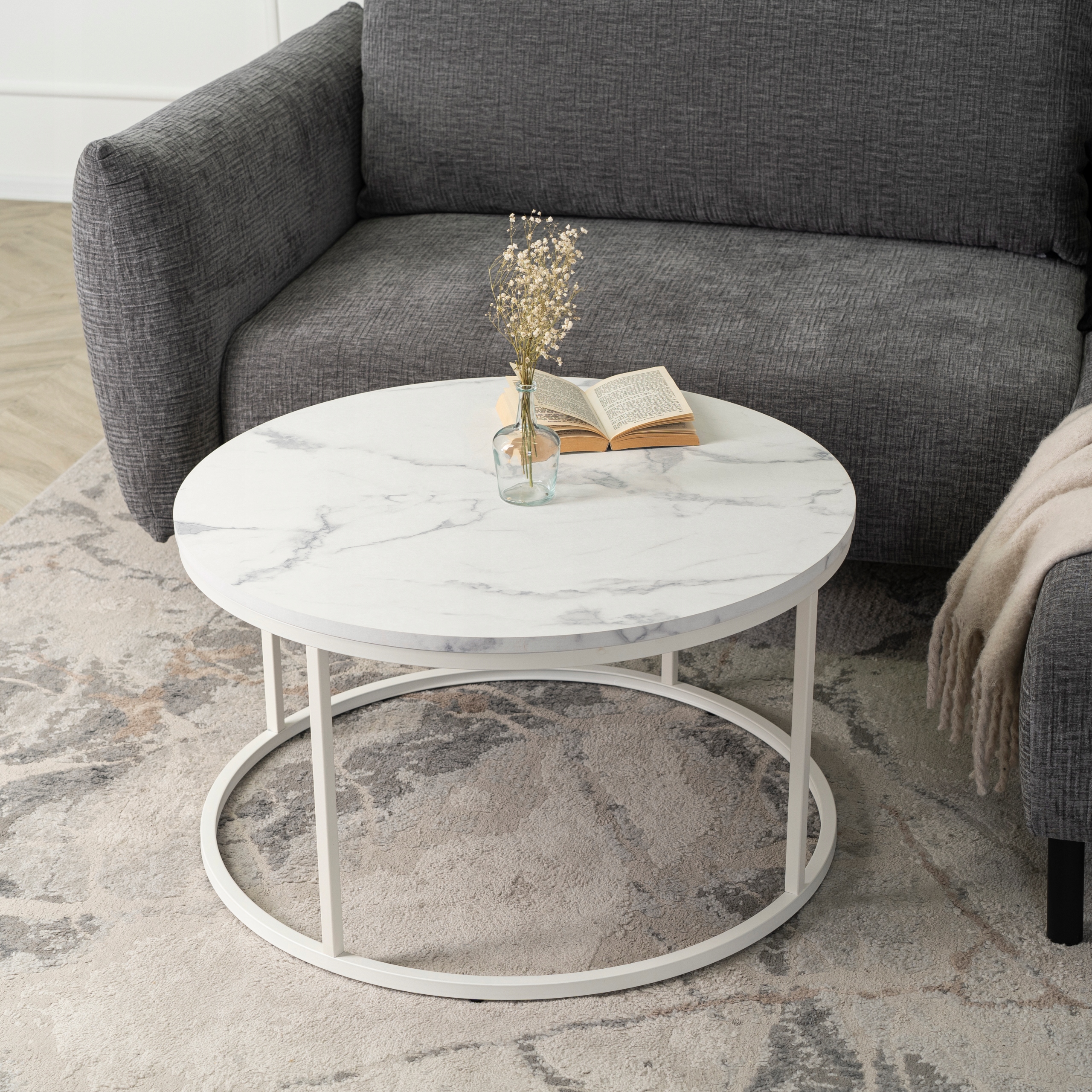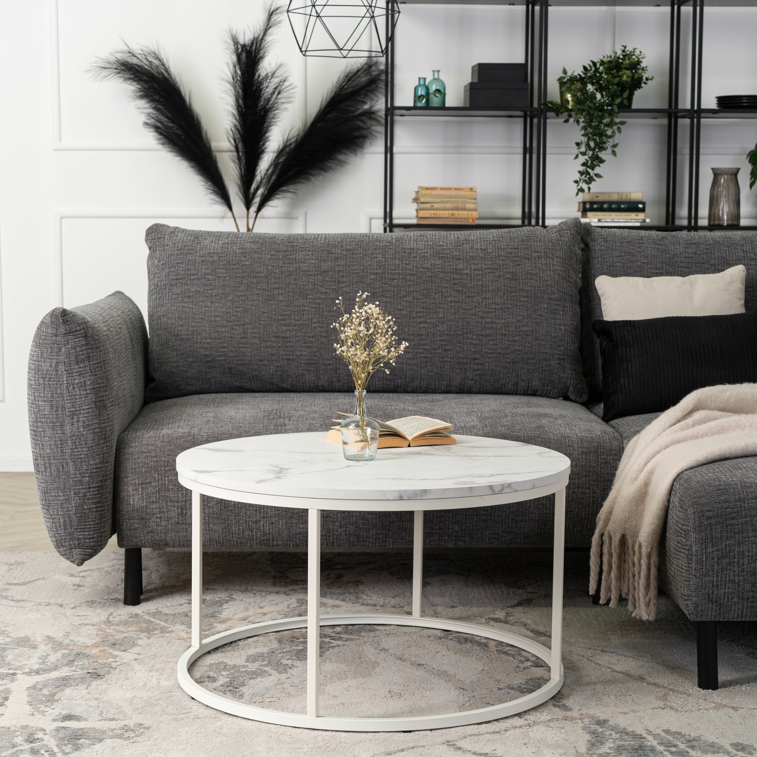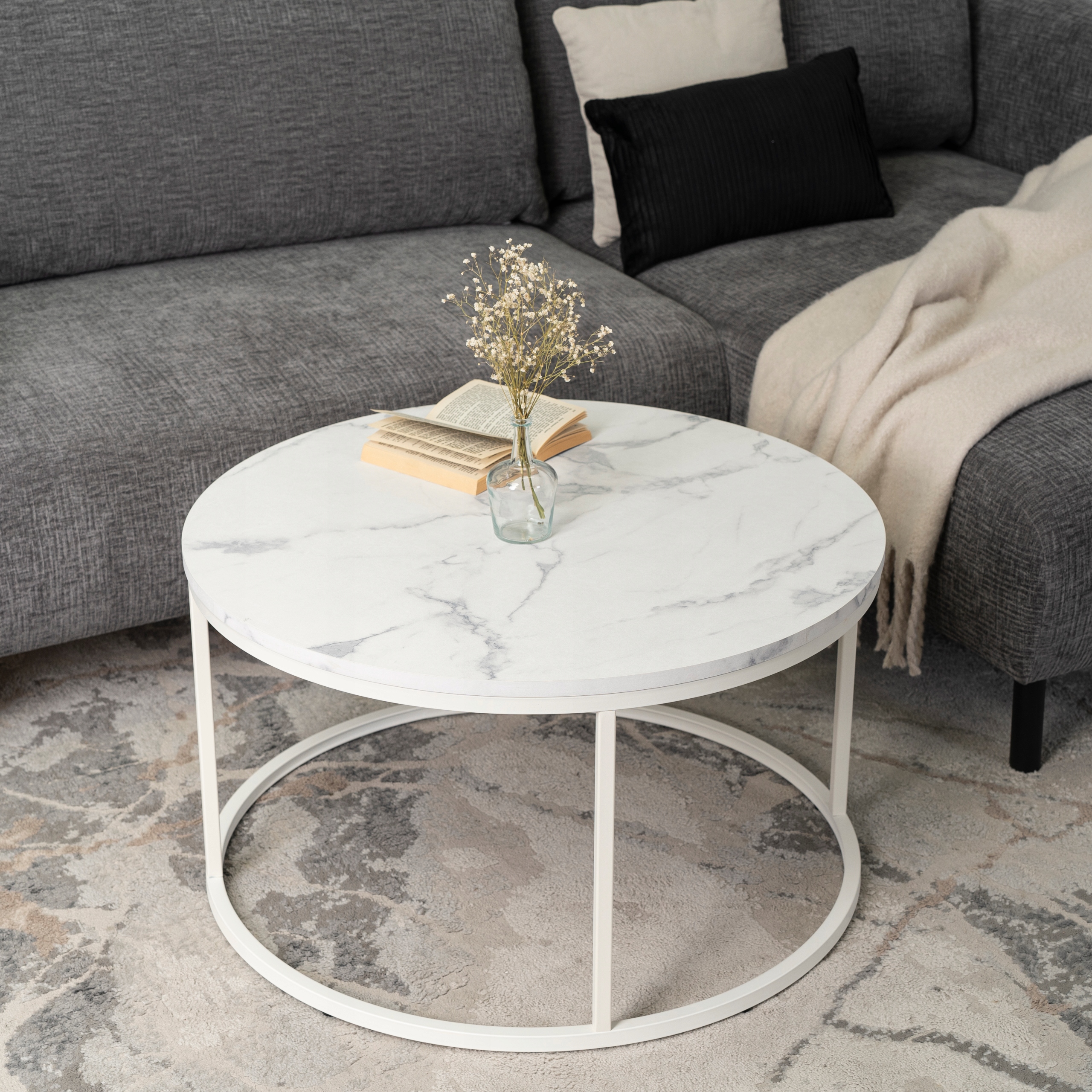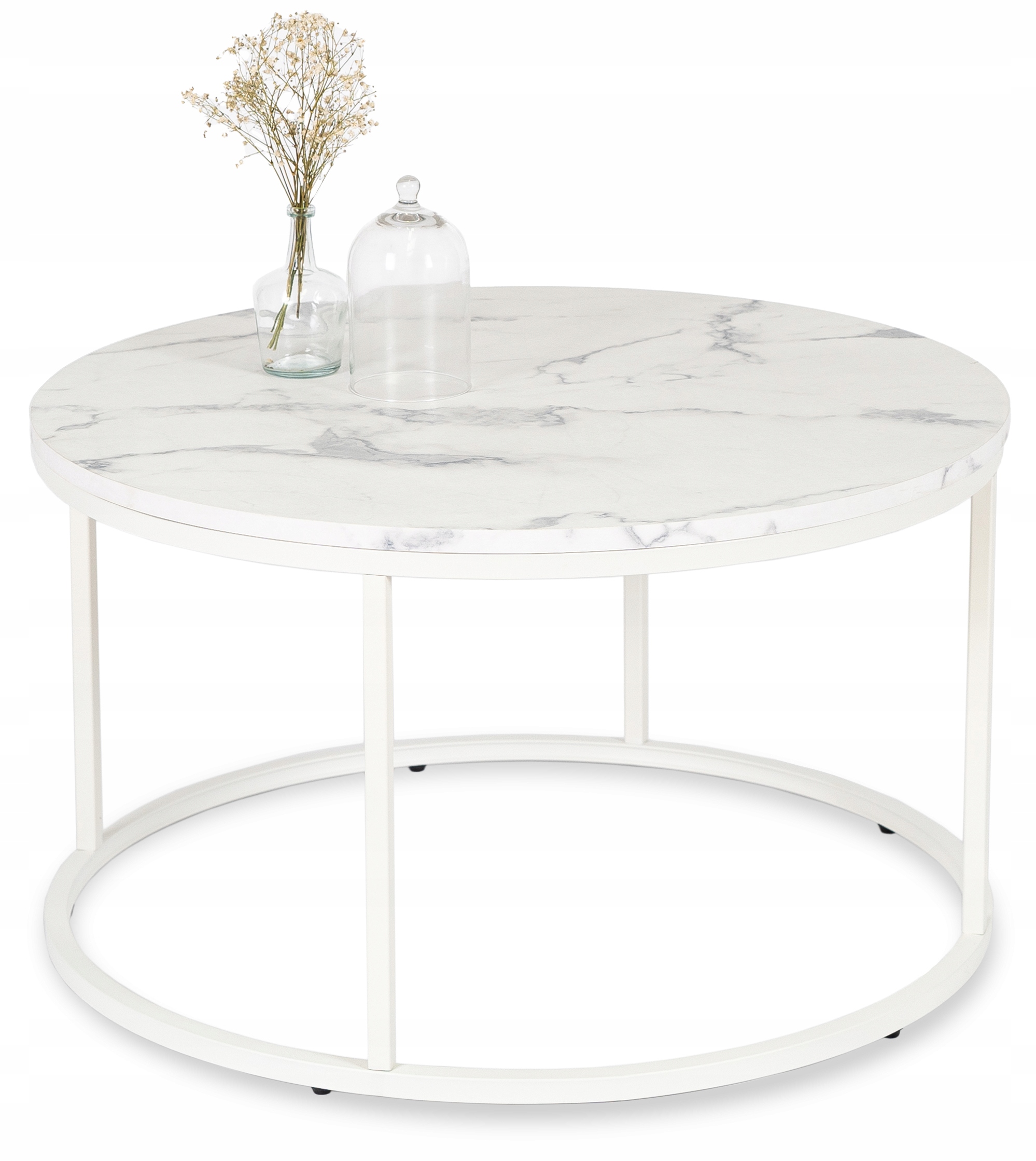 Stolik Kawowy Okrągły Biały Marmur Duży Ława Okrągła Biała Duża AGNES MAX ⭐⭐⭐⭐⭐