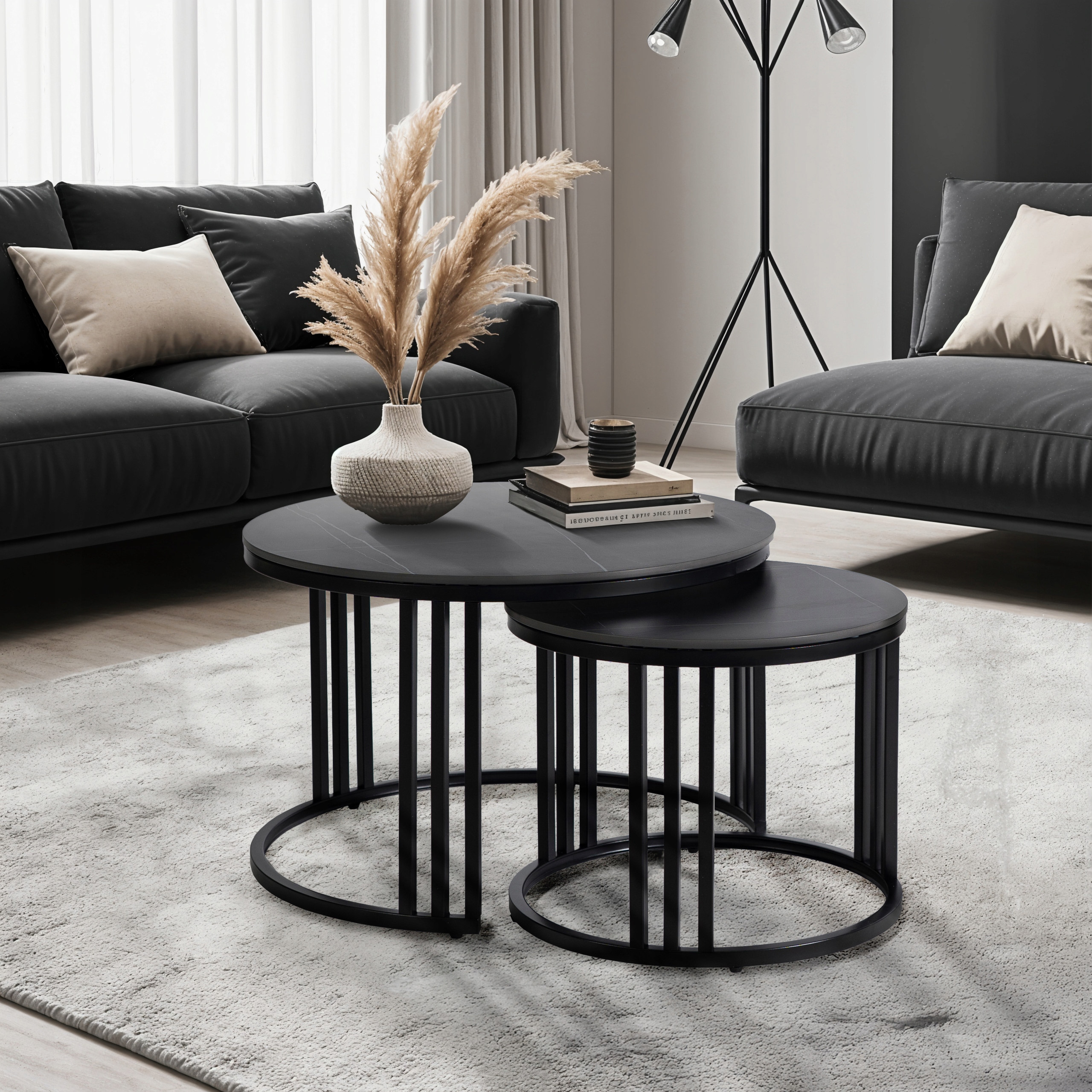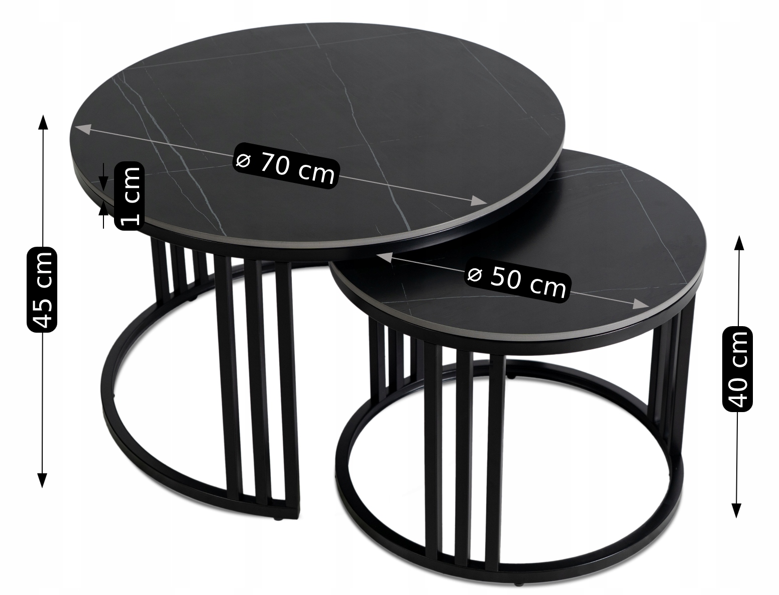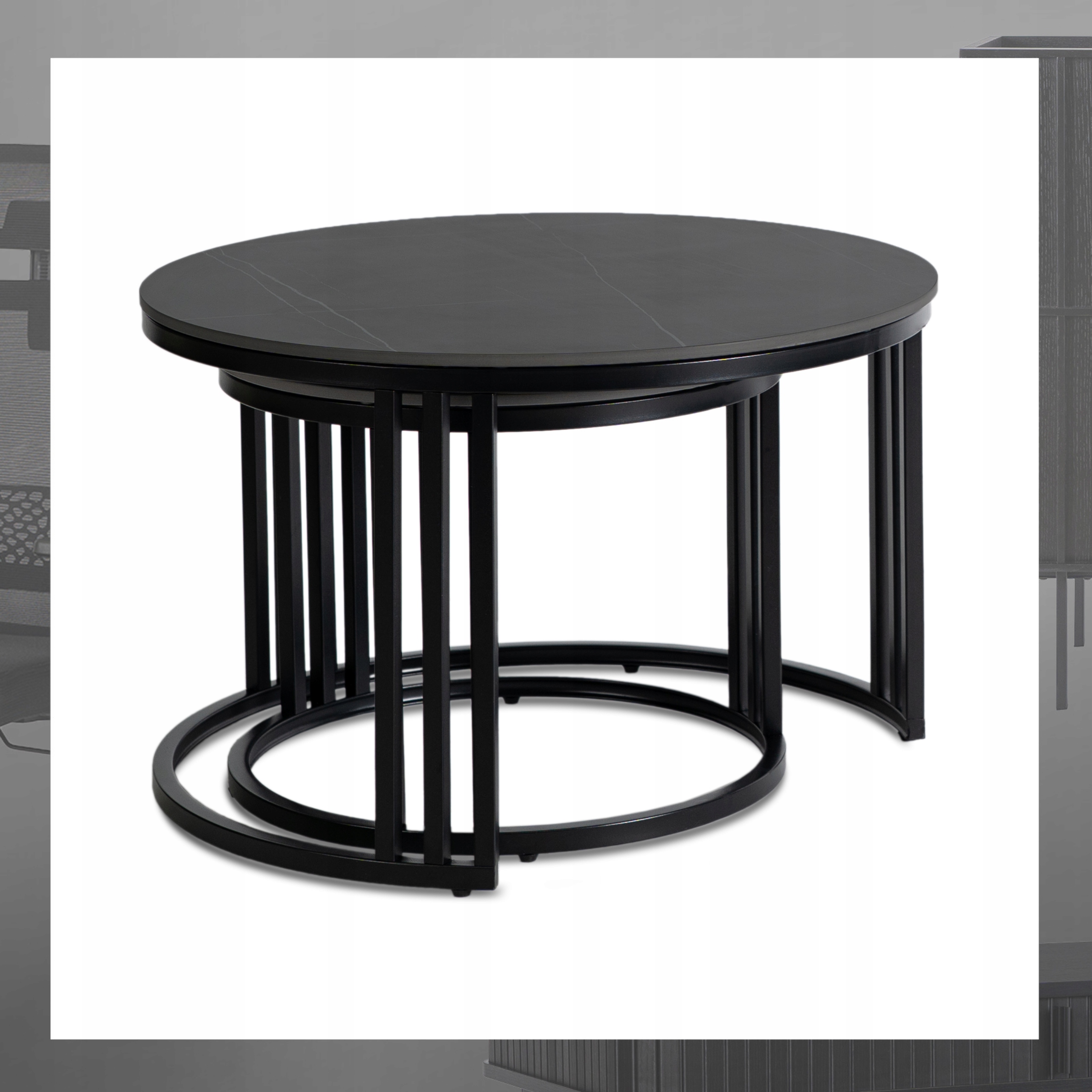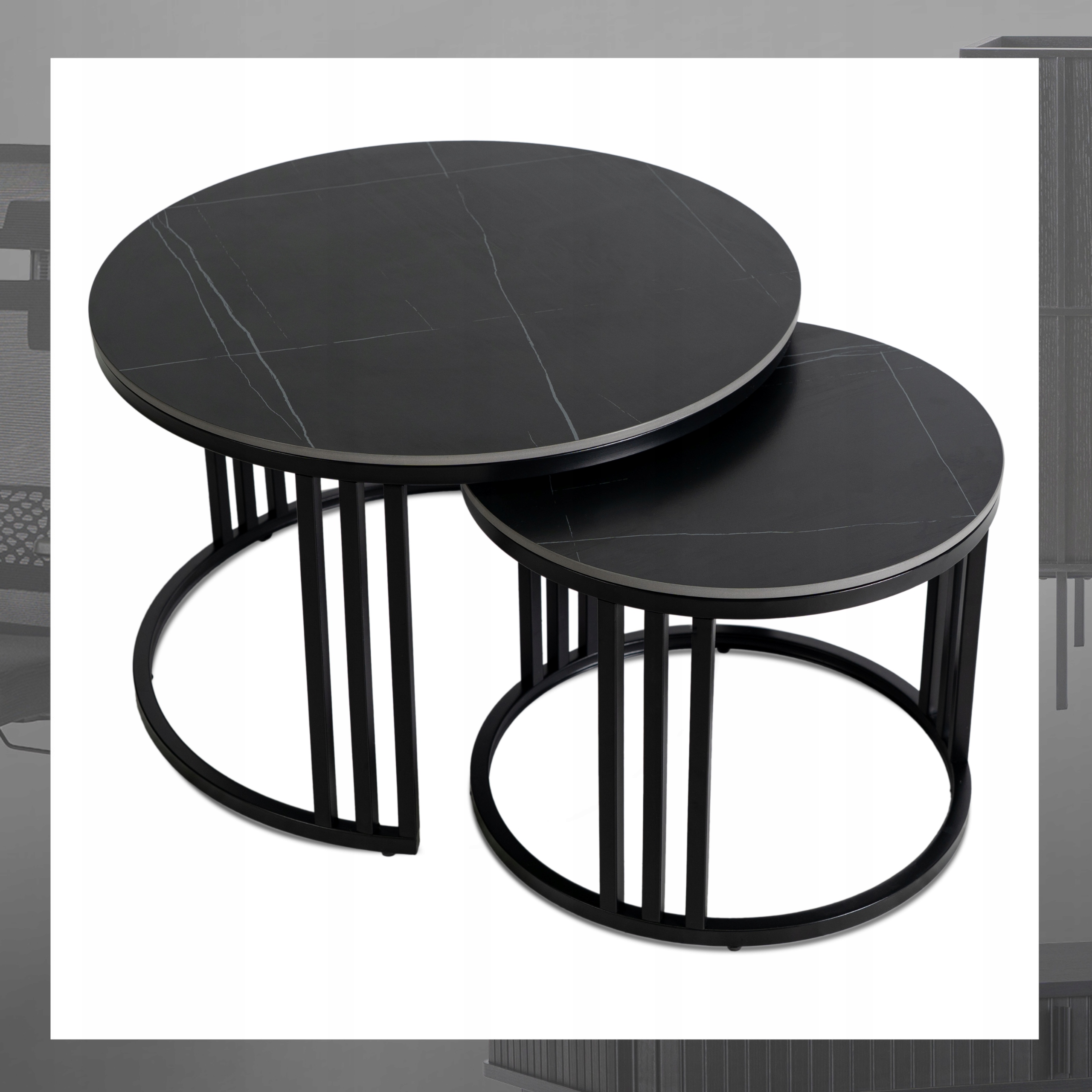 - Zestaw stolików kawowych 2w1 JERRY kolor czarny marmur - czarny mat