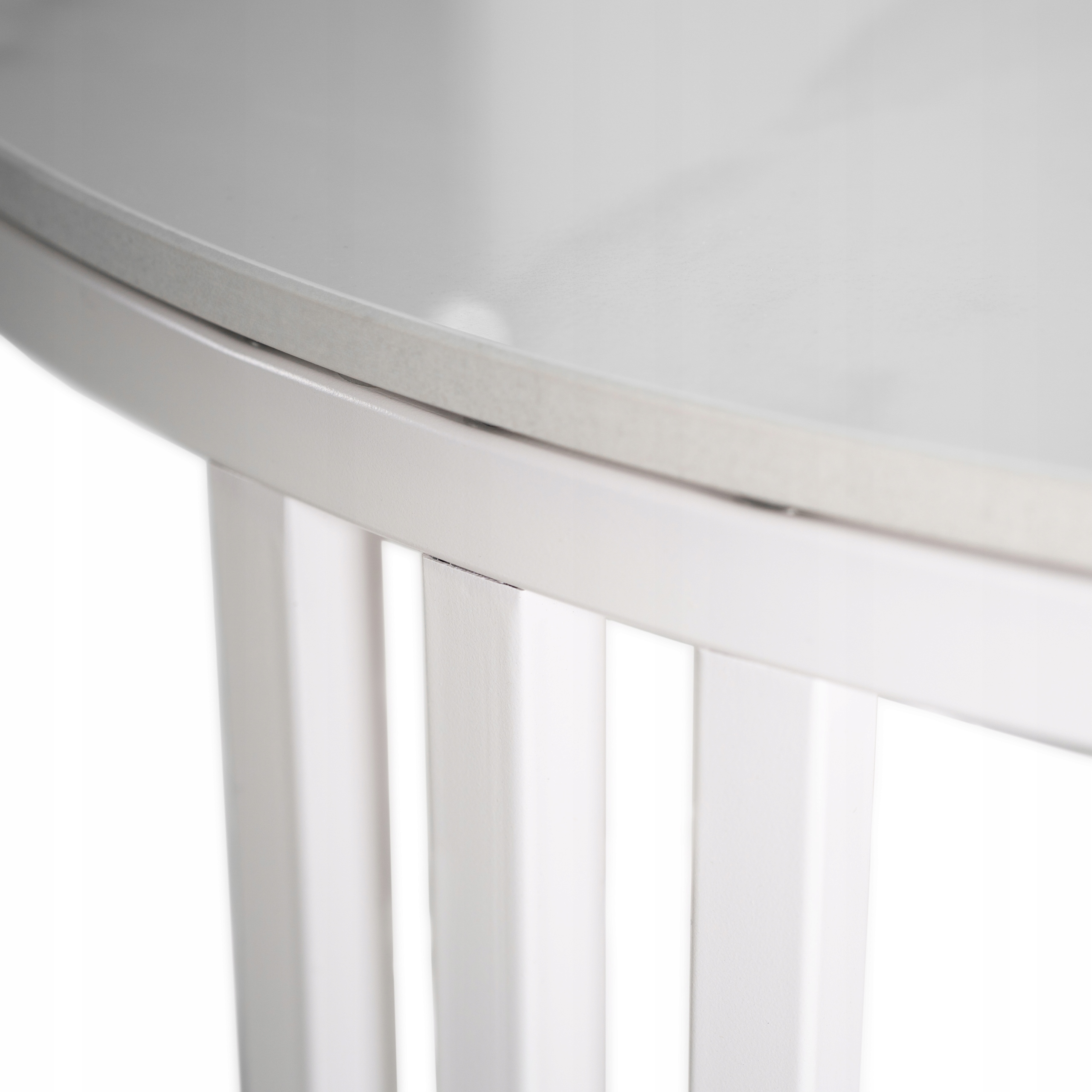 ⭐ Blat stolika wykonany jest z wysokiej jakości płyty ceramicznej stylizowanej na marmur.