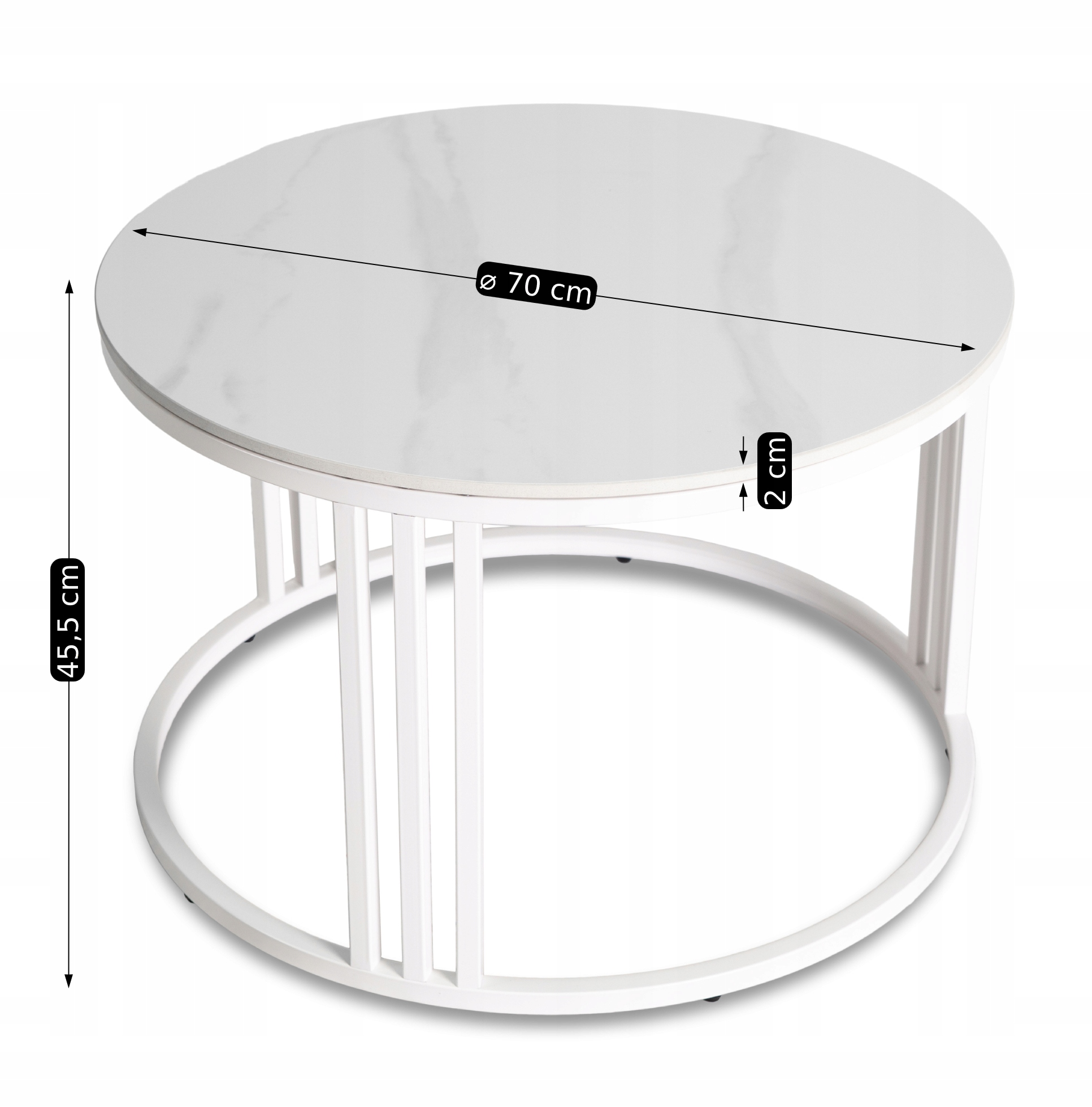 Stolik Kawowy Okrągły Ceramiczny Ława Okrągła Marmur Biały Połysk KORIN ⭐⭐⭐⭐⭐