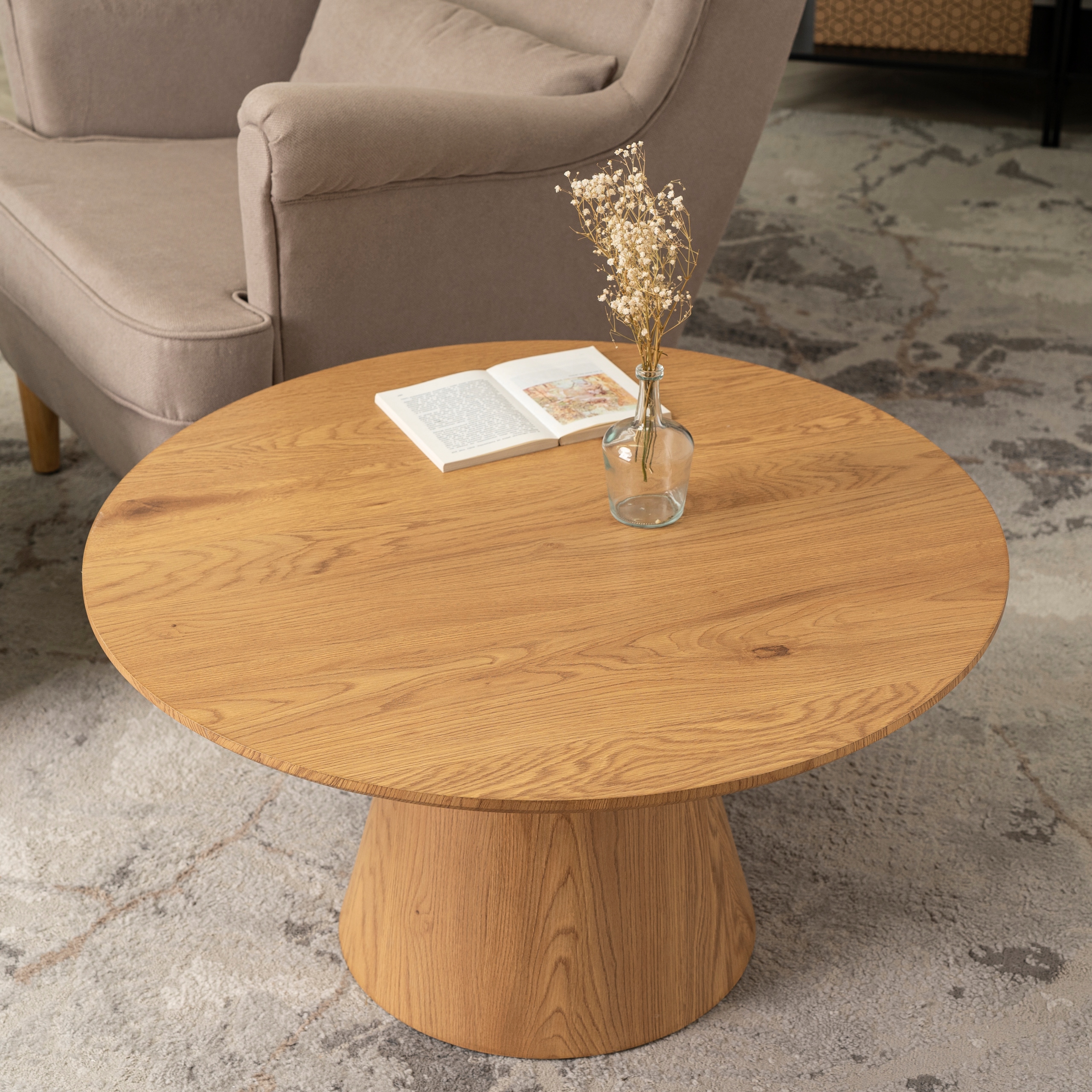 Stolik Kawowy Okrągły Dąb Duży Loft Nowoczesny Duża Okrągła Ława CARLY MAX ⭐⭐⭐⭐⭐