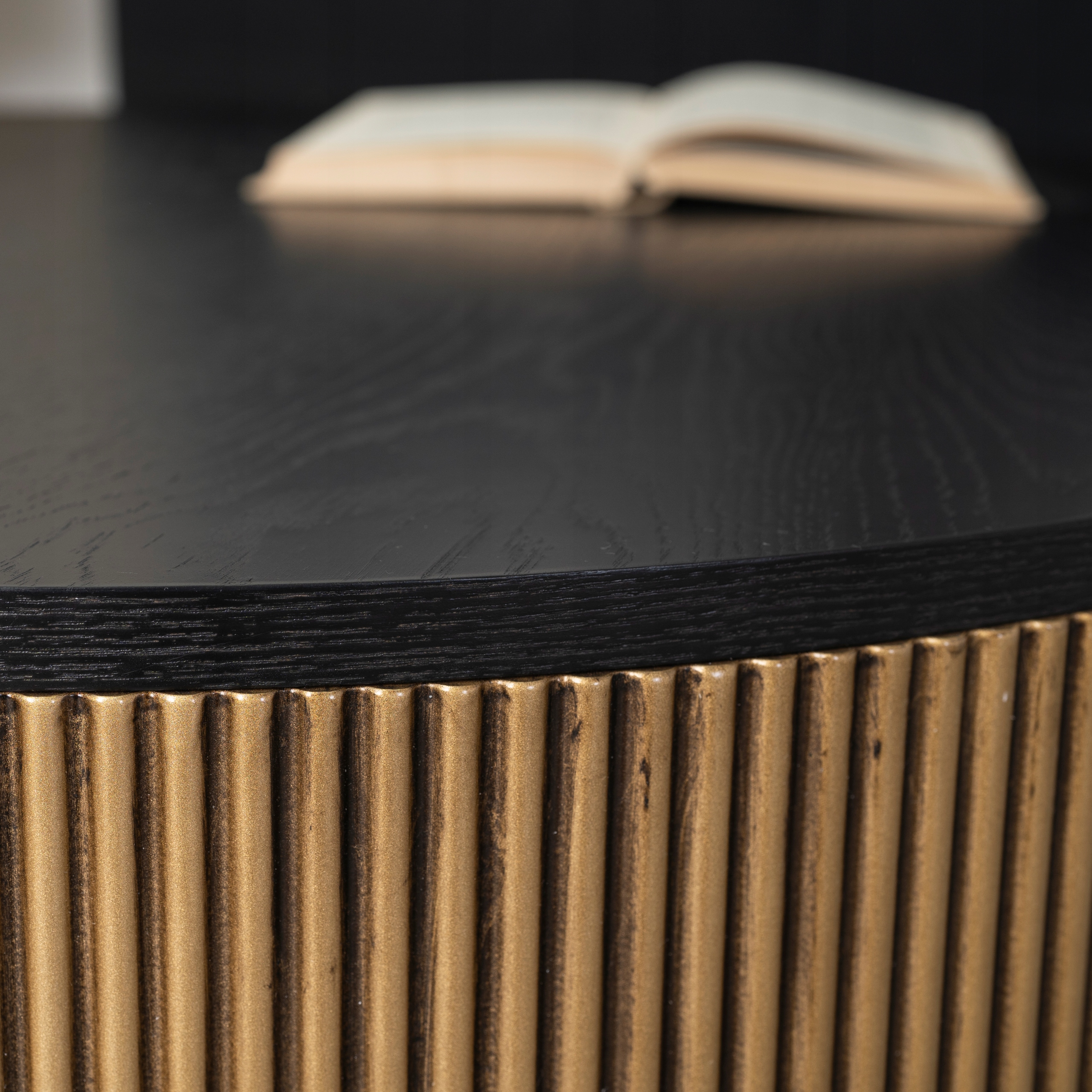 Ława posiada okrągłą podstawę z lamelami w złoto-czarnym kolorze, która prezentuje się fantastycznie. Zapewnia też znakomitą stabilność.