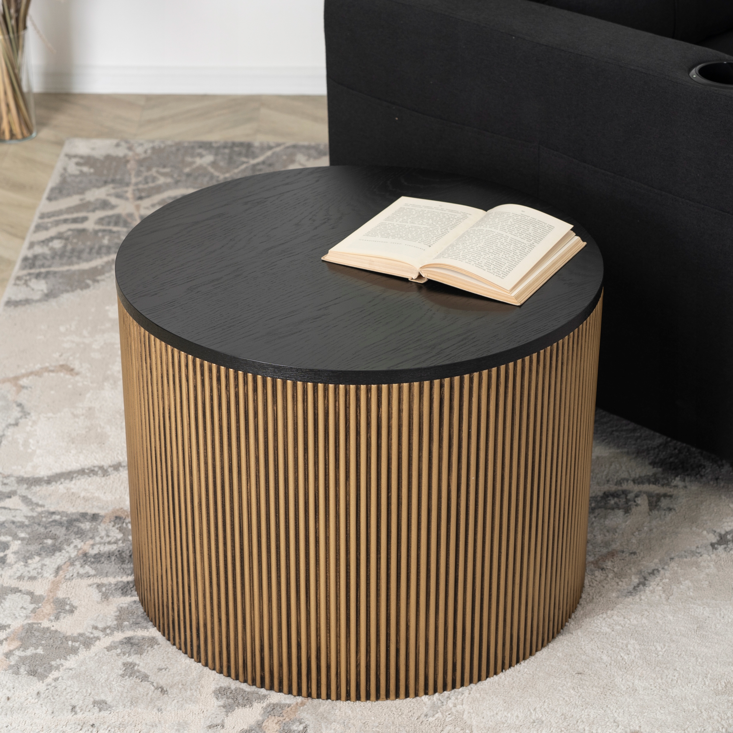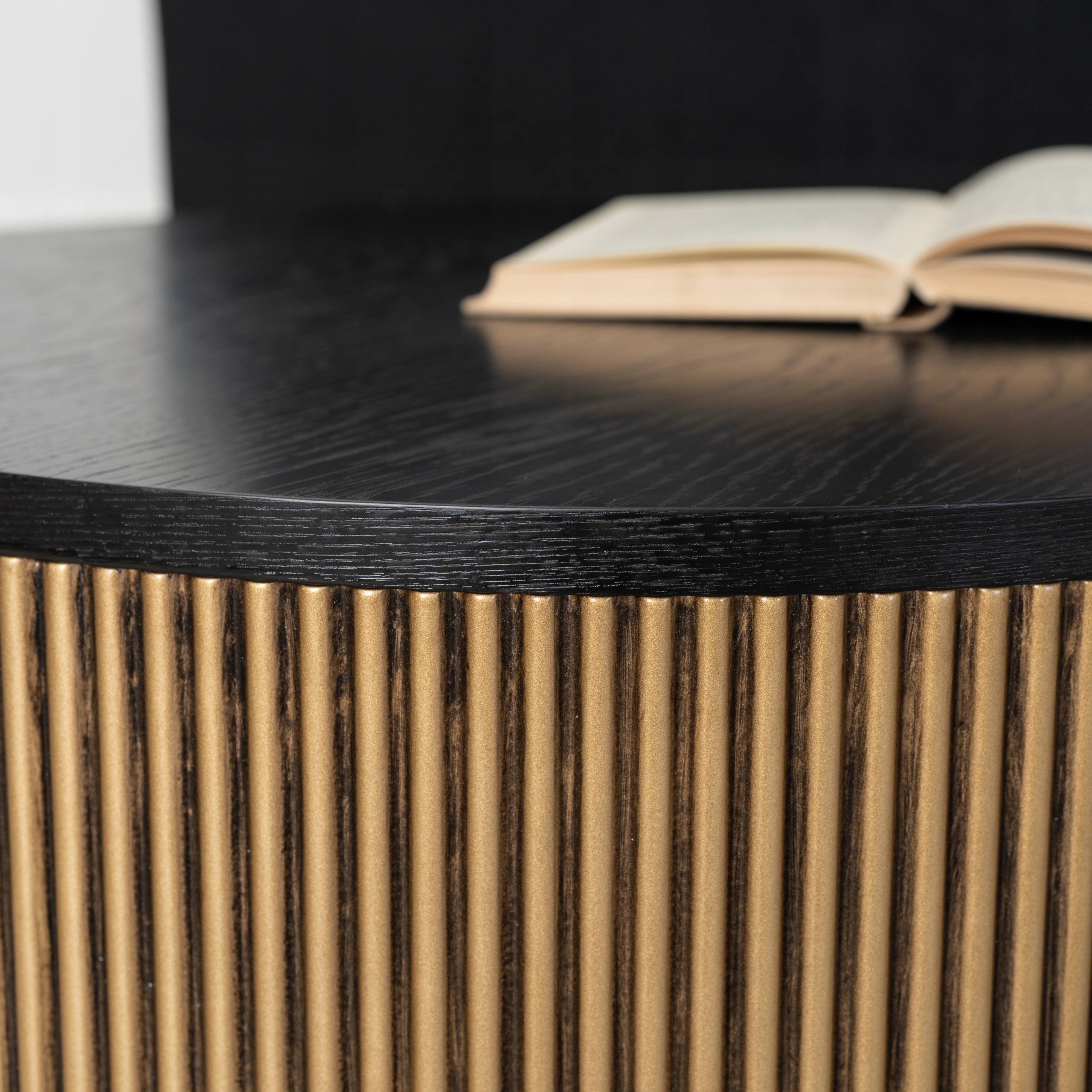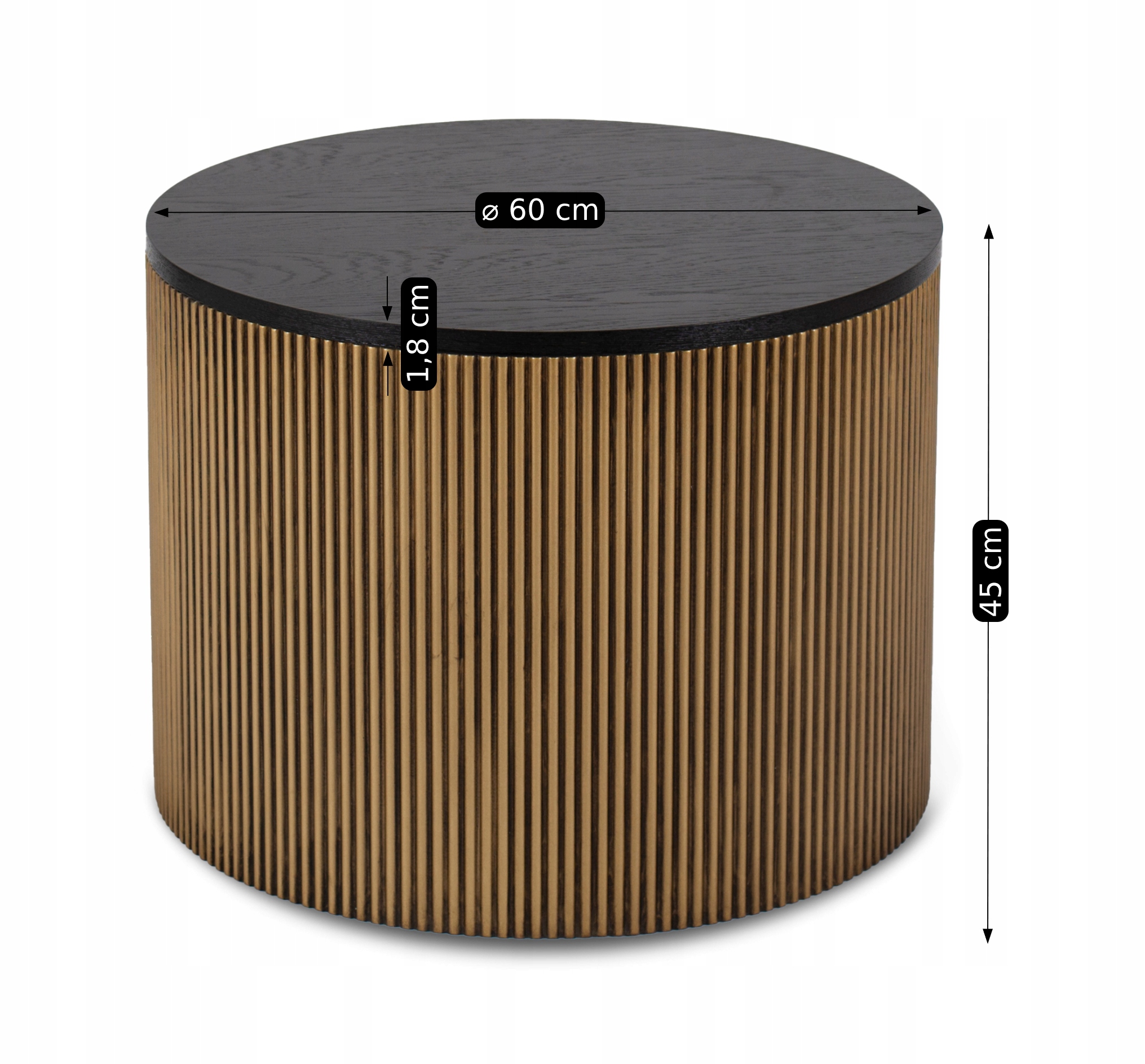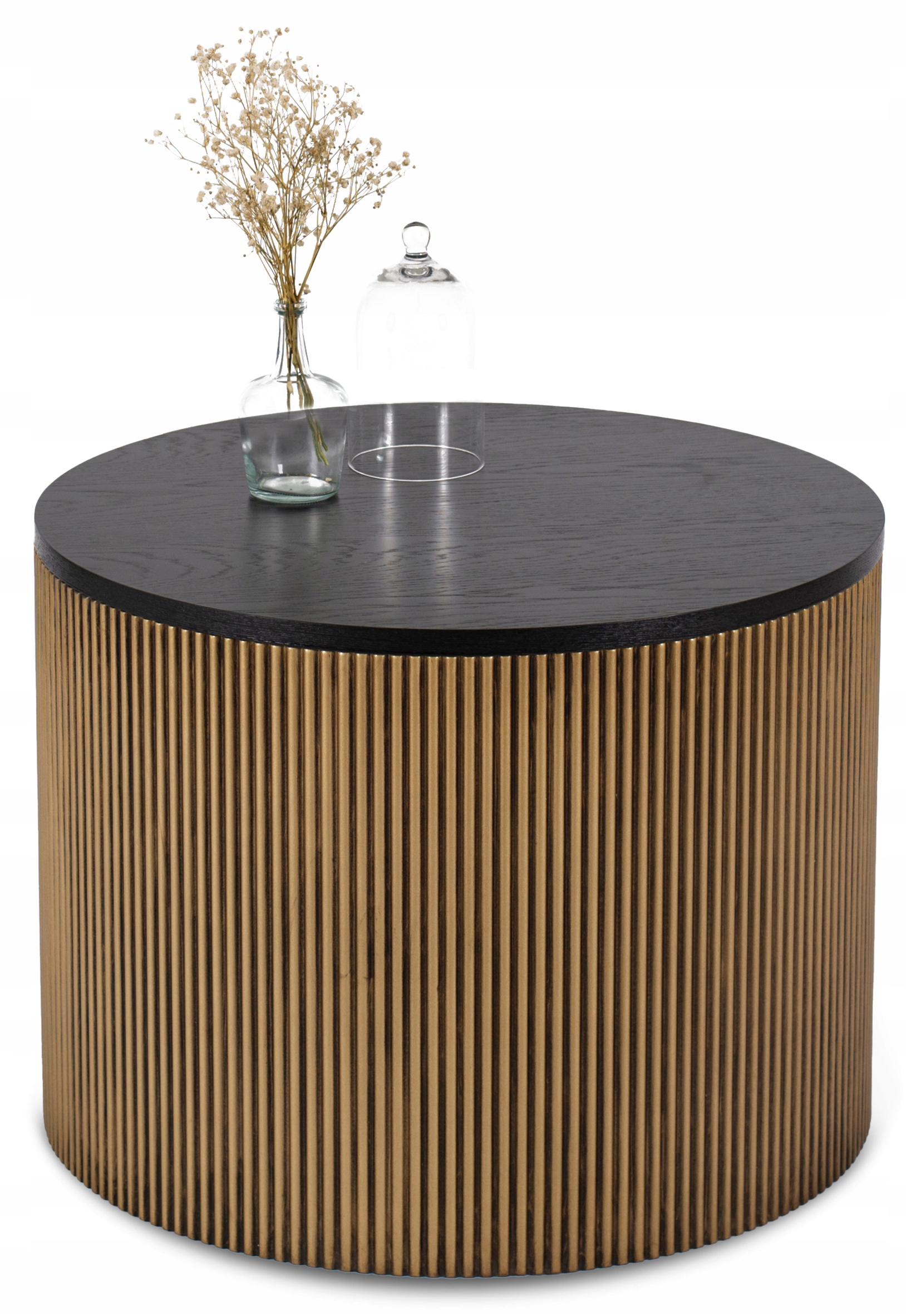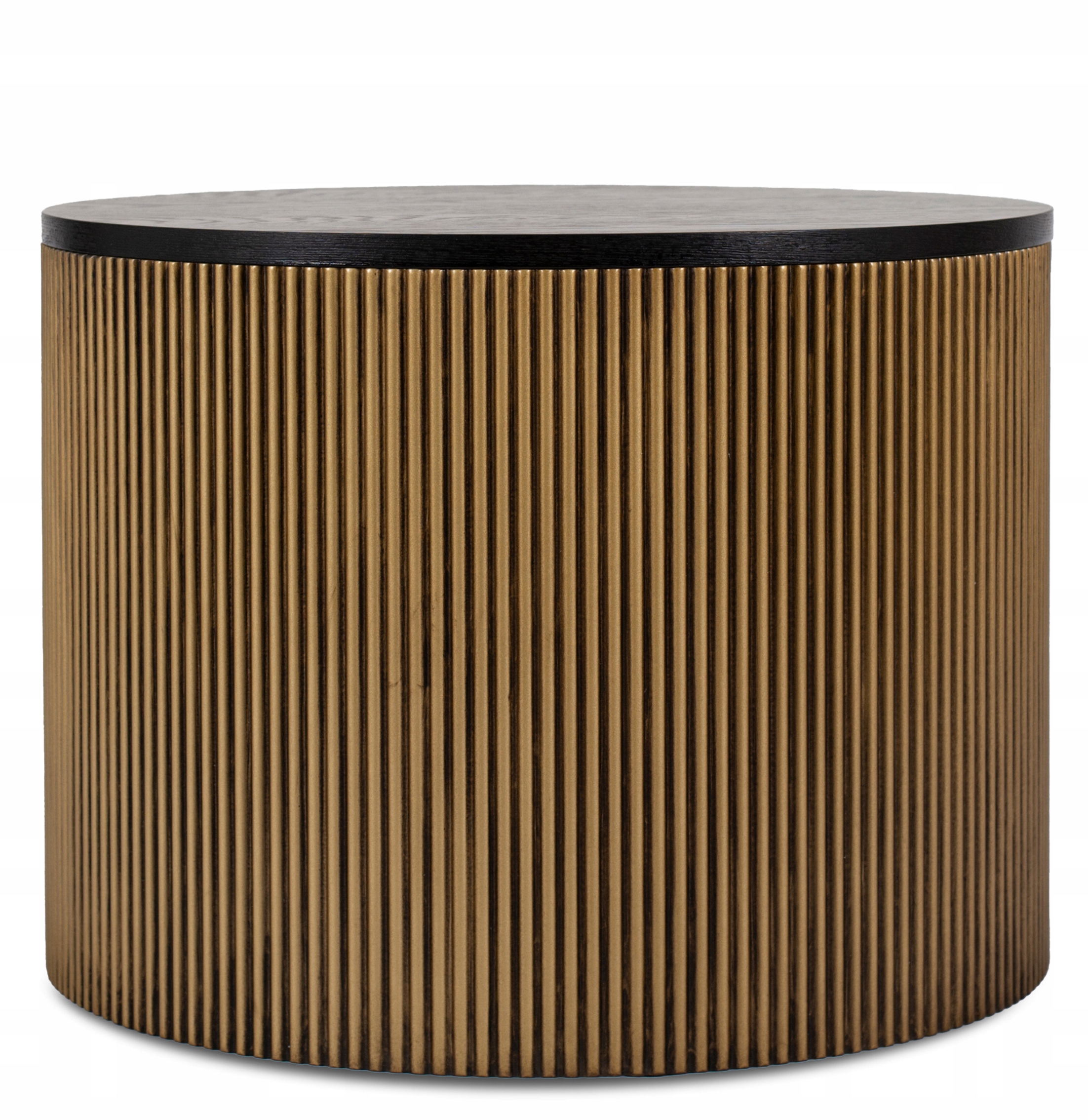 Ława posiada okrągłą podstawę z lamelami w złoto-czarnym kolorze, która prezentuje się fantastycznie. Zapewnia też znakomitą stabilność.