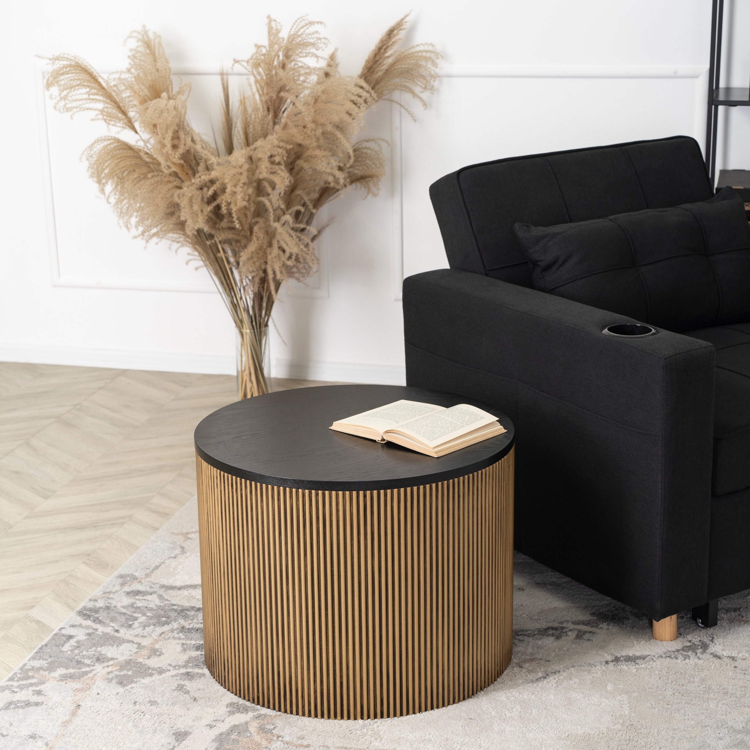 Stolik Kawowy Okrągły Ława Do Salonu Mała Loft Dębowa Czarny MIRACLE Ø60 ⭐⭐⭐⭐⭐