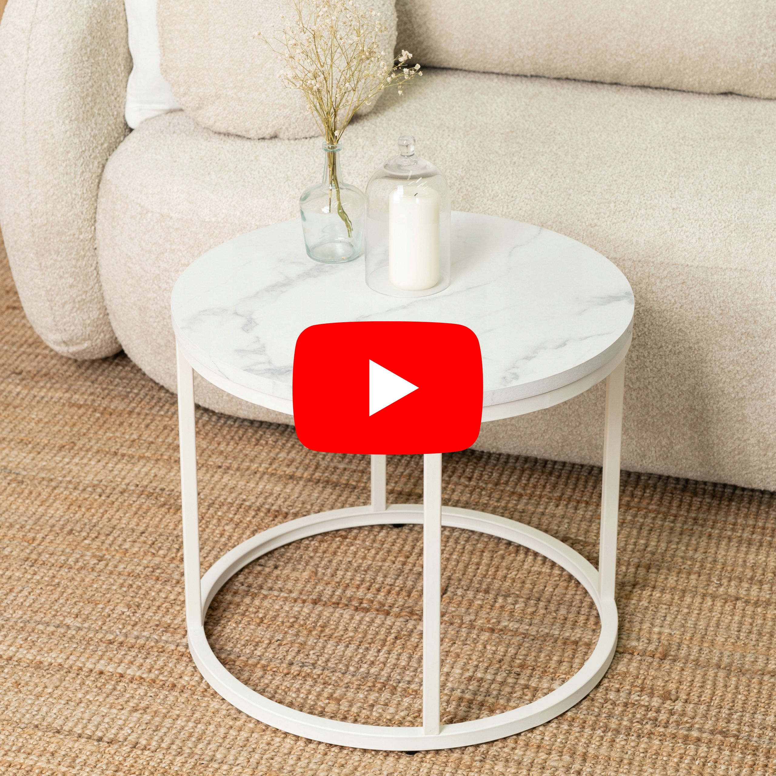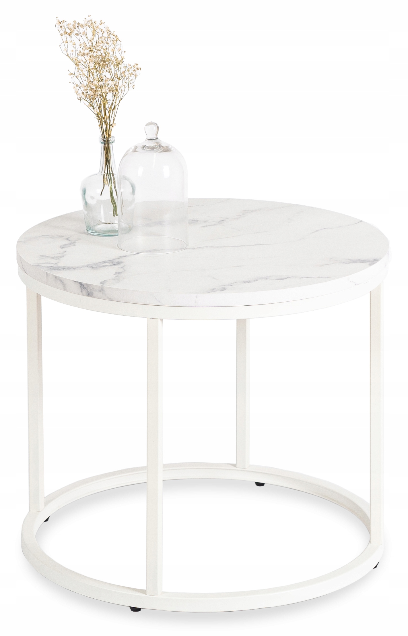 Stolik Kawowy Okrągły Loft Biały Marmur Mały Ława Okrągła Biała Mała AGNES ⭐⭐⭐⭐⭐