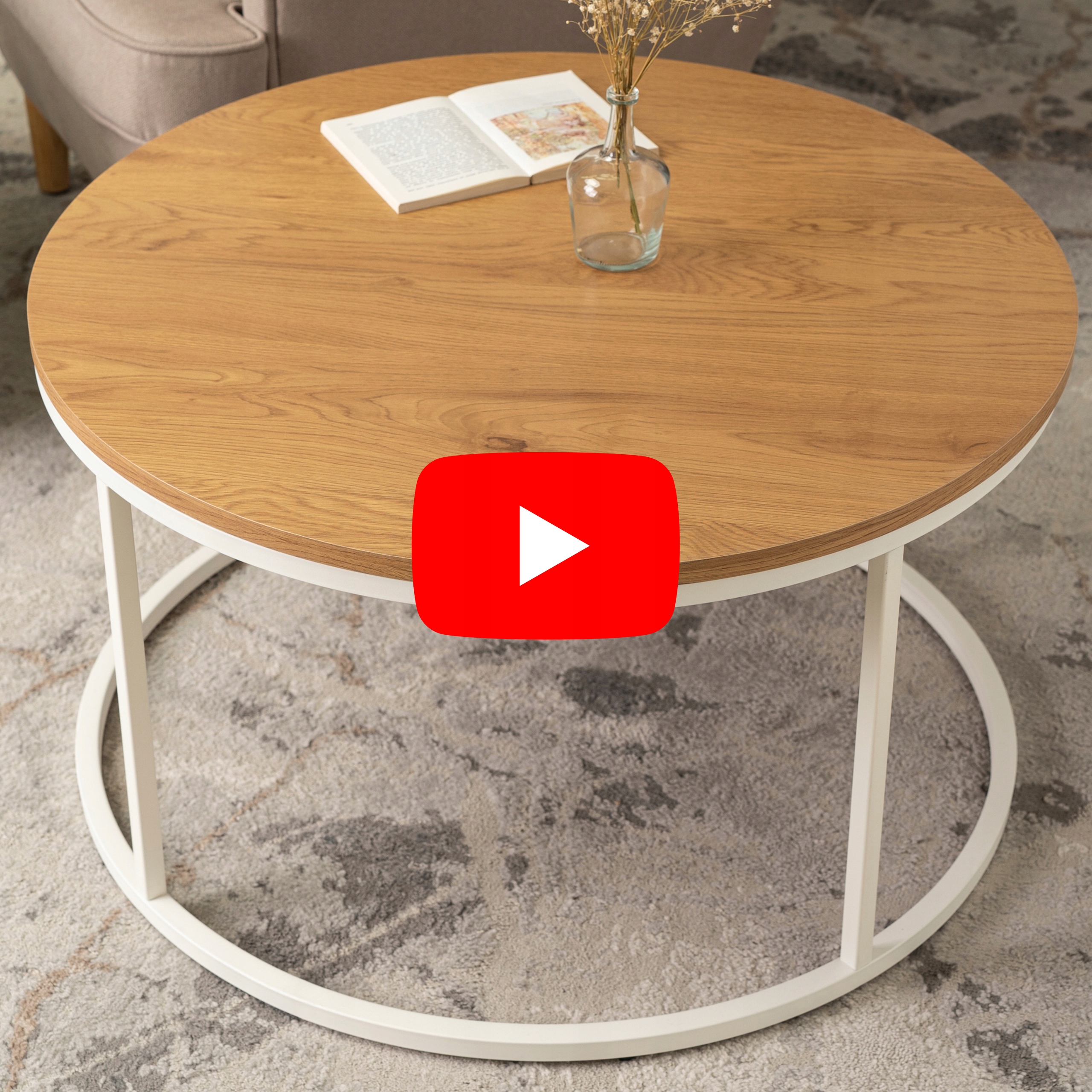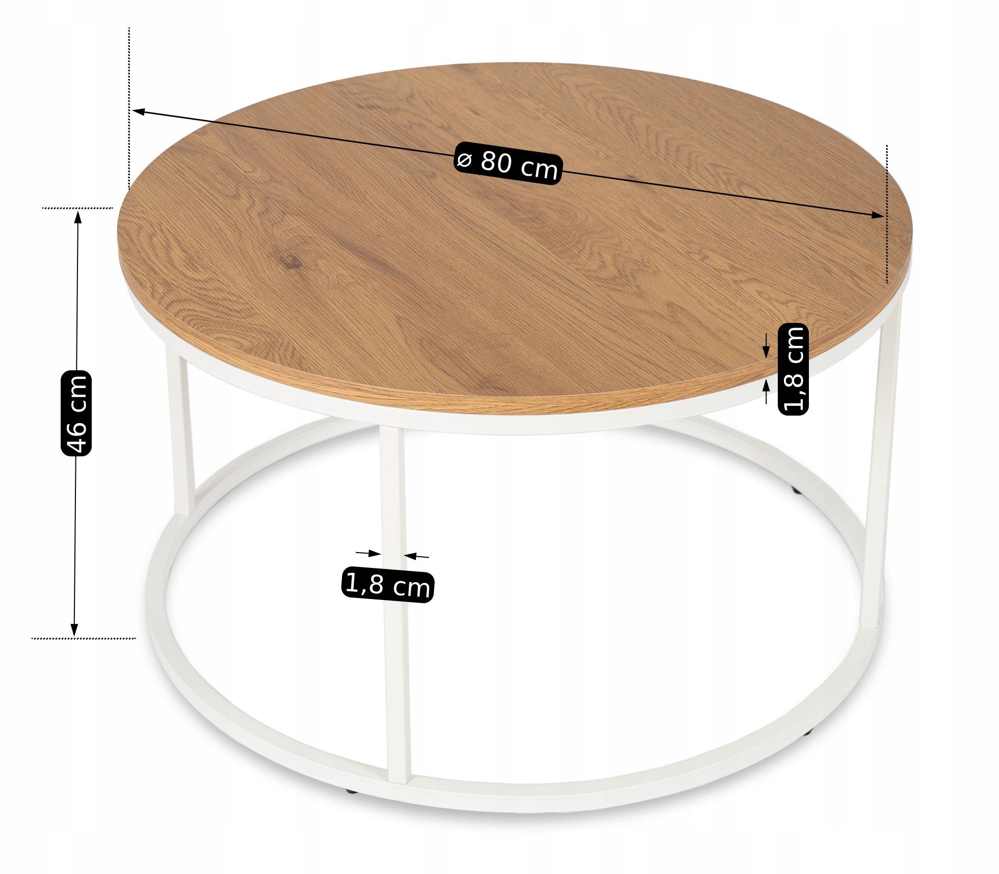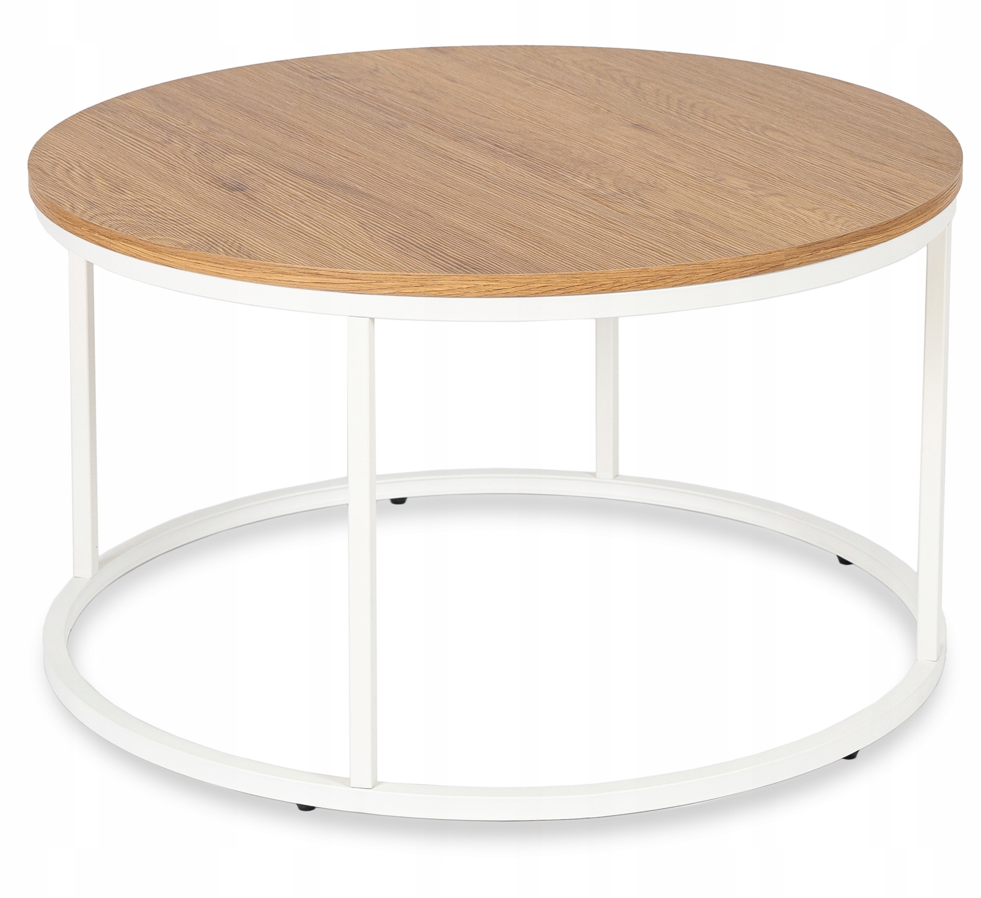 Stolik Kawowy Okrągły Loft Duży Ława Do Salonu Kanapy Dąb Biały ANN MAX ⭐⭐⭐⭐⭐