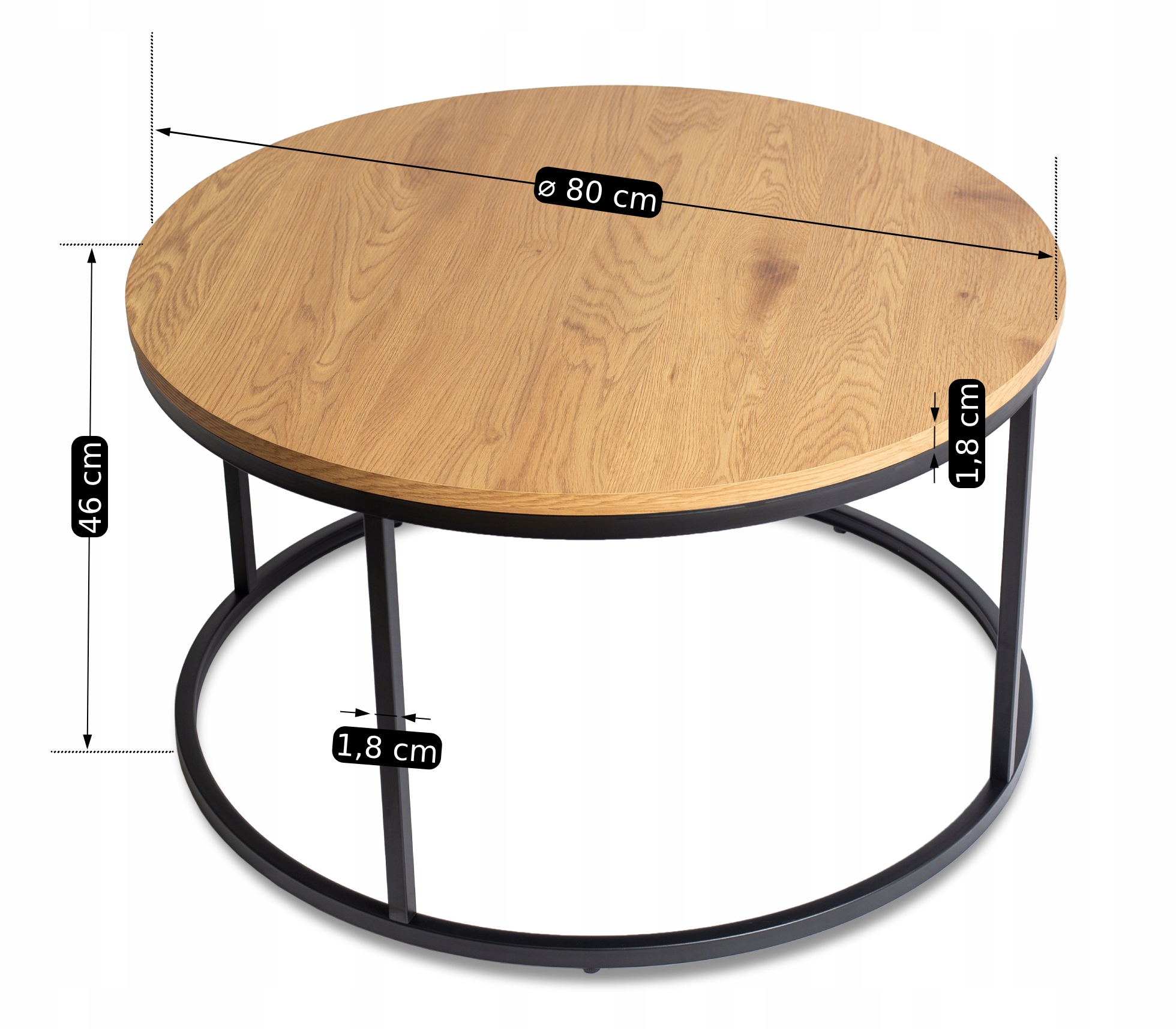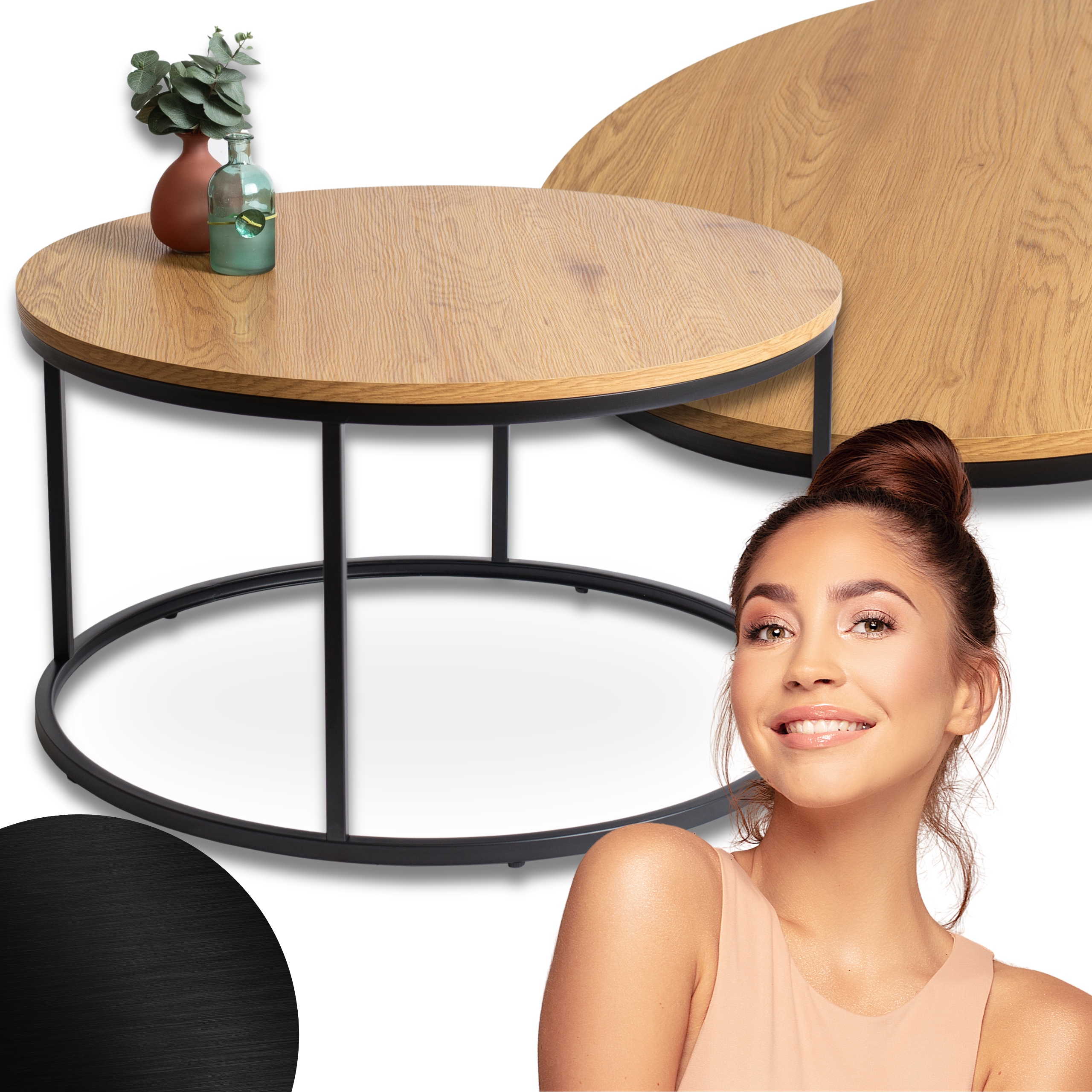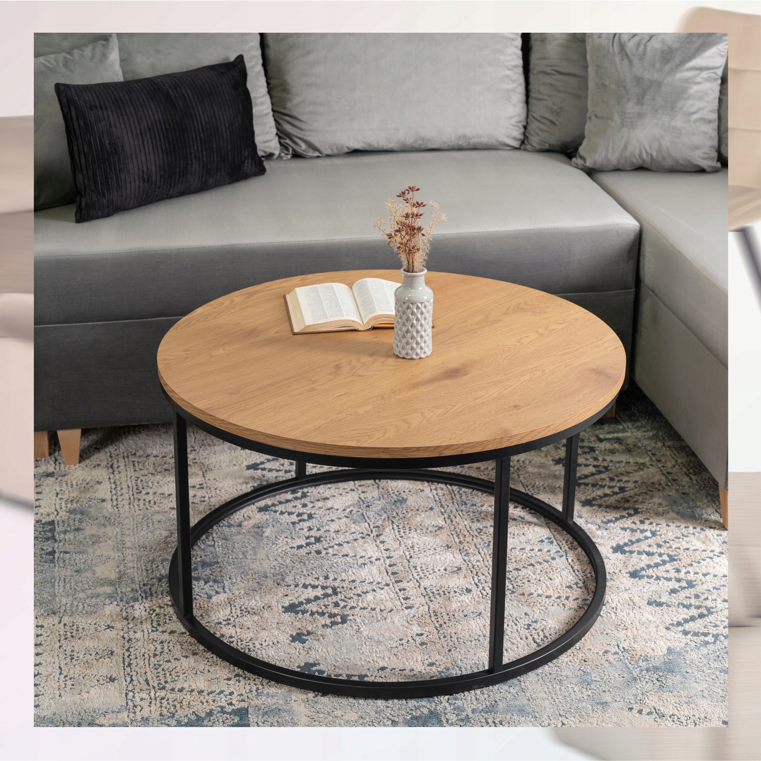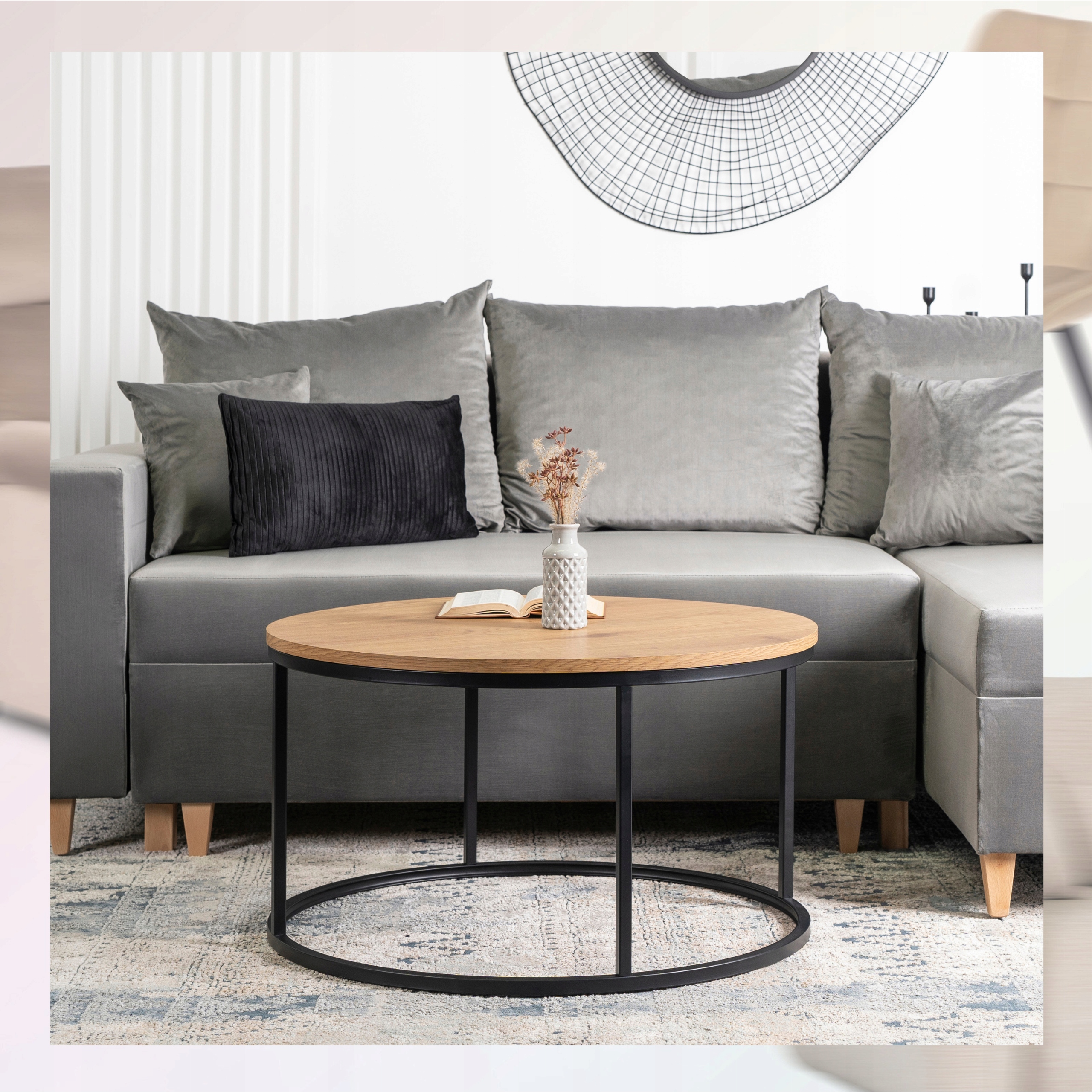 Stolik Kawowy Okrągły Loft Duży LELLA MAX Ława Okrągła Dąb Złoty Czarny ⭐⭐⭐⭐⭐